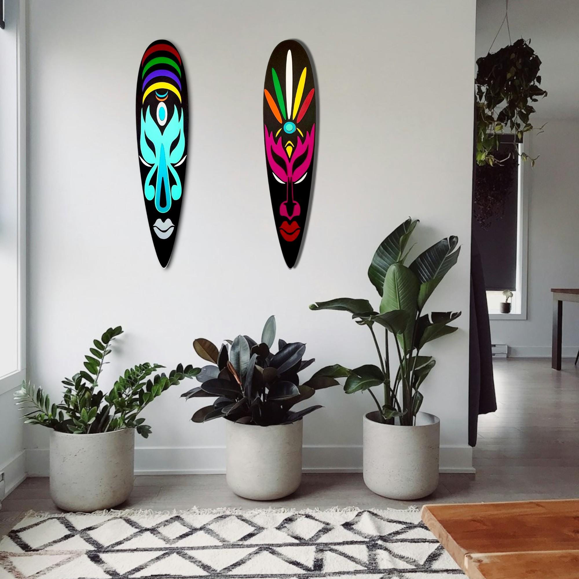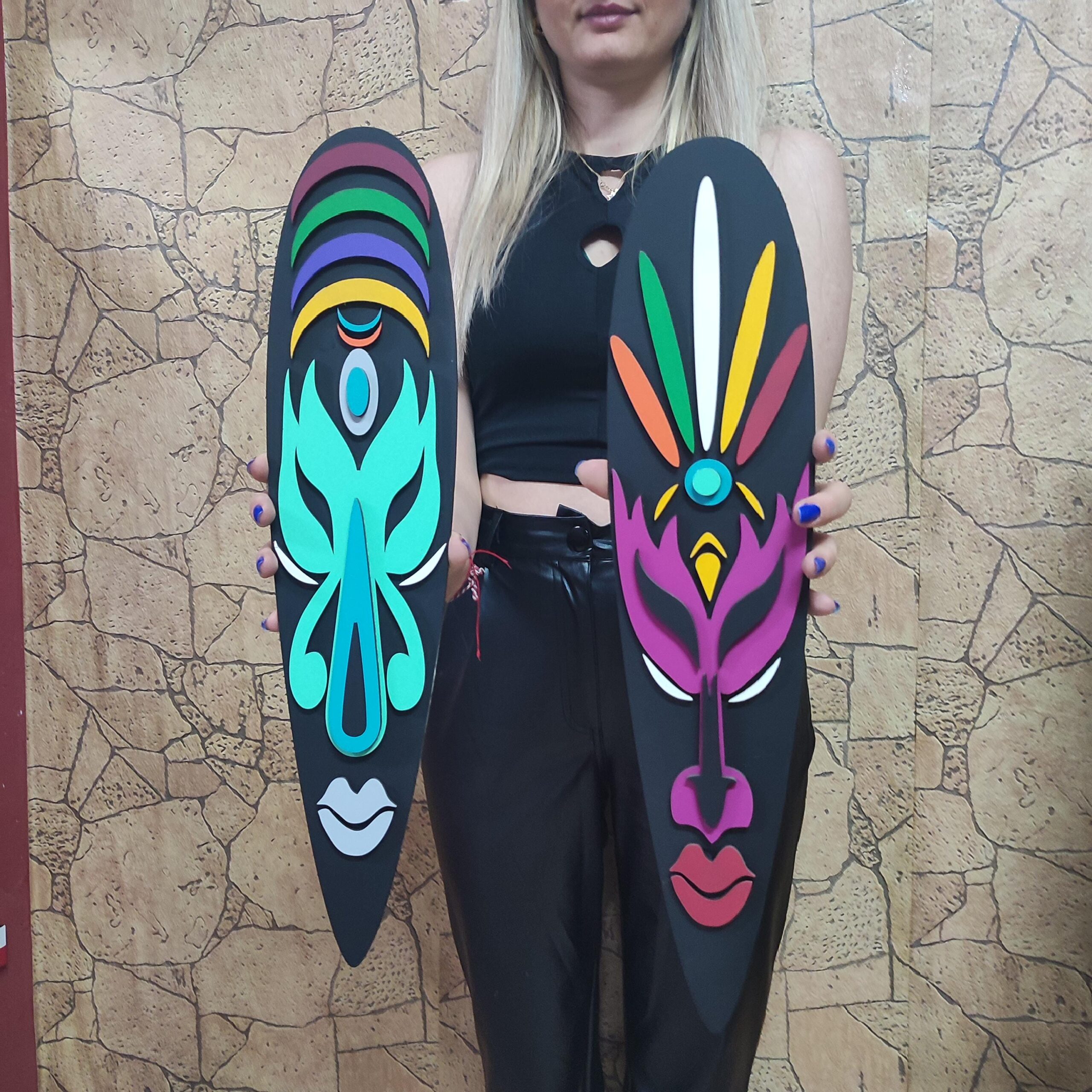 African Tribal Wall Mask Set, Acrylic Painted Decor, Handmade