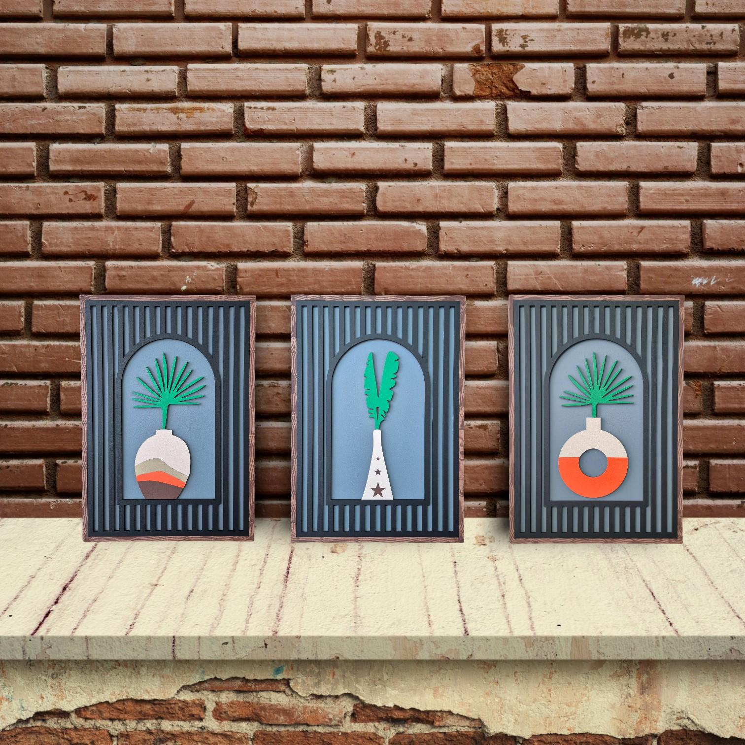 odern Boho Wall Art Set of 3 | Minimalist Plant Vase Decor | Handmade Wooden Wall Decor for Stylish and Natural Home Interiors