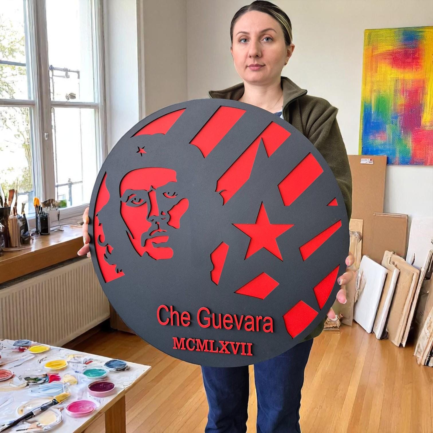 Che Guevara Wood Wall Art: Hand-Painted Revolutionary Icon Decor