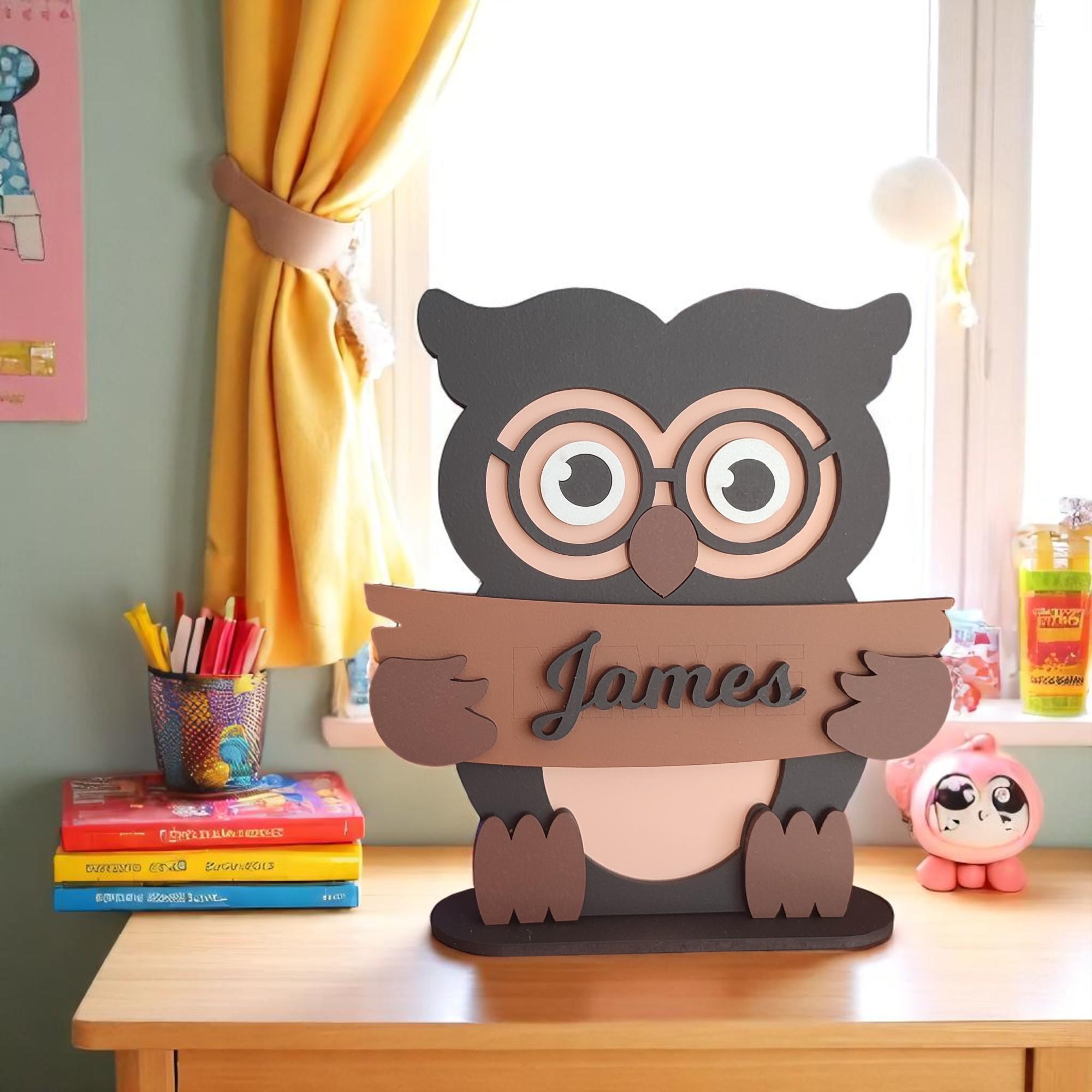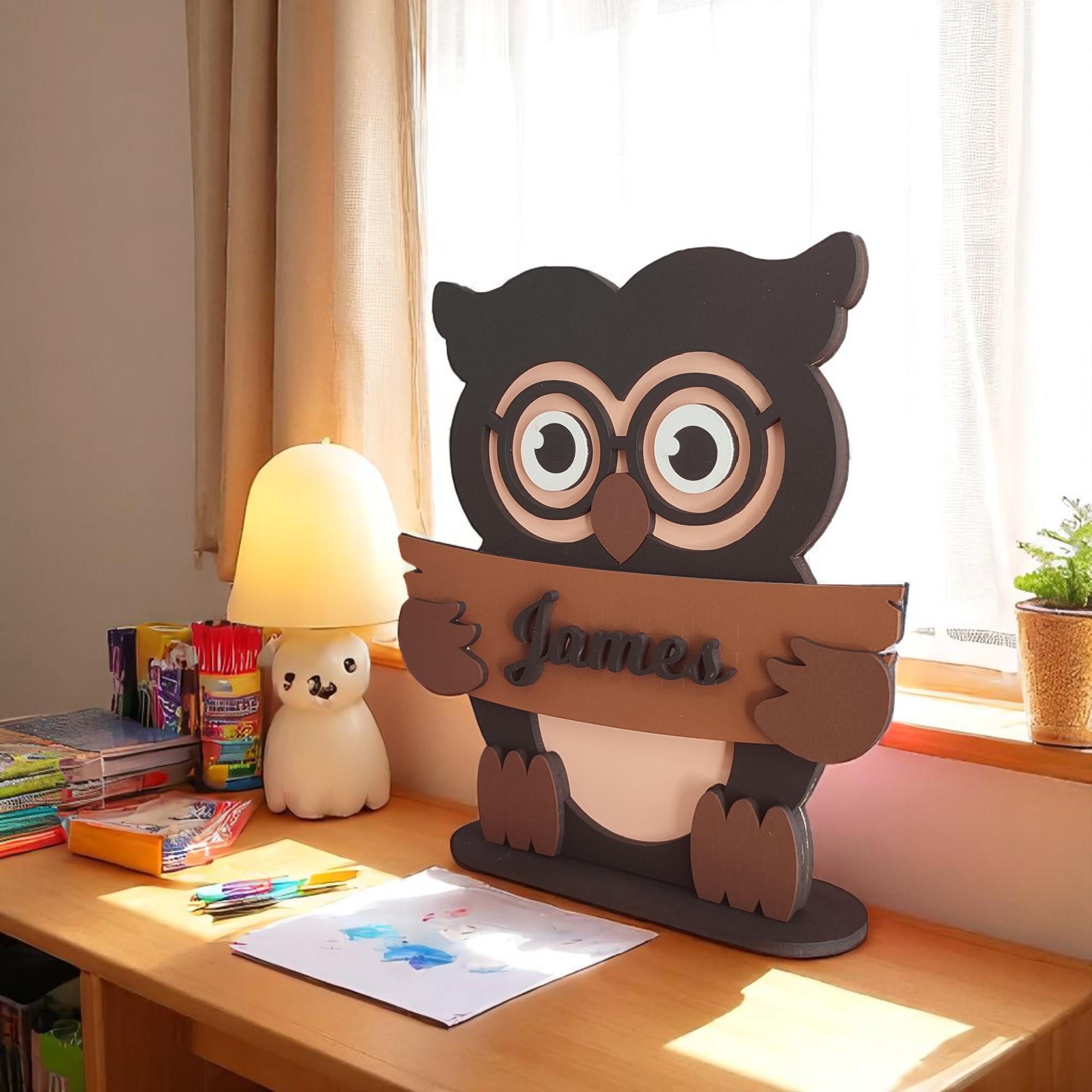 Personalized Owl Desk Decor: Hand-Painted MDF Nursery Art
