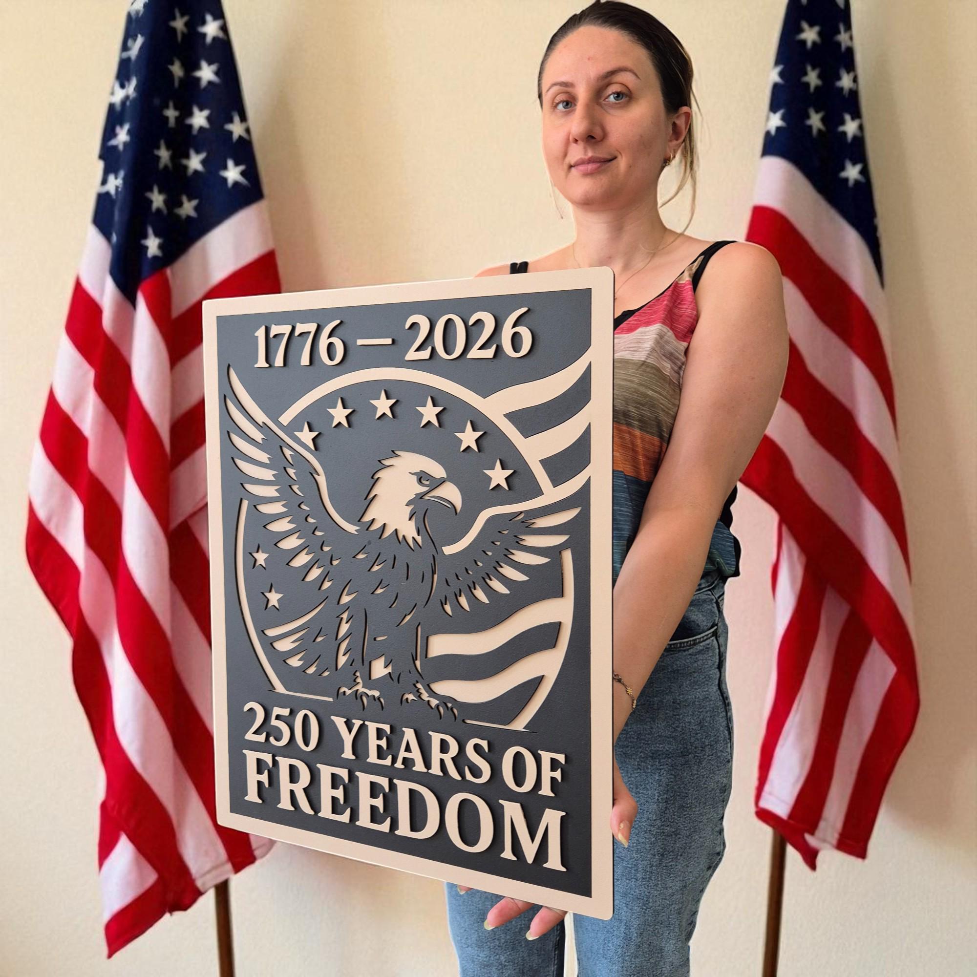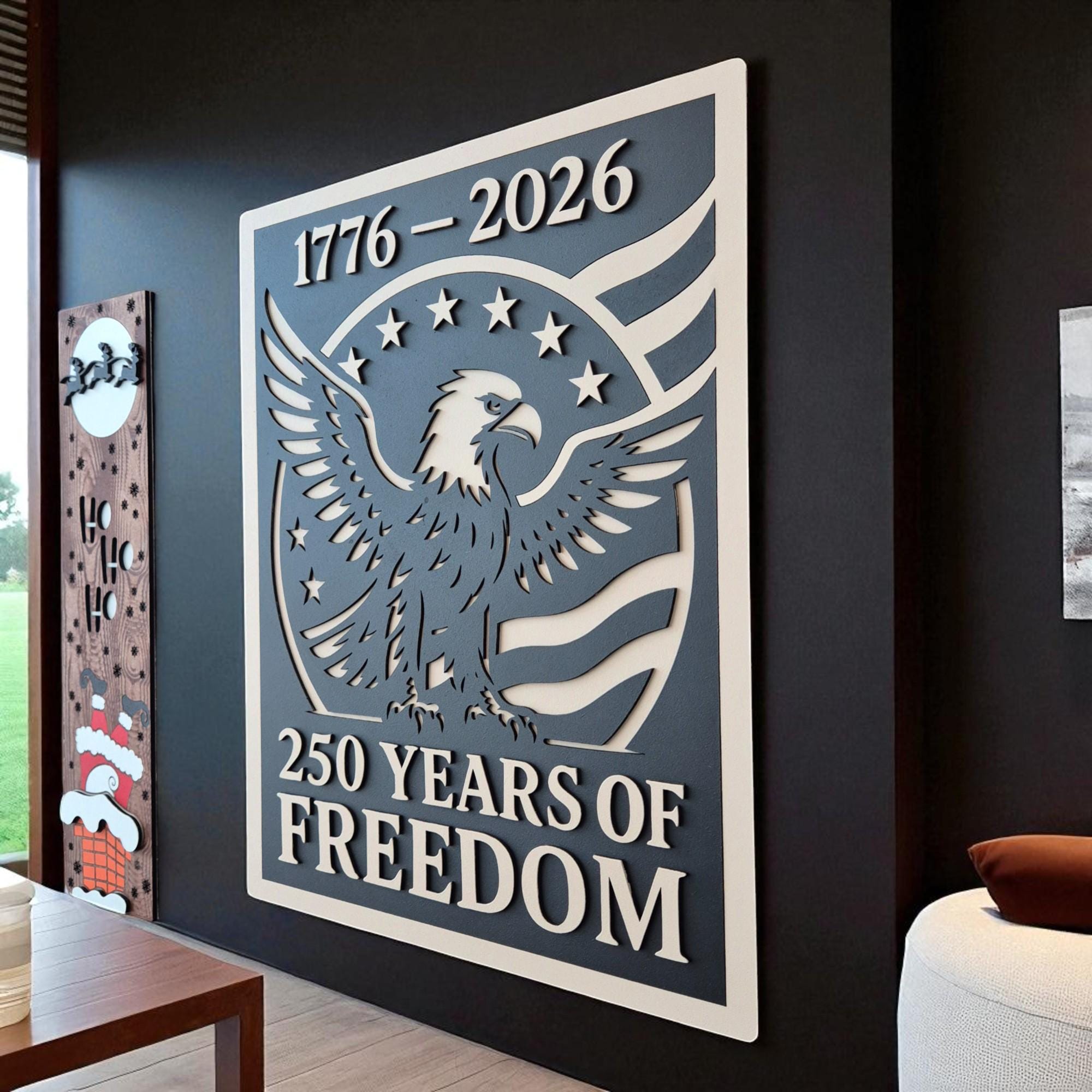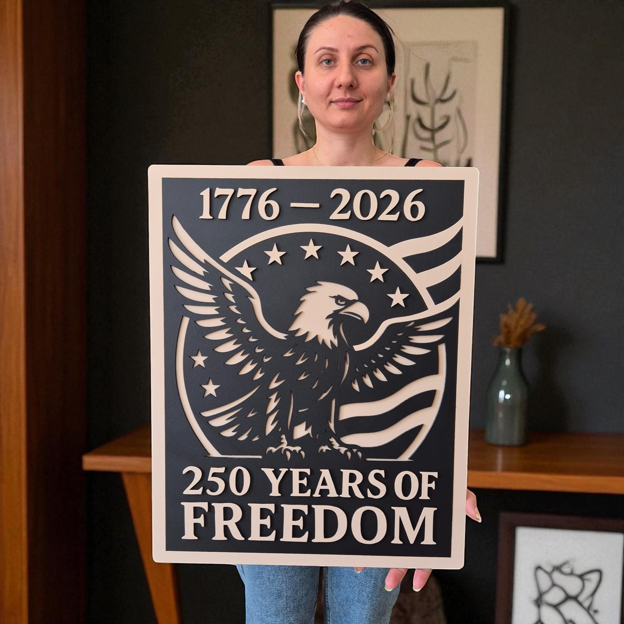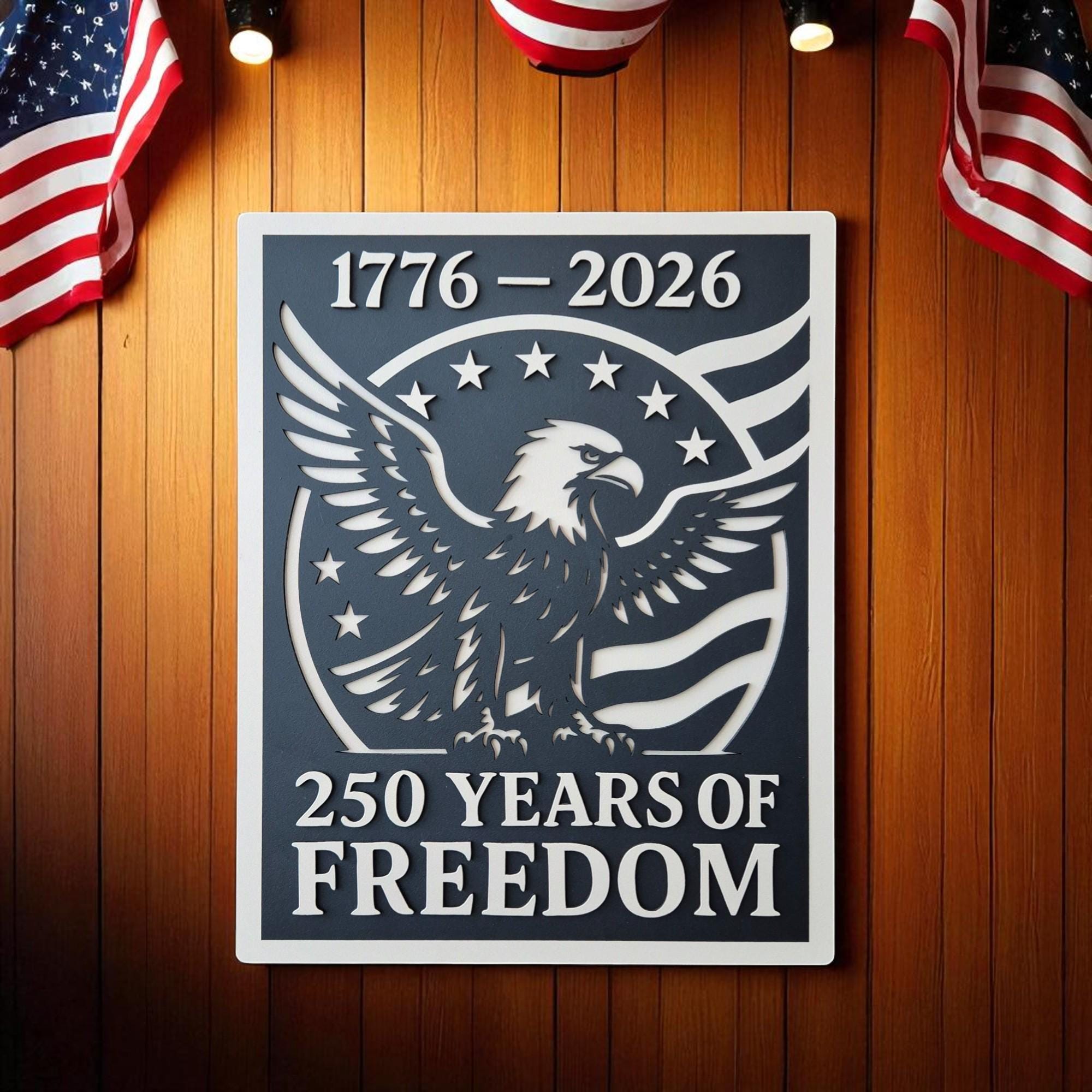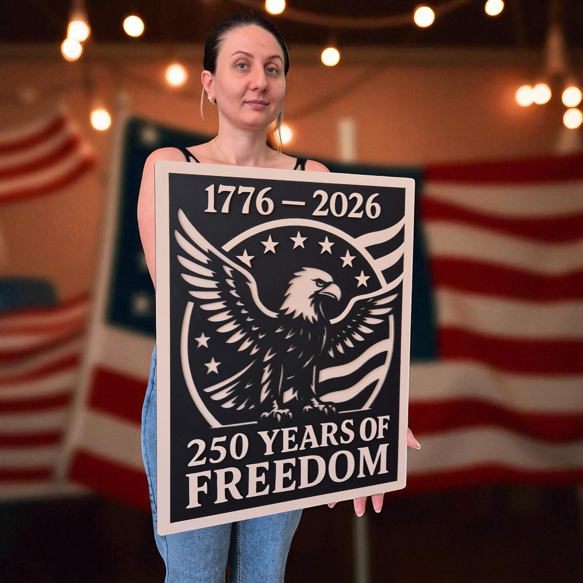 Celebrate 250 years of American independence with this stunning handcrafted wooden wall art. Featuring the iconic stars and stripes, this 3D layered design commemorates the journey from 1776 to 2026 in a bold and timeless style. A perfect piece for veterans, patriots, or anyone who holds American freedom close to heart.