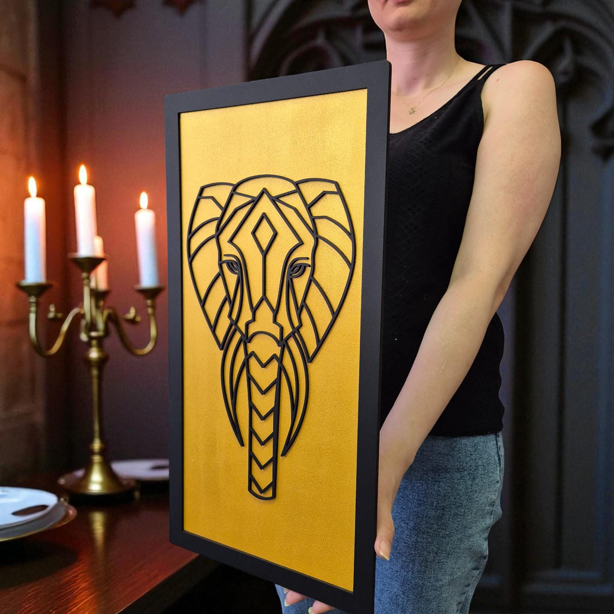 This geometric elephant brings elegance and a touch of the wild — handcrafted just for your space.