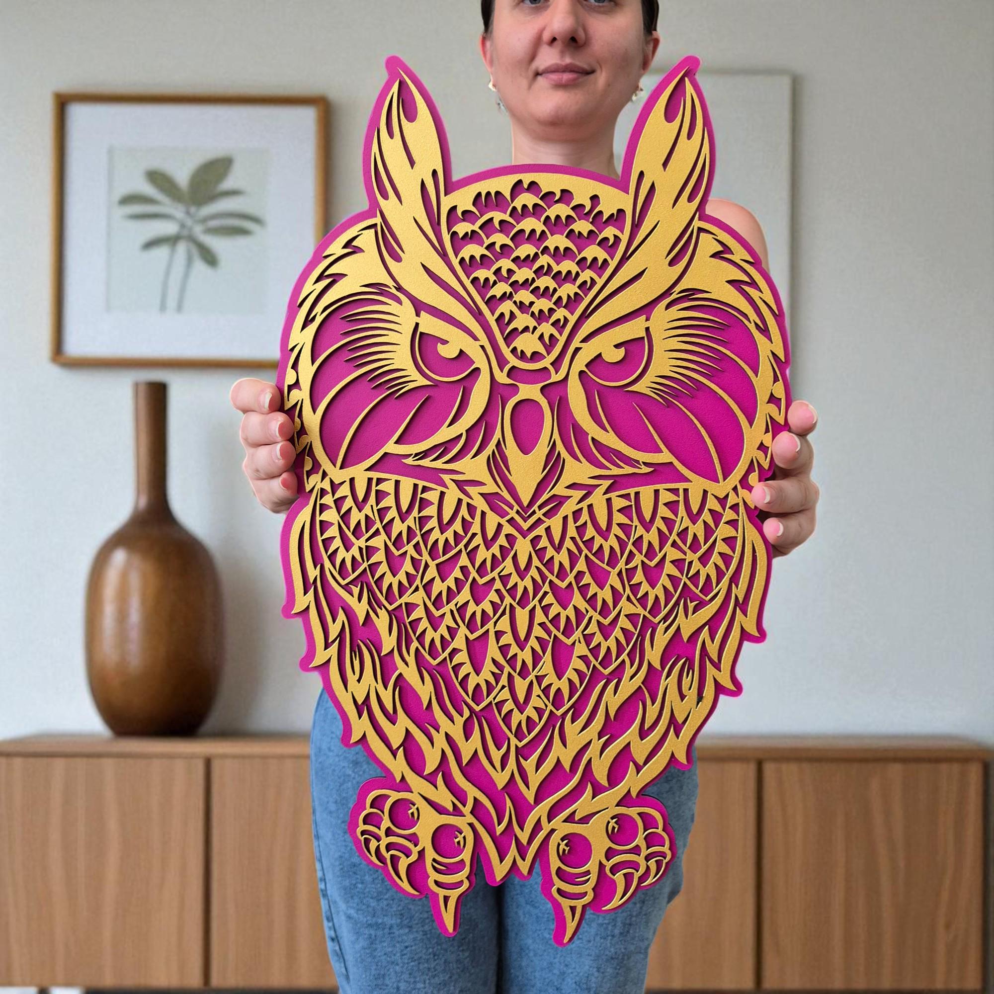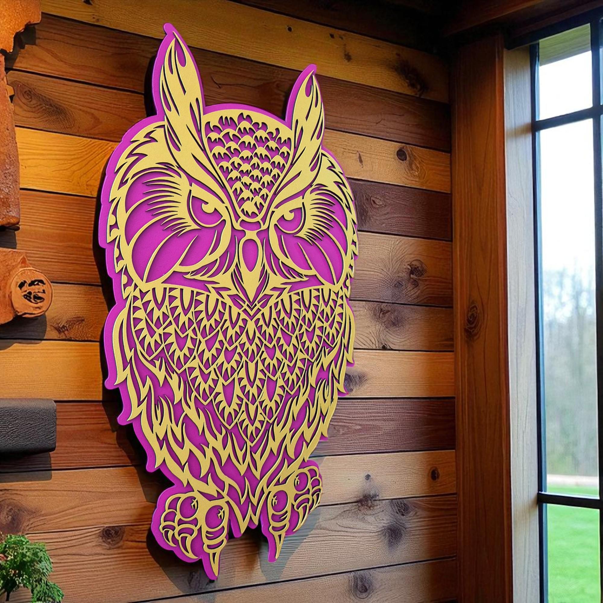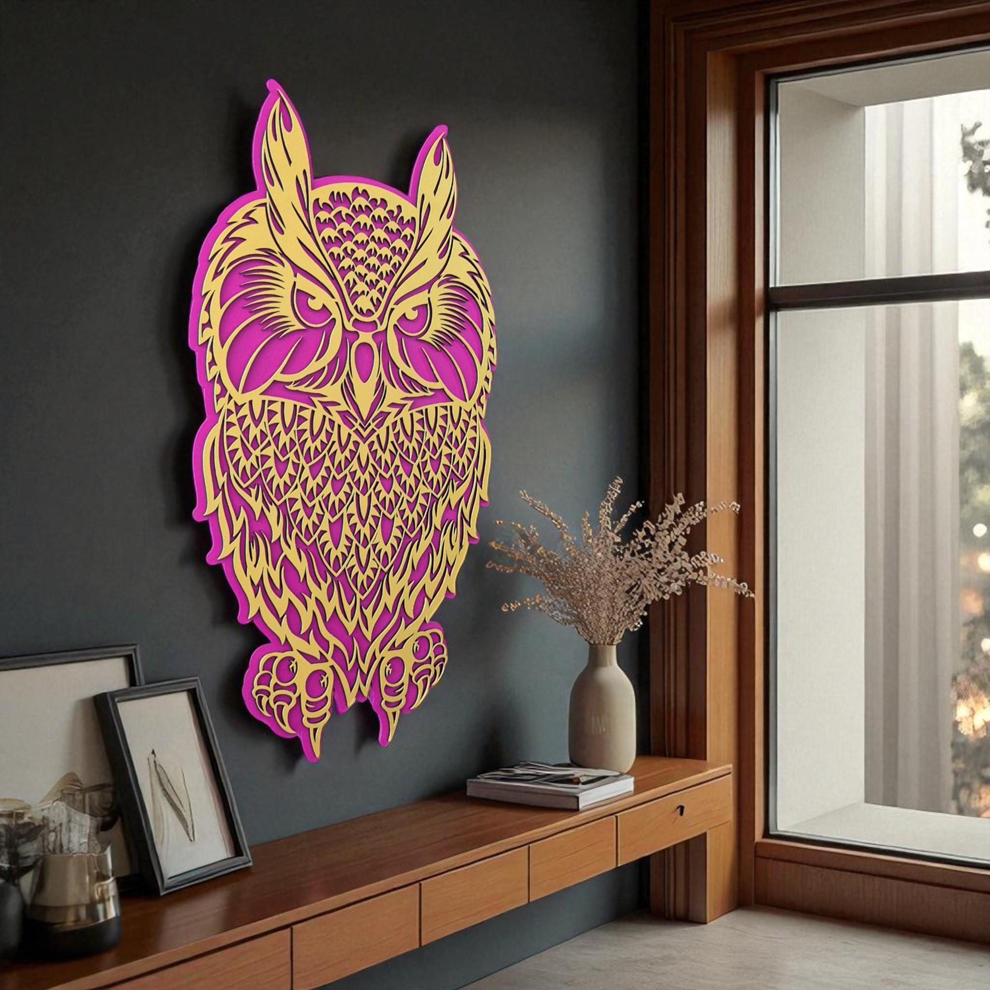 Bring a touch of woodland magic into your home with this handcrafted 3D layered owl wall art. Designed with two intricate layers, this mystical owl adds depth and charm to any space. Whether you're an owl lover or a nature enthusiast, this piece offers a perfect blend of bohemian spirit and modern craftsmanship.
