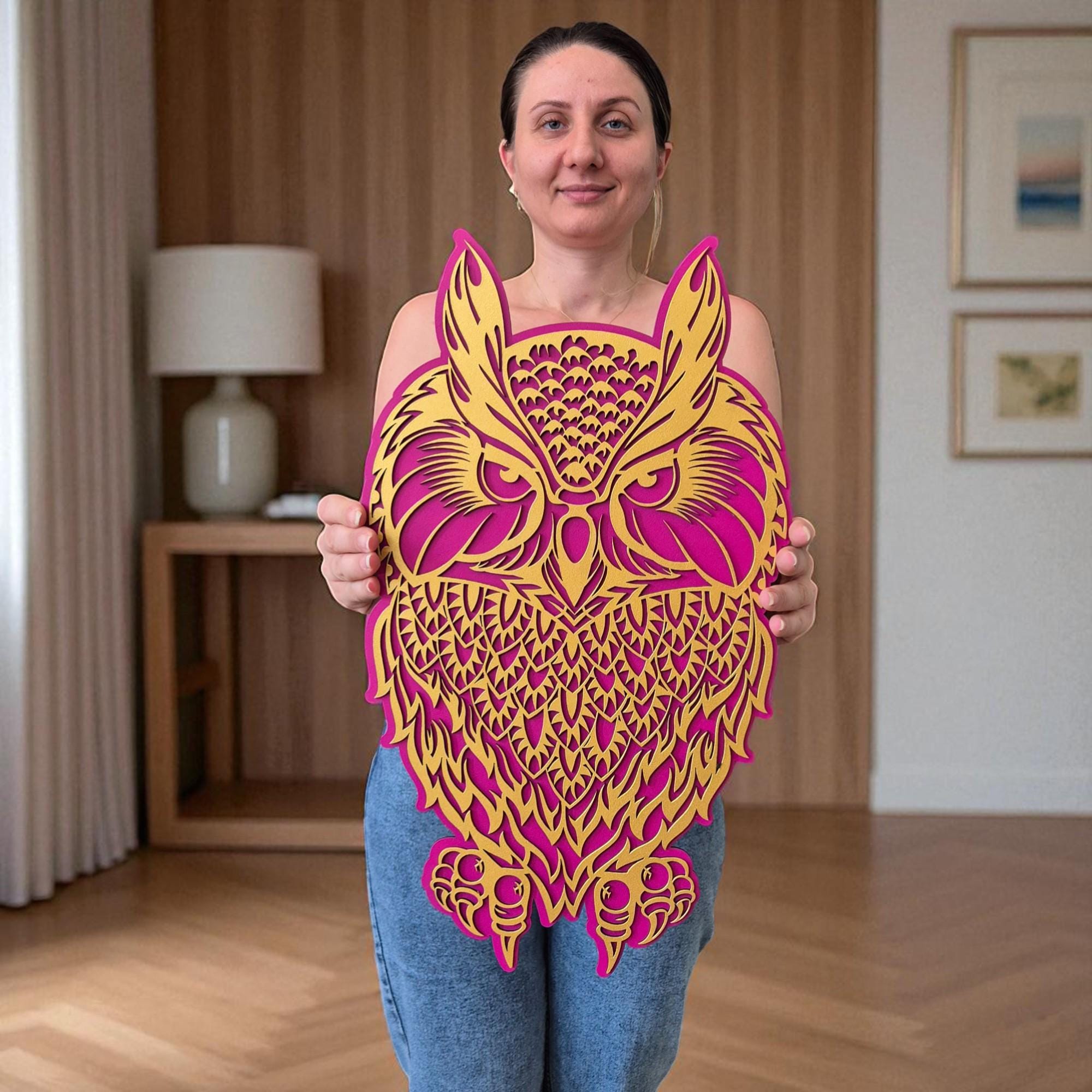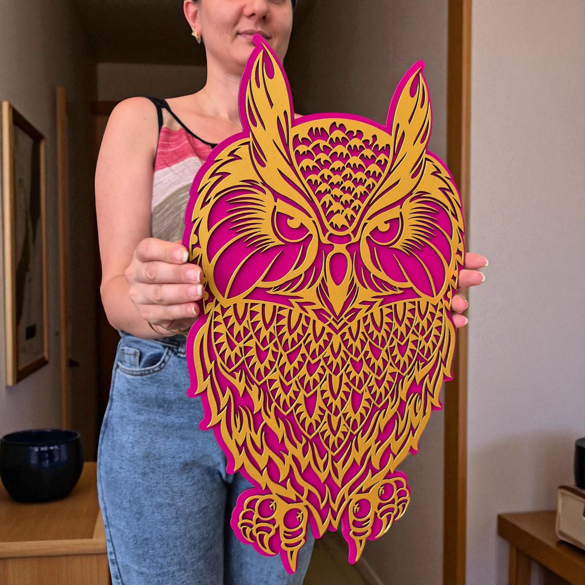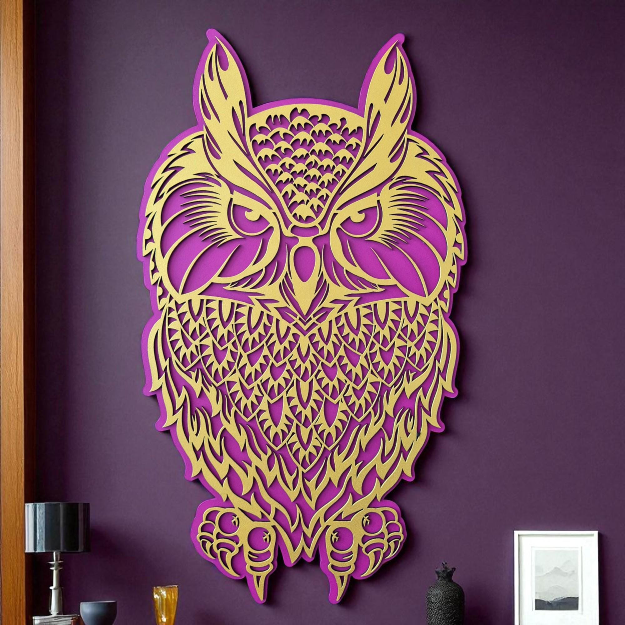 Bring a touch of woodland magic into your home with this handcrafted 3D layered owl wall art. Designed with two intricate layers, this mystical owl adds depth and charm to any space. Whether you're an owl lover or a nature enthusiast, this piece offers a perfect blend of bohemian spirit and modern craftsmanship.