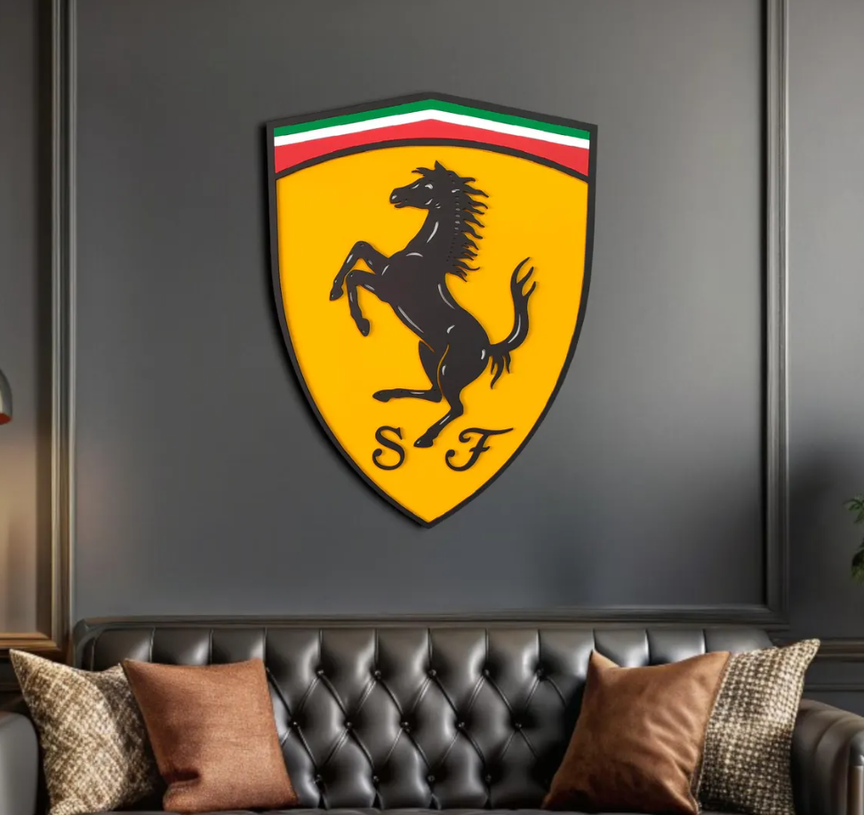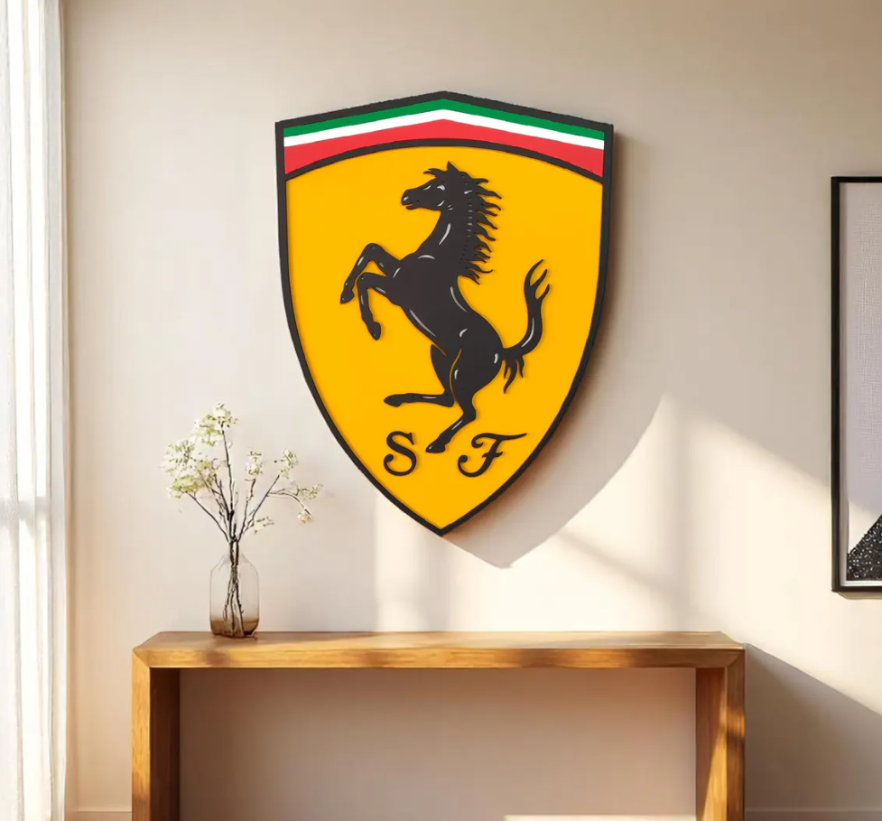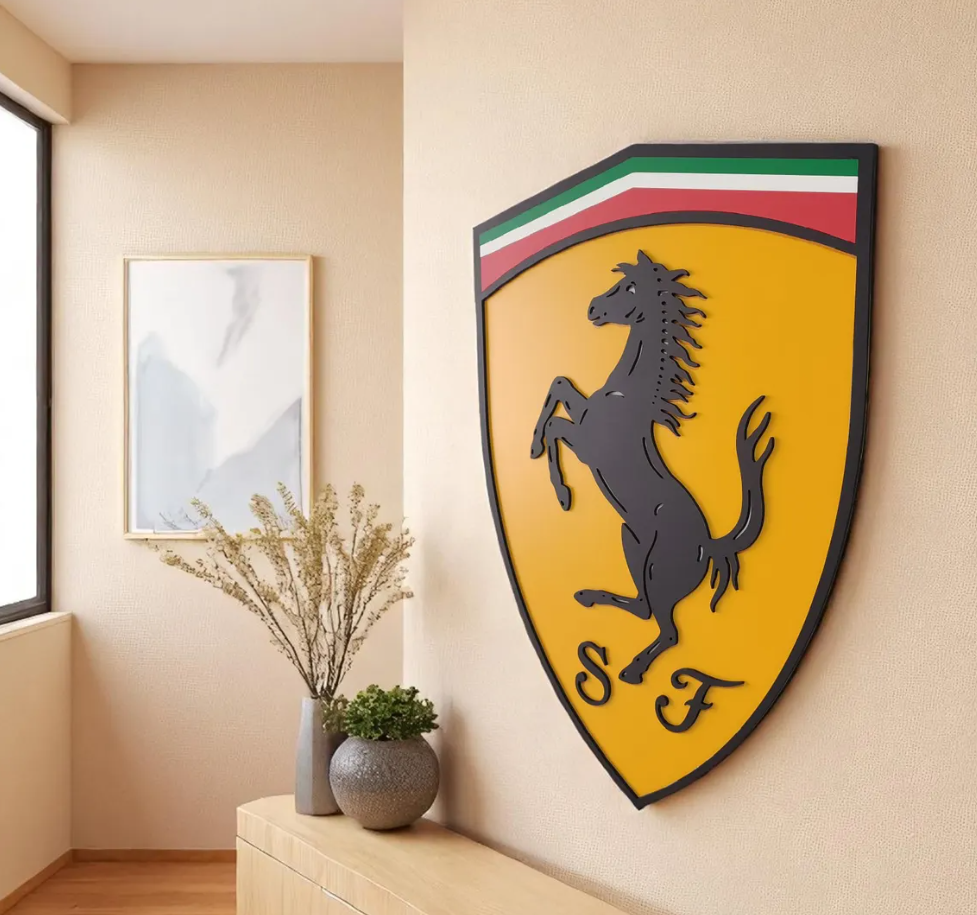 Bring the prestige and passion of Maranello into your home with this Ferrari Wooden Wall Art. Featuring the legendary Prancing Horse (Cavallino Rampante) logo in a stunning 3D design, this handcrafted piece is a tribute to speed, elegance, and automotive history. It makes the ultimate statement for any garage, luxury office, or modern living space.