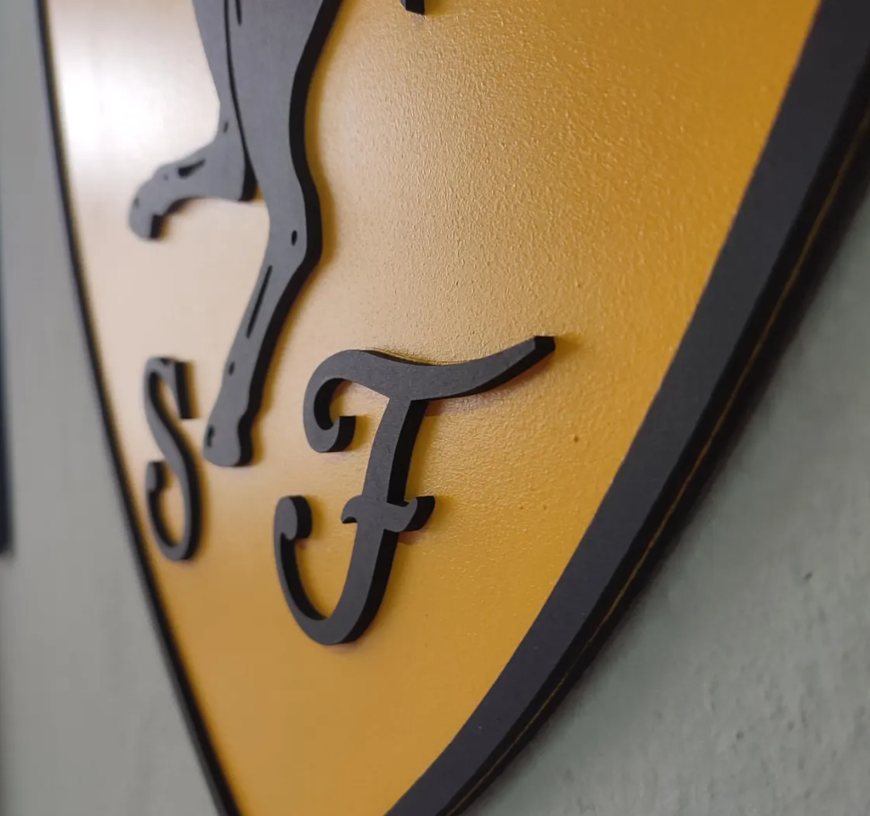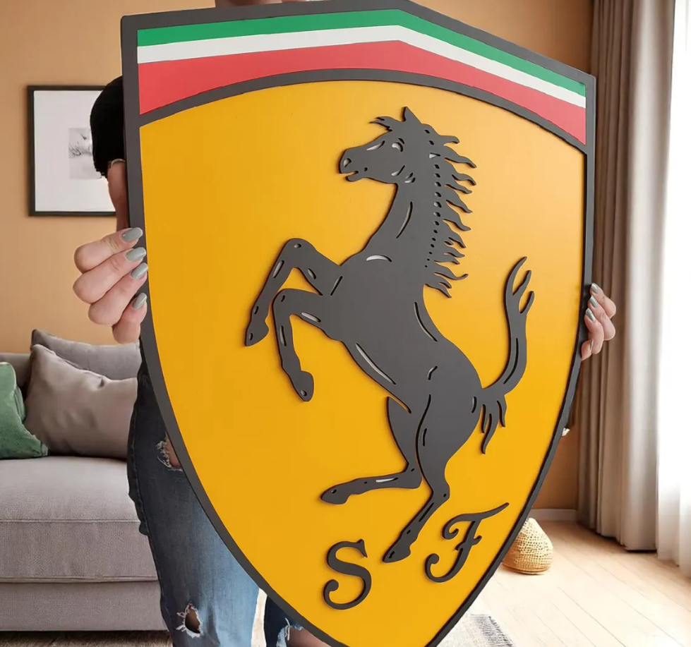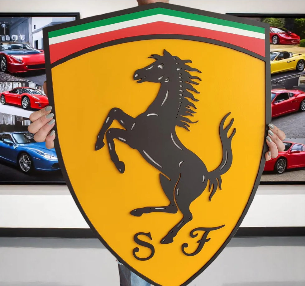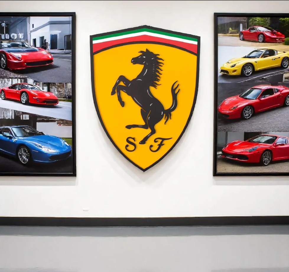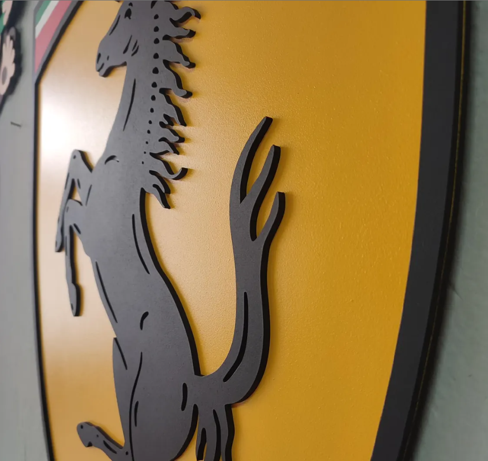 This isn't just a sign; it's a high-quality work of art that uses depth and shadow to bring the iconic Ferrari logo to life. Completed with precise cutting and hand craftsmanship, this piece captures the spirit of Scuderia for those who appreciate the fine details of Italian racing.