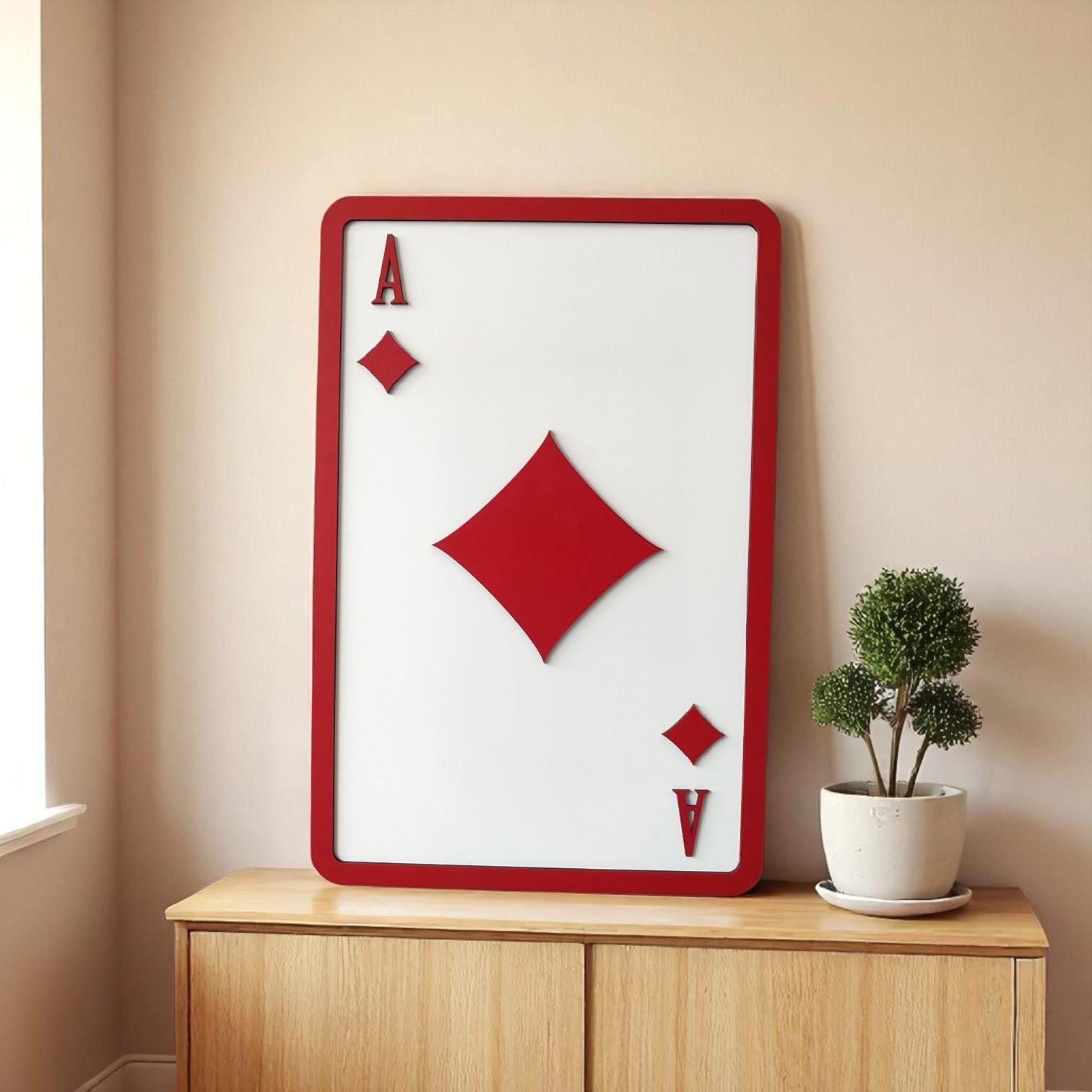Whether you're a card shark or just love striking graphic art, this Ace of Diamonds piece is a bold bet for standout decor.