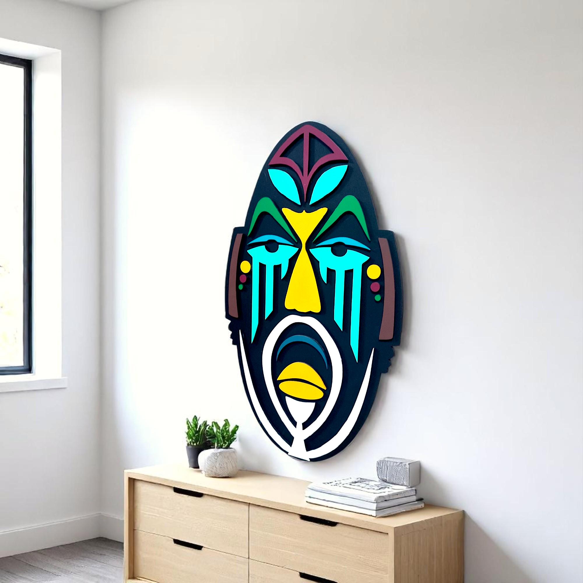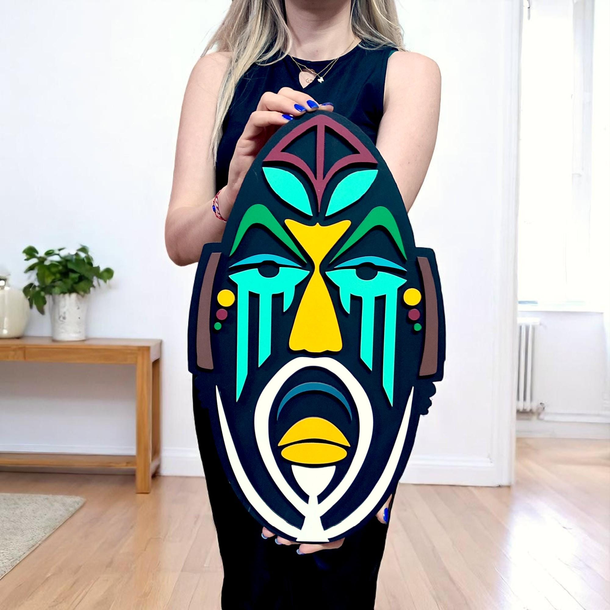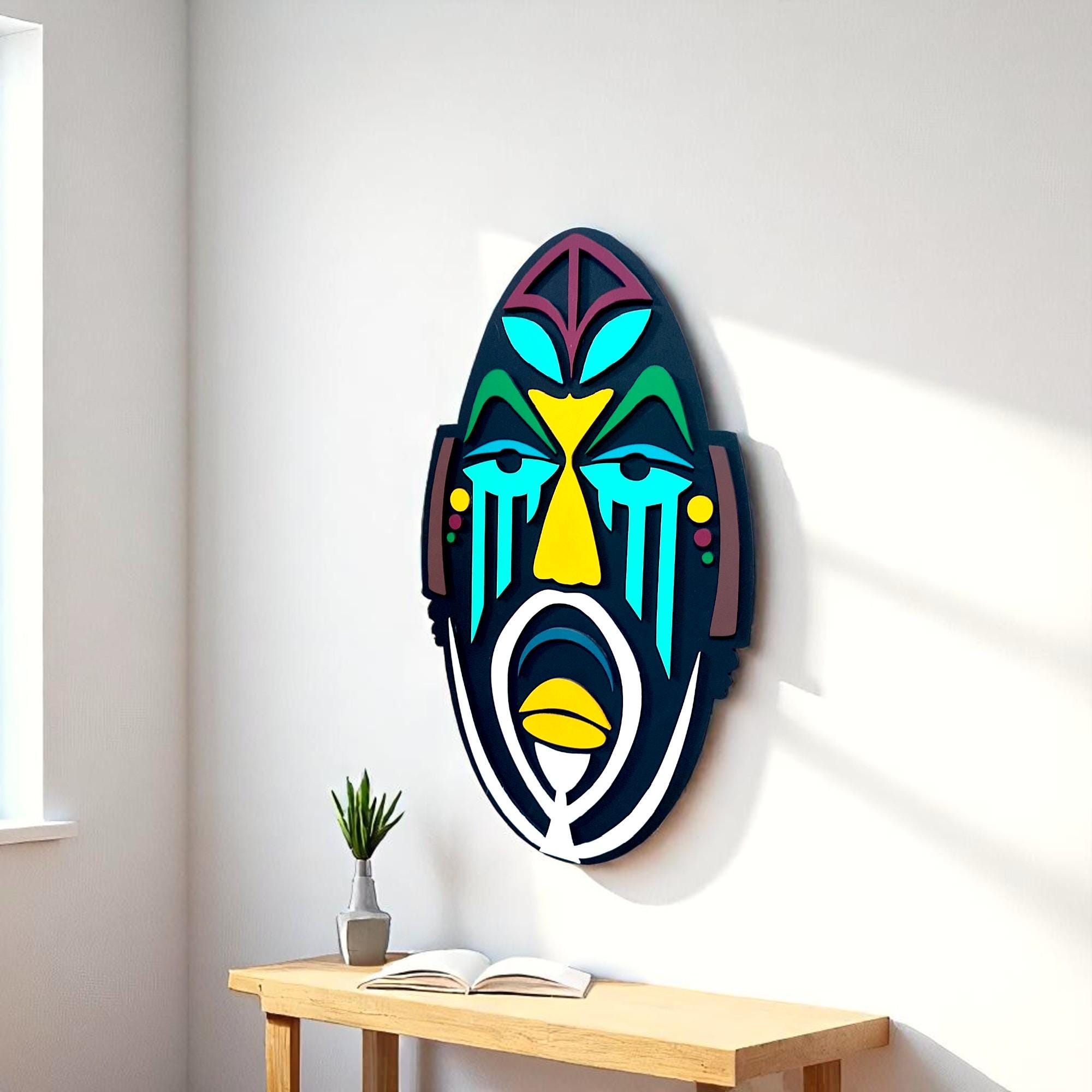 African Mask Wood Wall Art, Modern Sculpture, Home Decor
