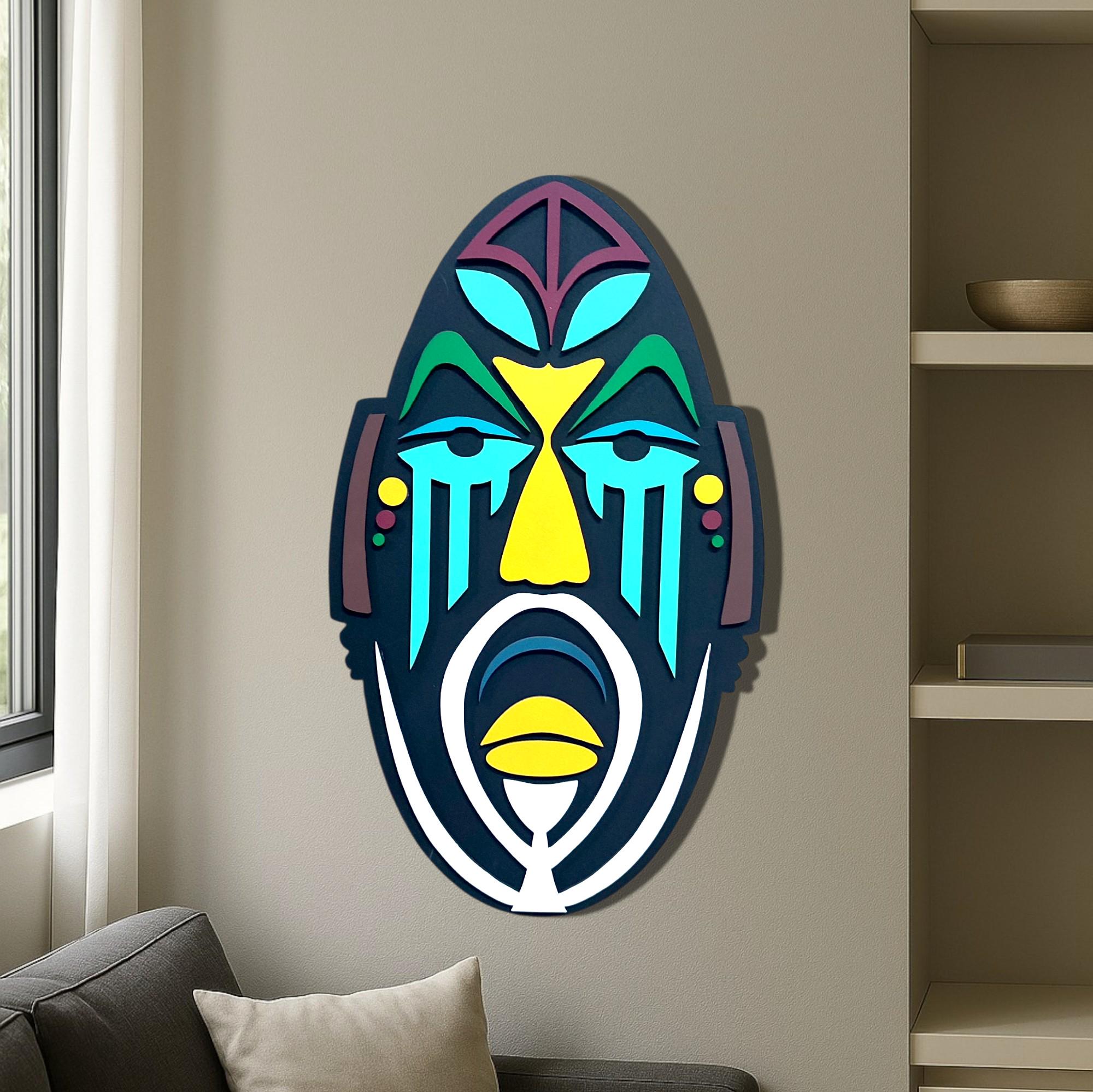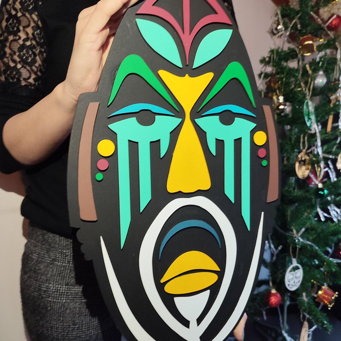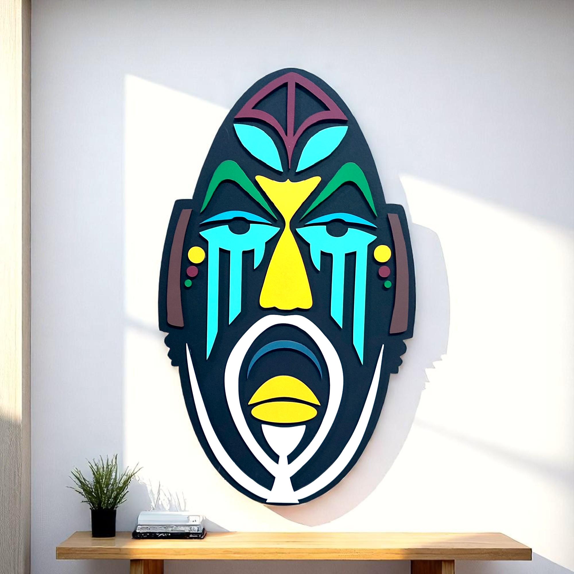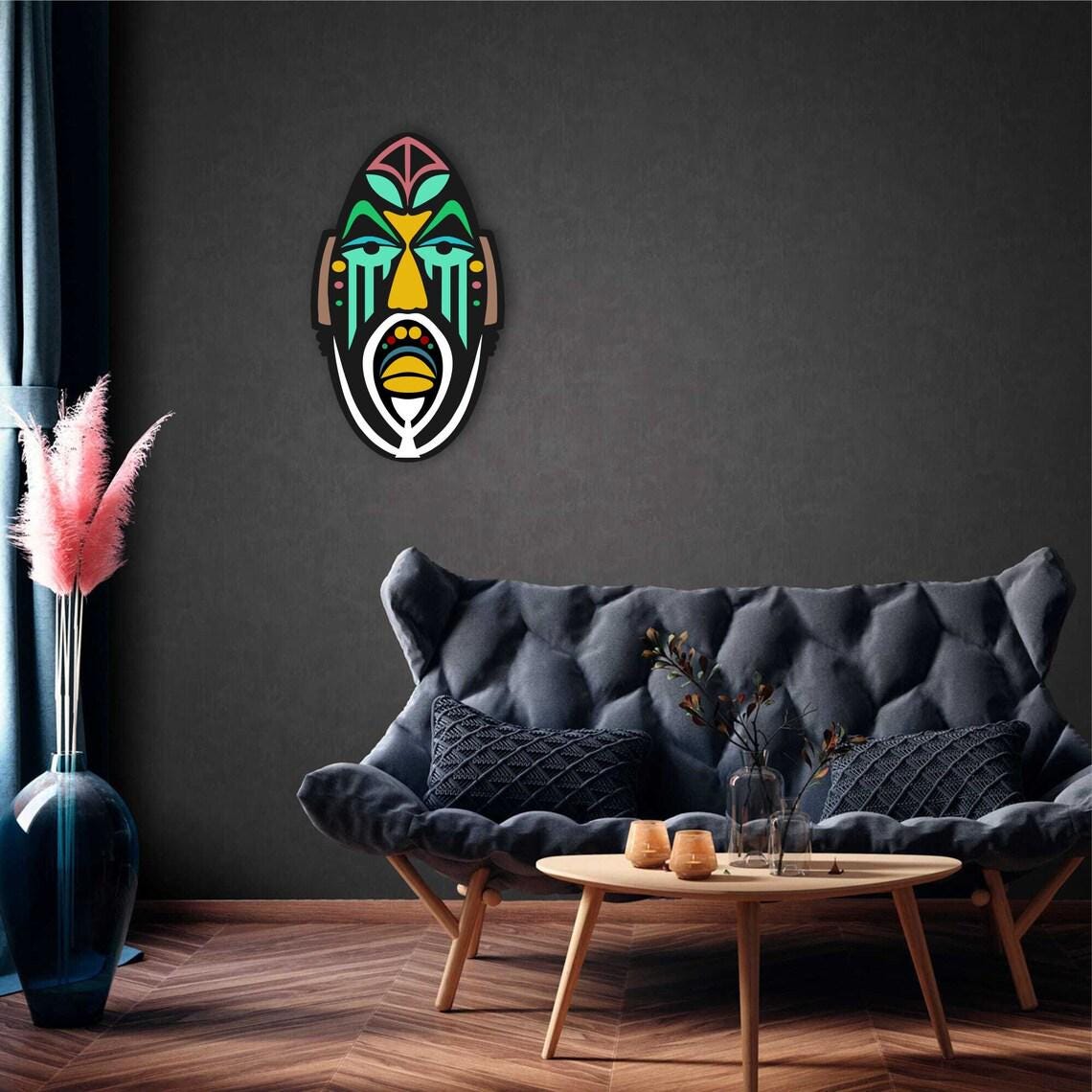 African Mask Wood Wall Art, Modern Sculpture, Home Decor