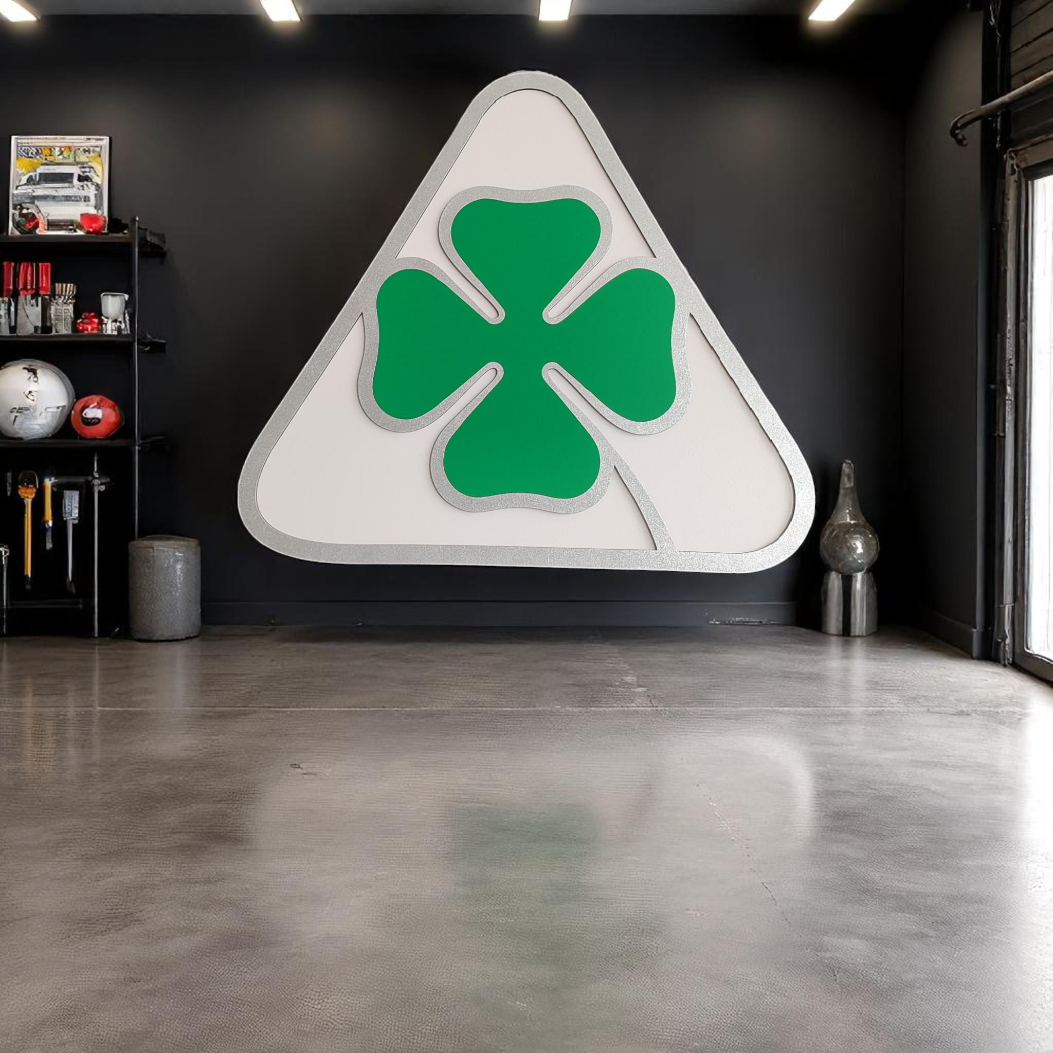 Alfa Romeo Quadrifoglio Wood Wall Art: Cloverleaf Garage Decor