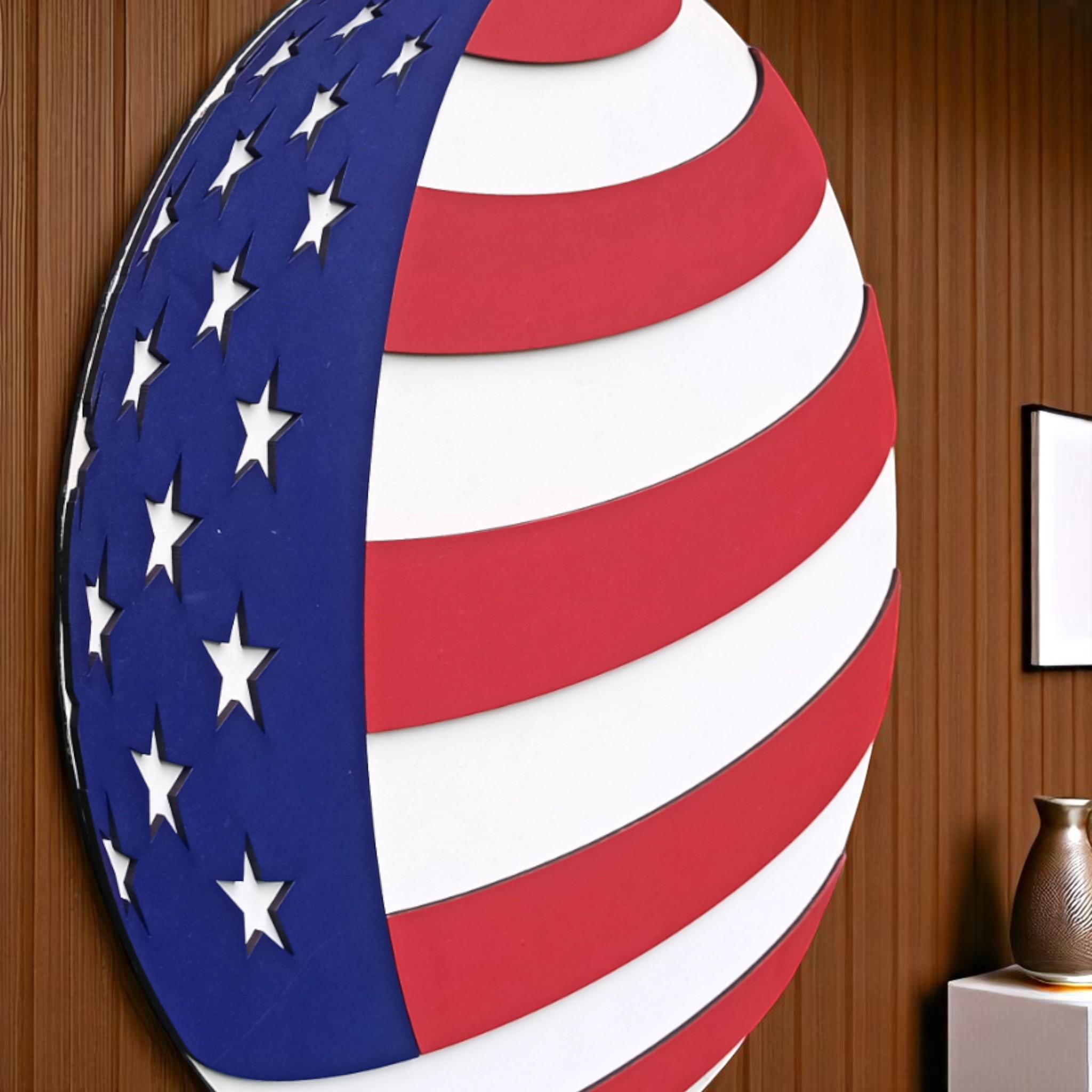 American Flag Earth Wooden Wall Art: Handcrafted Patriotic Decor
