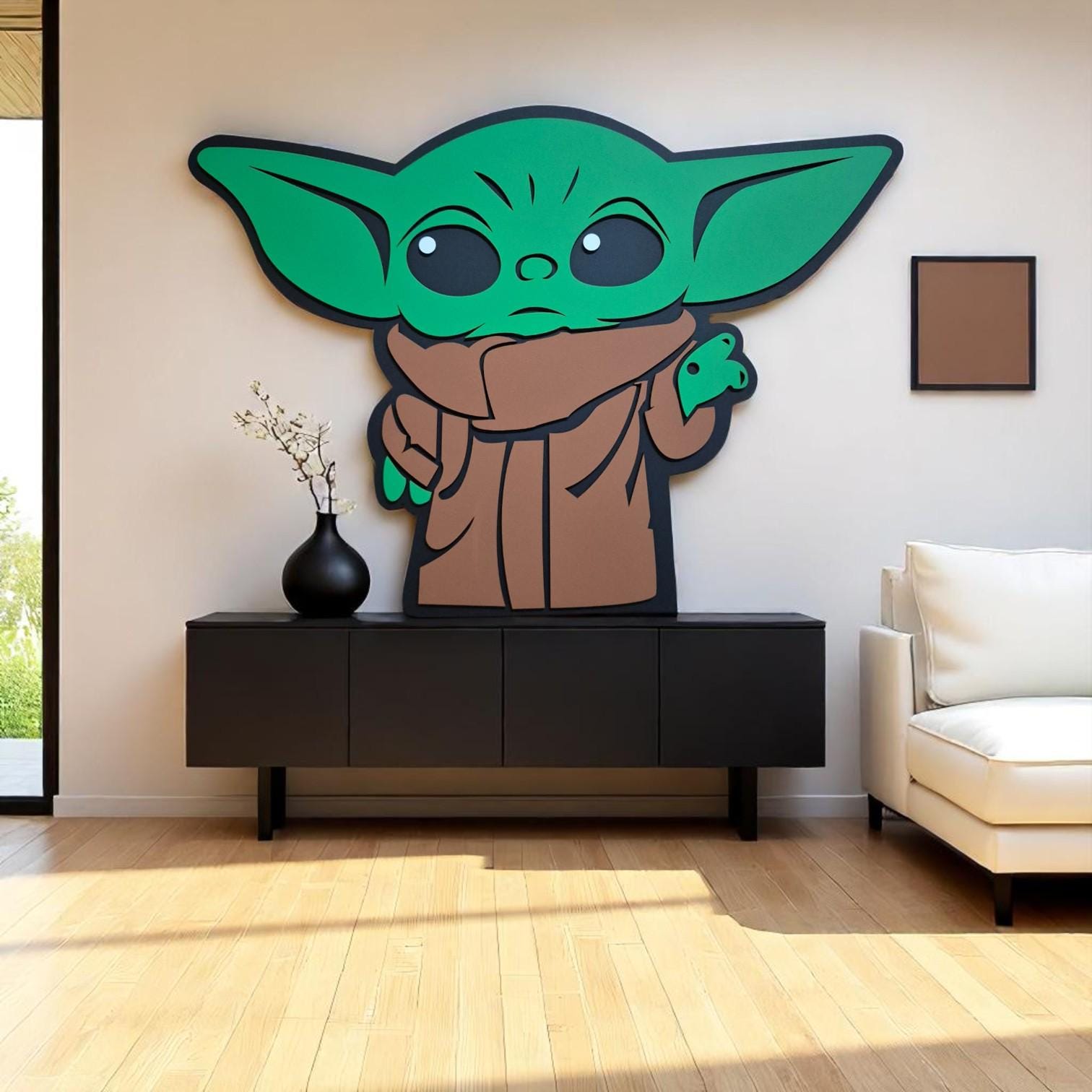 Bring the Force into your space with this adorable Baby Yoda Wooden Wall Art, inspired by Grogu from The Mandalorian. Whether you're decorating a Star Wars-themed nursery, game room, or geeky home office, this handcrafted piece adds a magical and heartwarming touch to any setting.