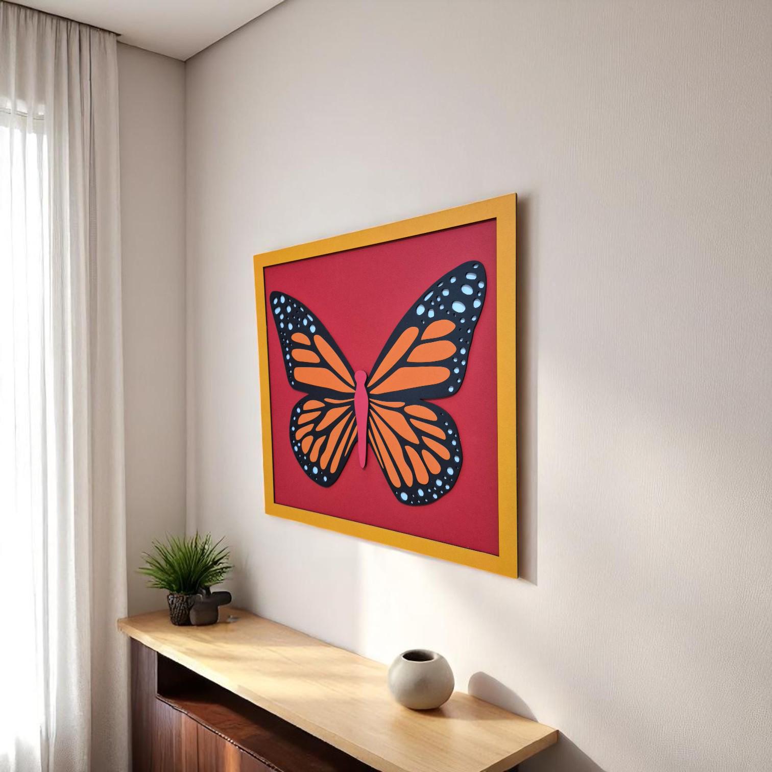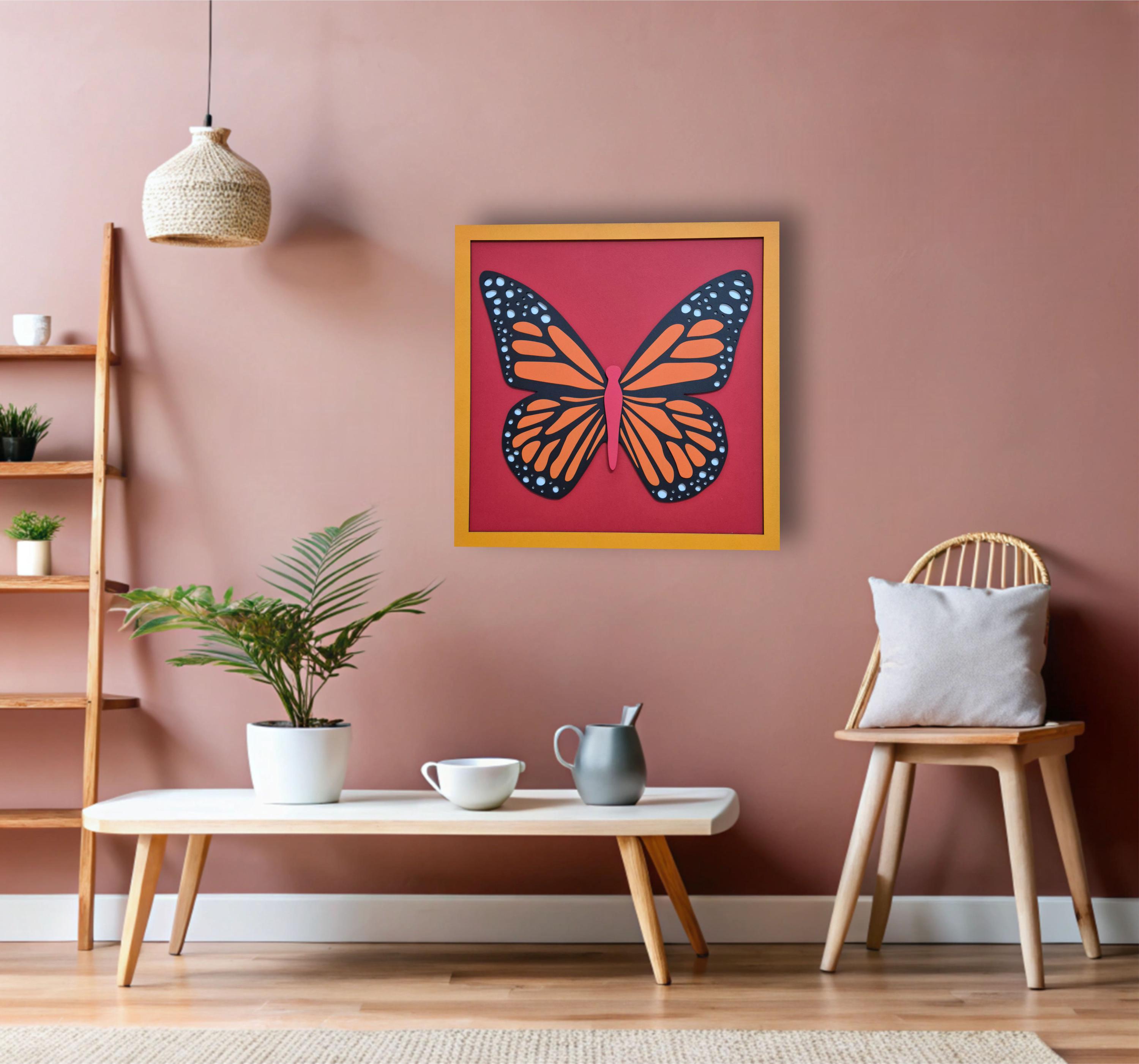 Boho Butterfly Wall Hanging | Monarch Butterfly Wooden Wall Art | Vibrant Nature-Inspired Decor | Gift for Nature and Insect Lovers