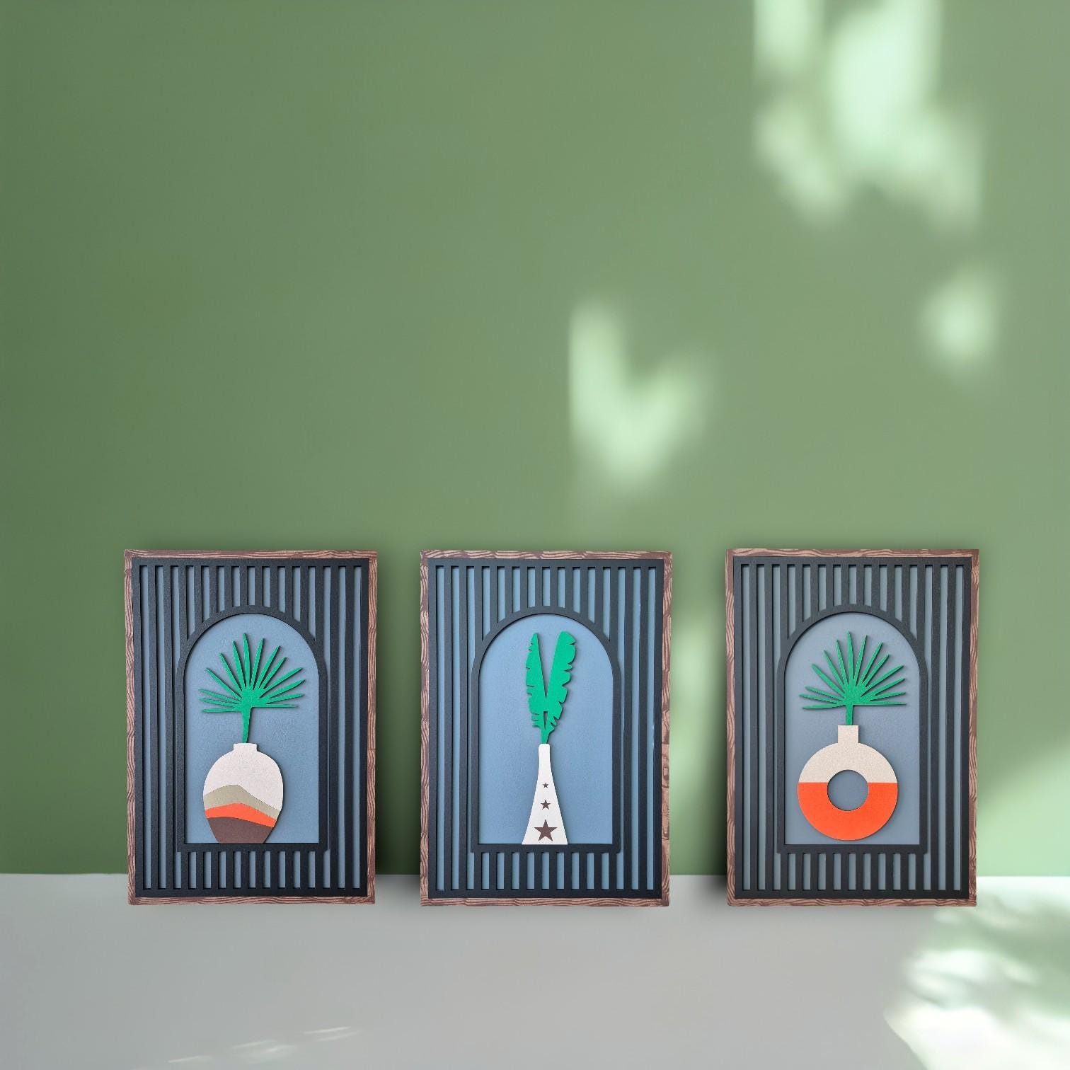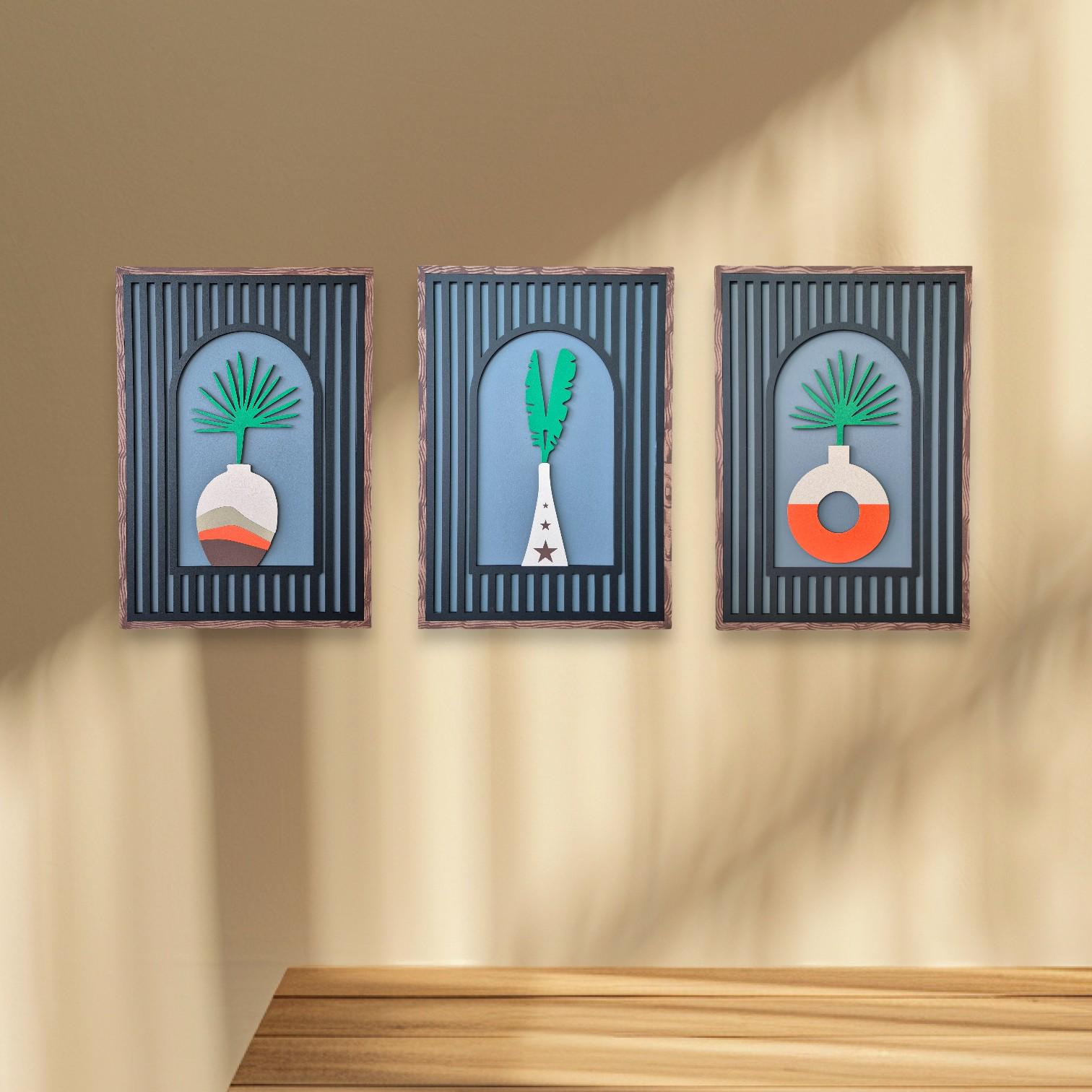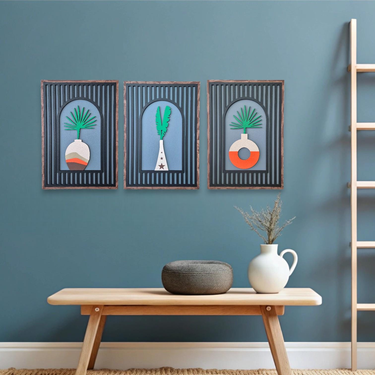 odern Boho Wall Art Set of 3 | Minimalist Plant Vase Decor | Handmade Wooden Wall Decor for Stylish and Natural Home Interiors Elevate your home with this Modern Boho Wall Art Set of 3, featuring min...