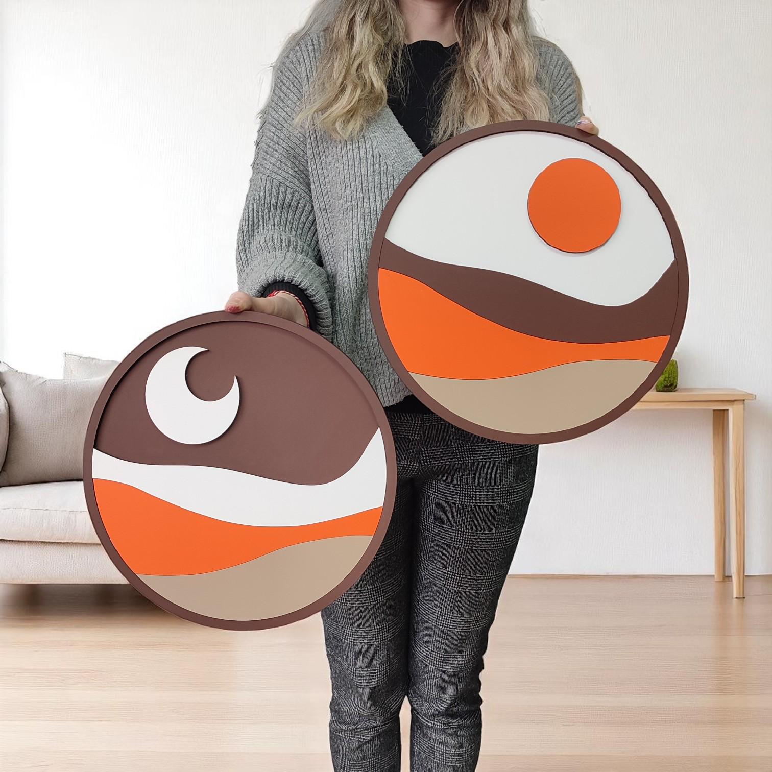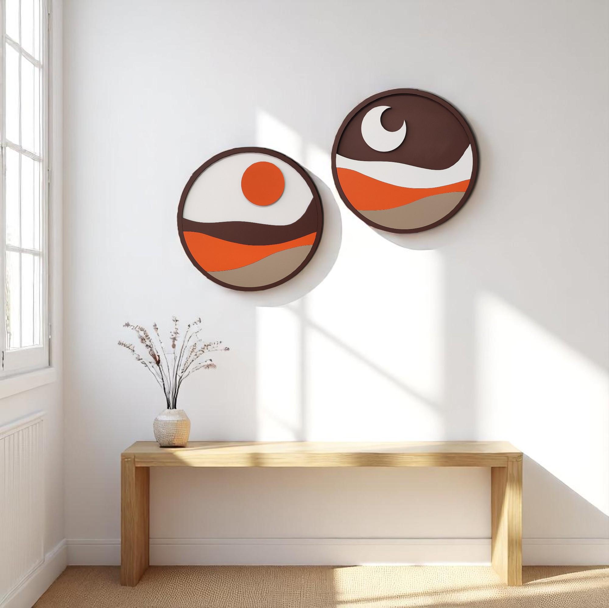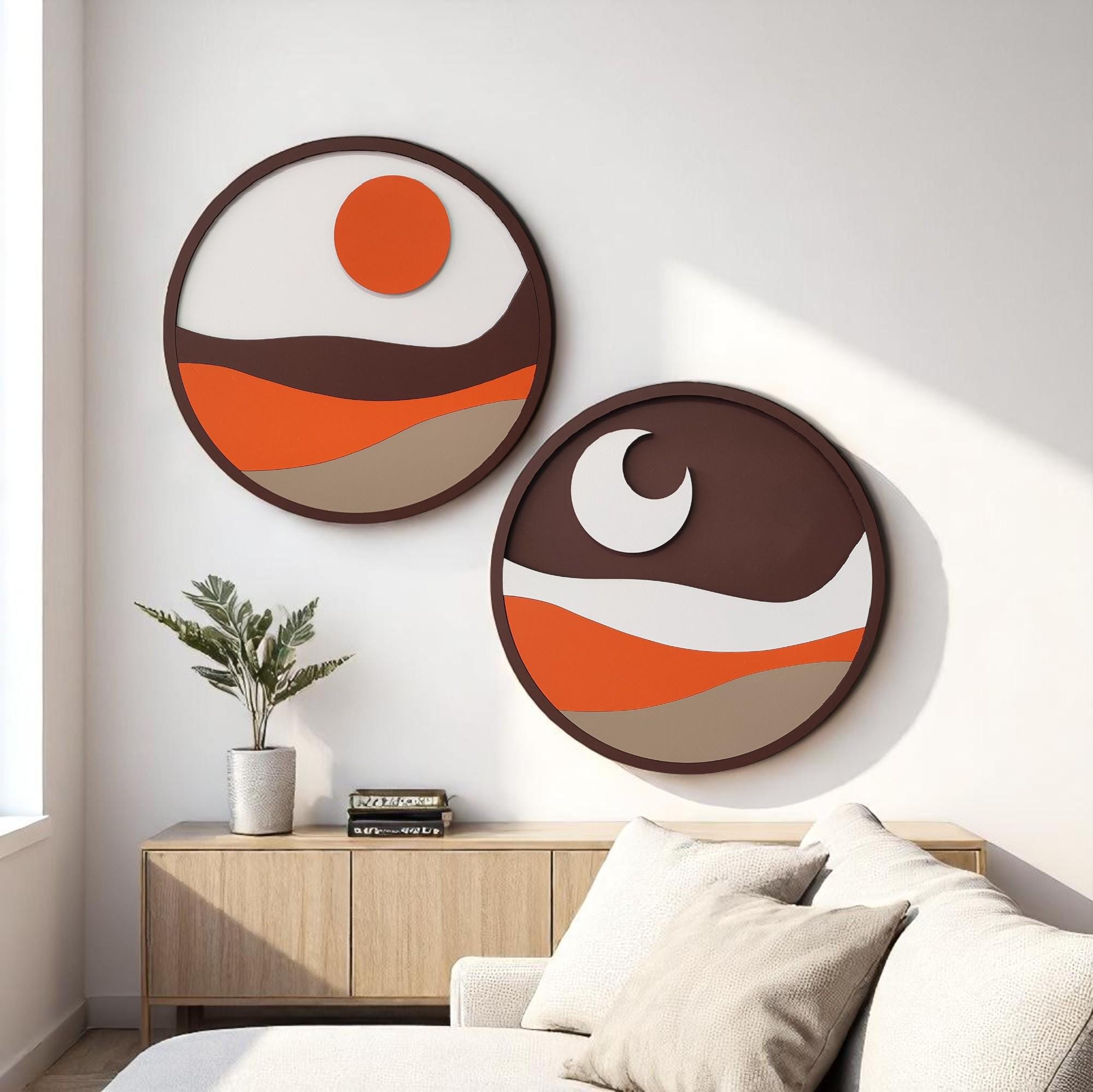 Sun and Moon Wooden Wall Art | Boho Celestial Wall Decor | Yin Yang Inspired Wall Hanging | Minimalist Cosmic Decor Set Bring cosmic harmony into your home with this handcrafted Sun and Moon Wooden W...