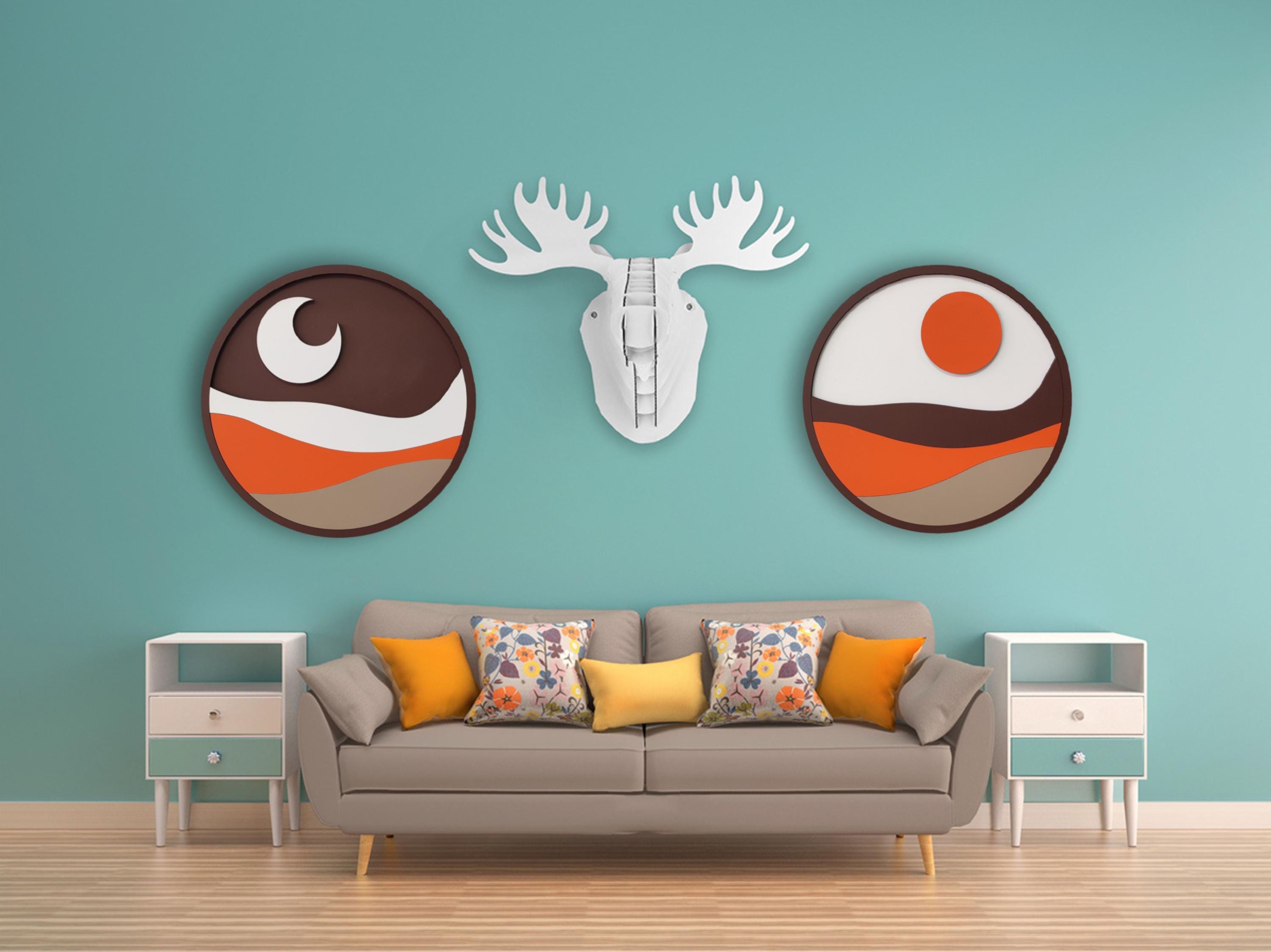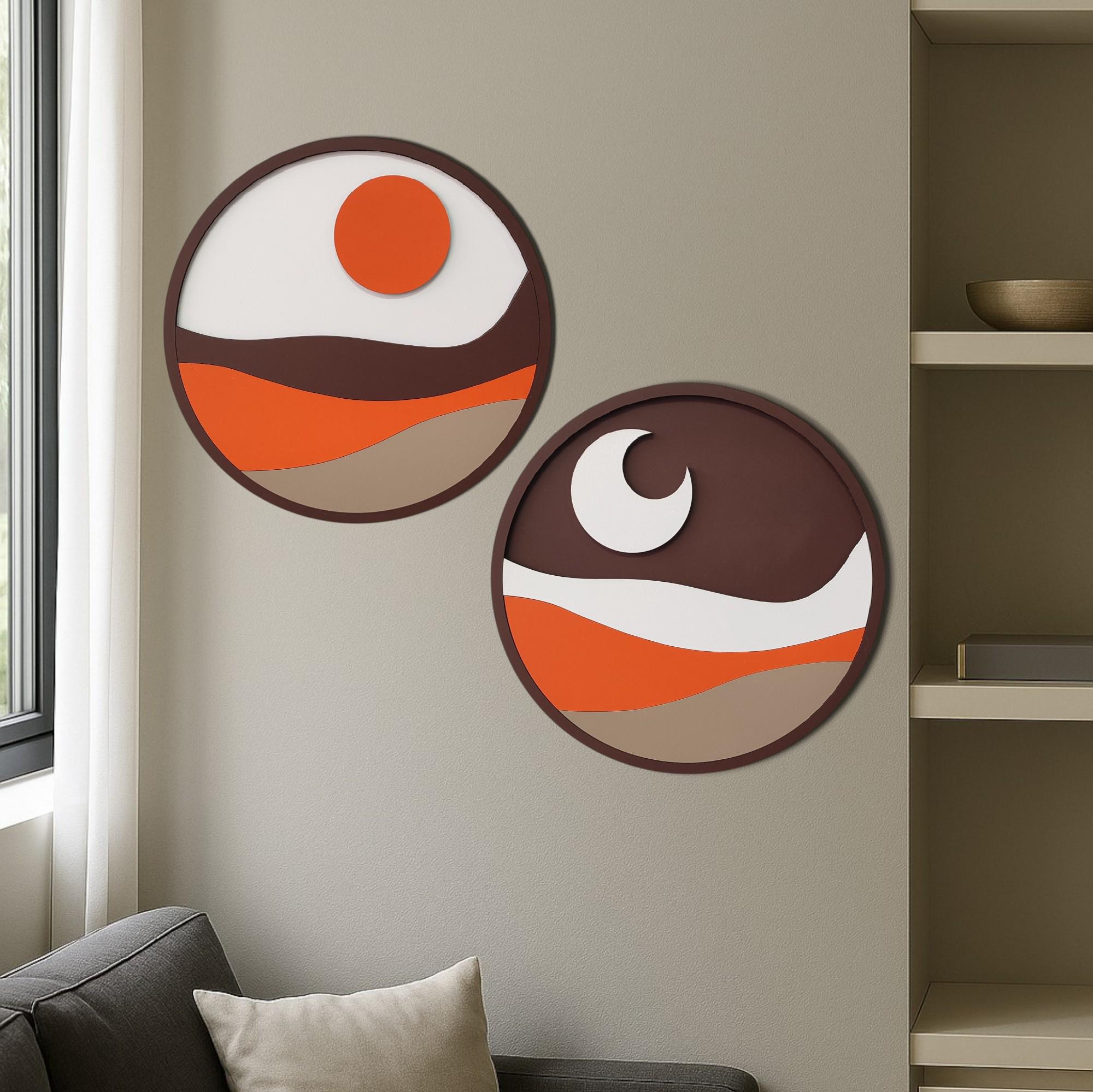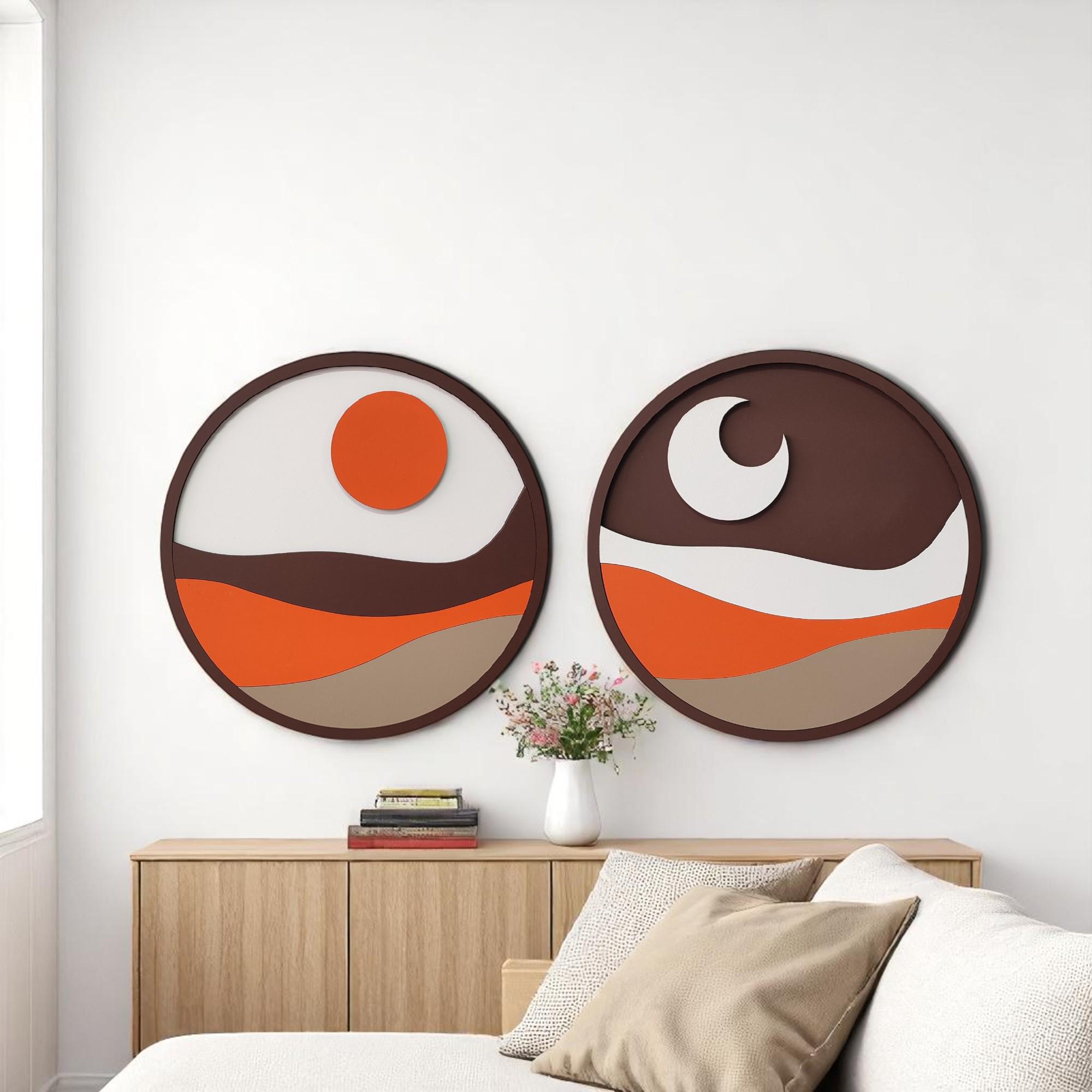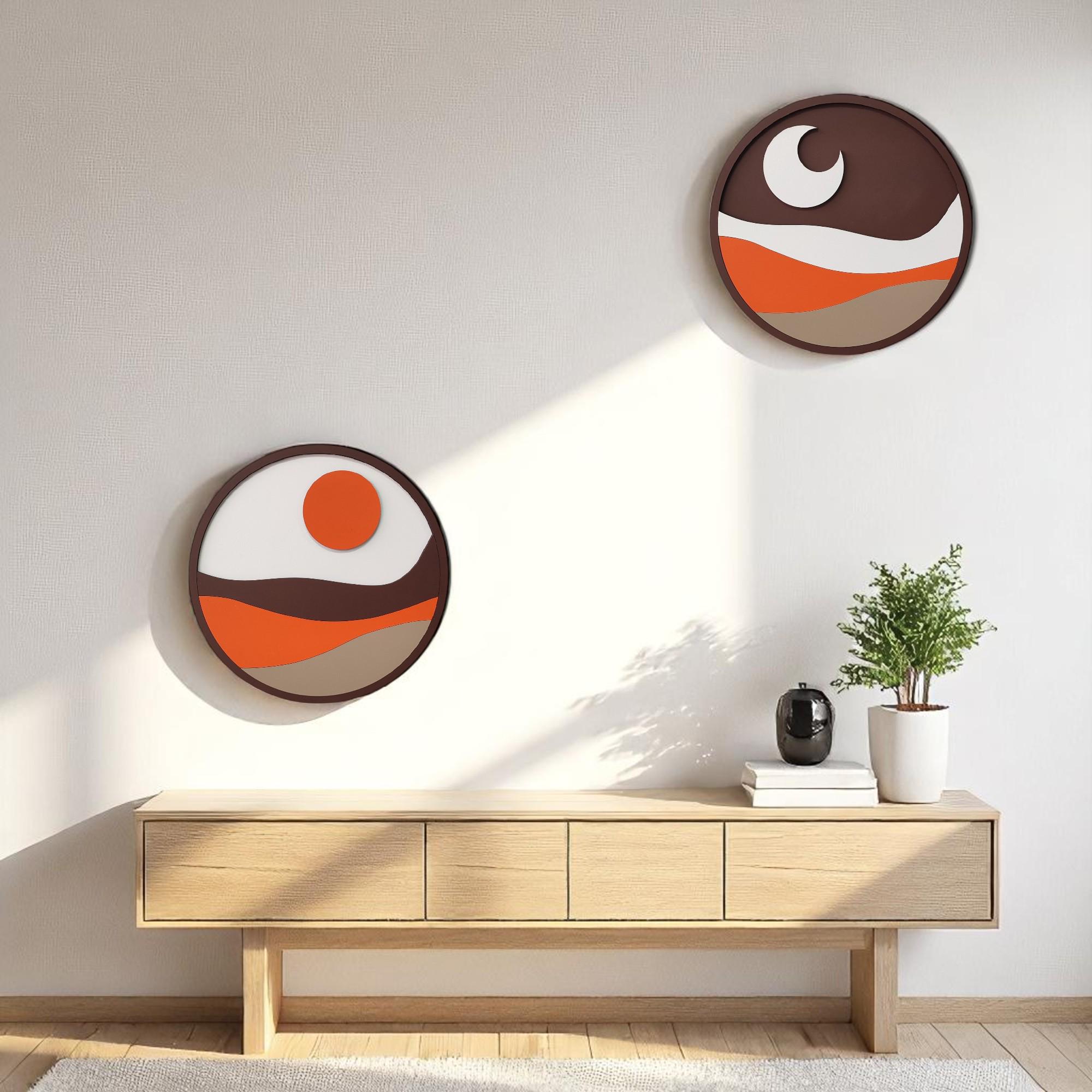 Sun and Moon Wooden Wall Art | Boho Celestial Wall Decor | Yin Yang Inspired Wall Hanging | Minimalist Cosmic Decor Set