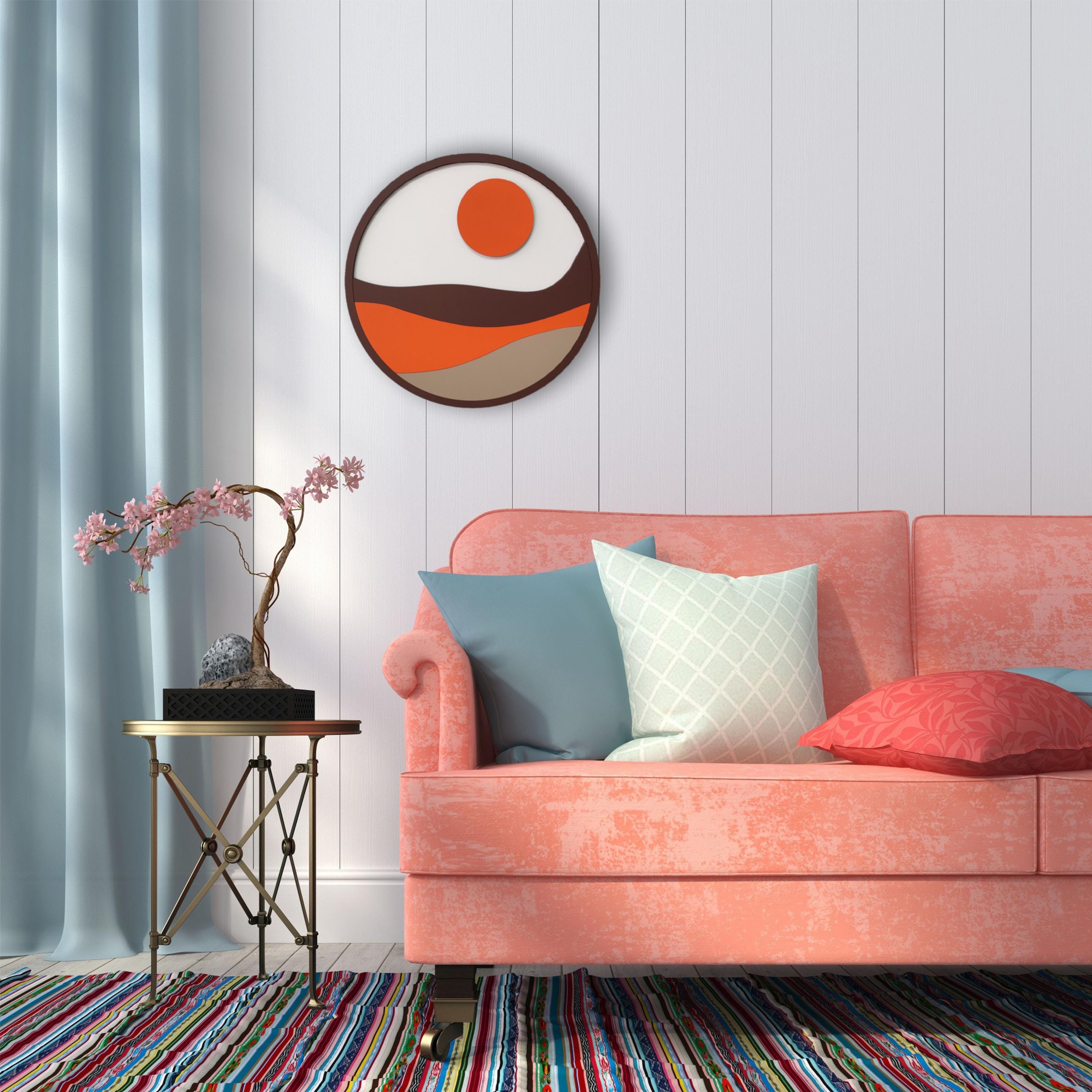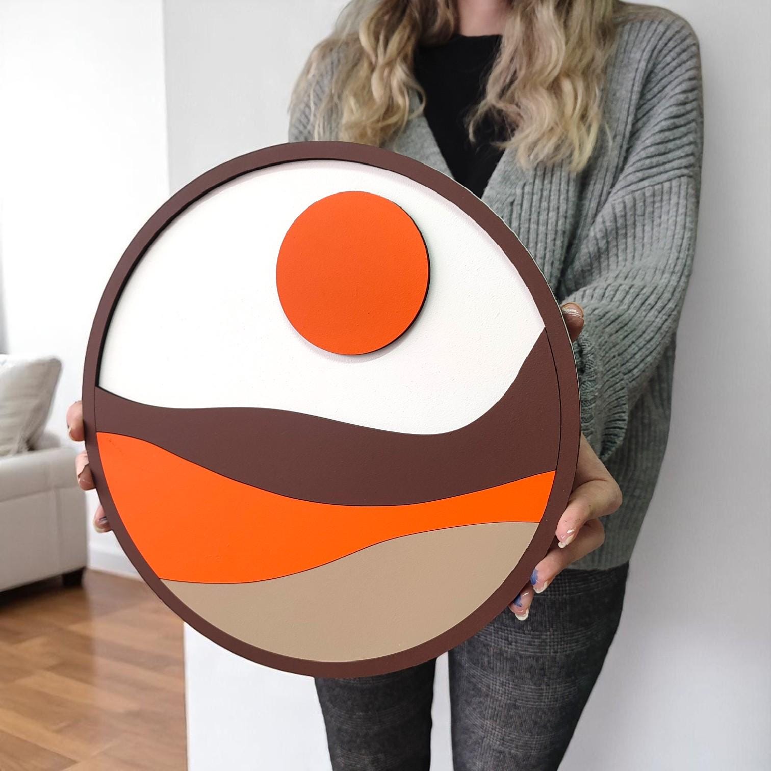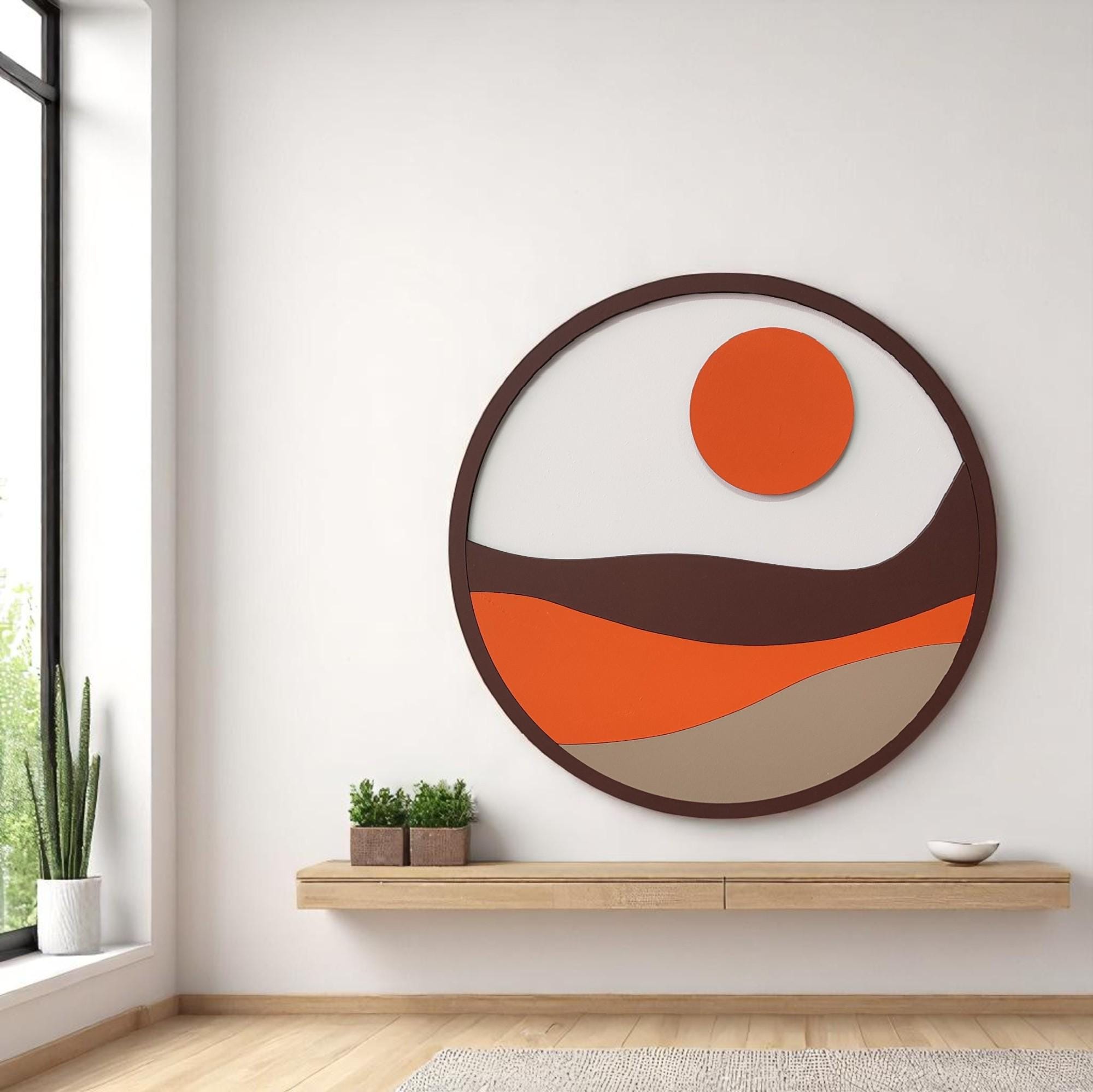 Boho Sunburst Wooden Wall Art: Hand-Painted Bohemian Decor