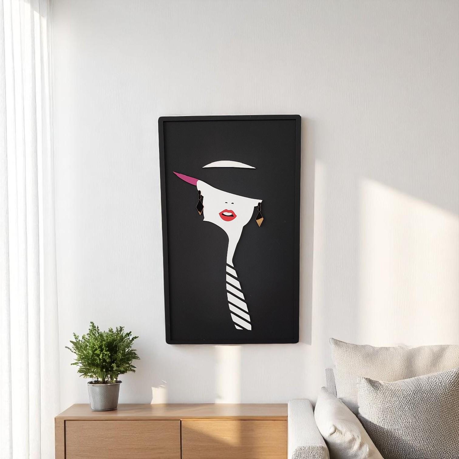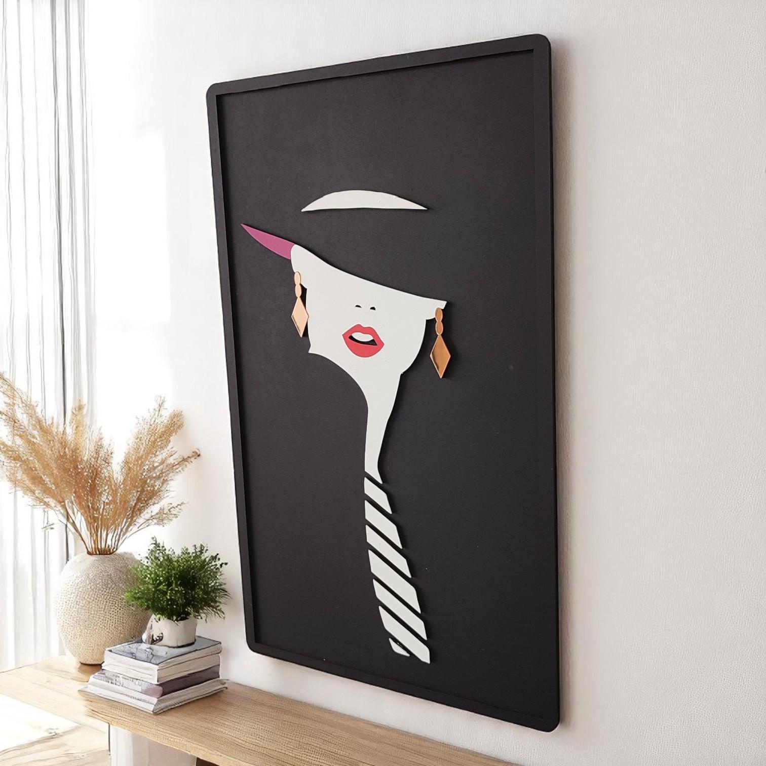 Modern Woman Wall Art with Acrylic Mirror Earring | Minimalist Boho Wooden Female Face Decor for Stylish Home Interiors Bring elegance and modern charm to your space with this Modern Woman Wall Art,...