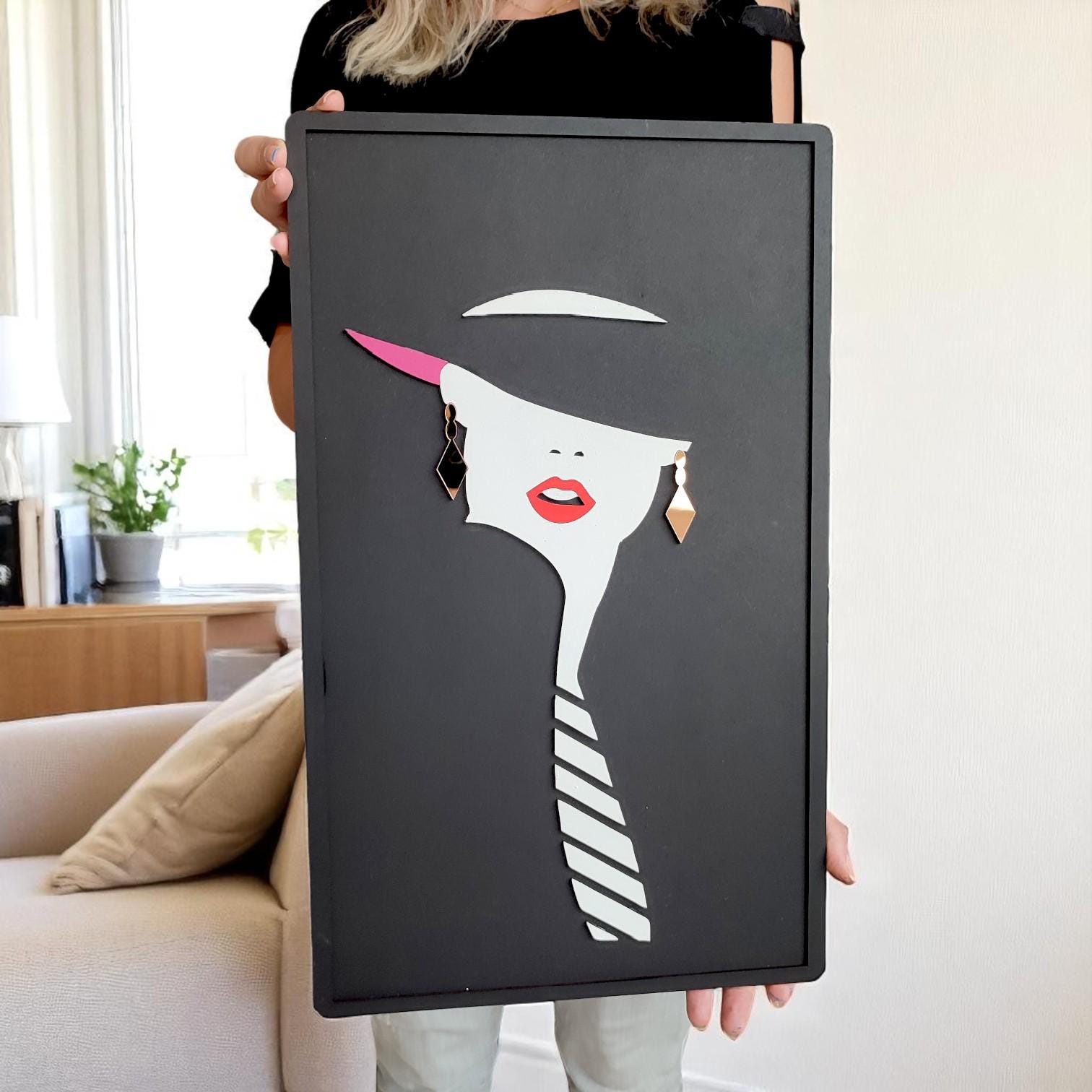 Bring elegance and modern charm to your space with this Modern Woman Wall Art, featuring a minimalist wooden female face and a striking acrylic mirror earring detail. This handmade boho-inspired piece adds depth, sophistication, and a touch of glam to any room—perfect for living rooms, bedrooms, dressing areas, or creative studios.