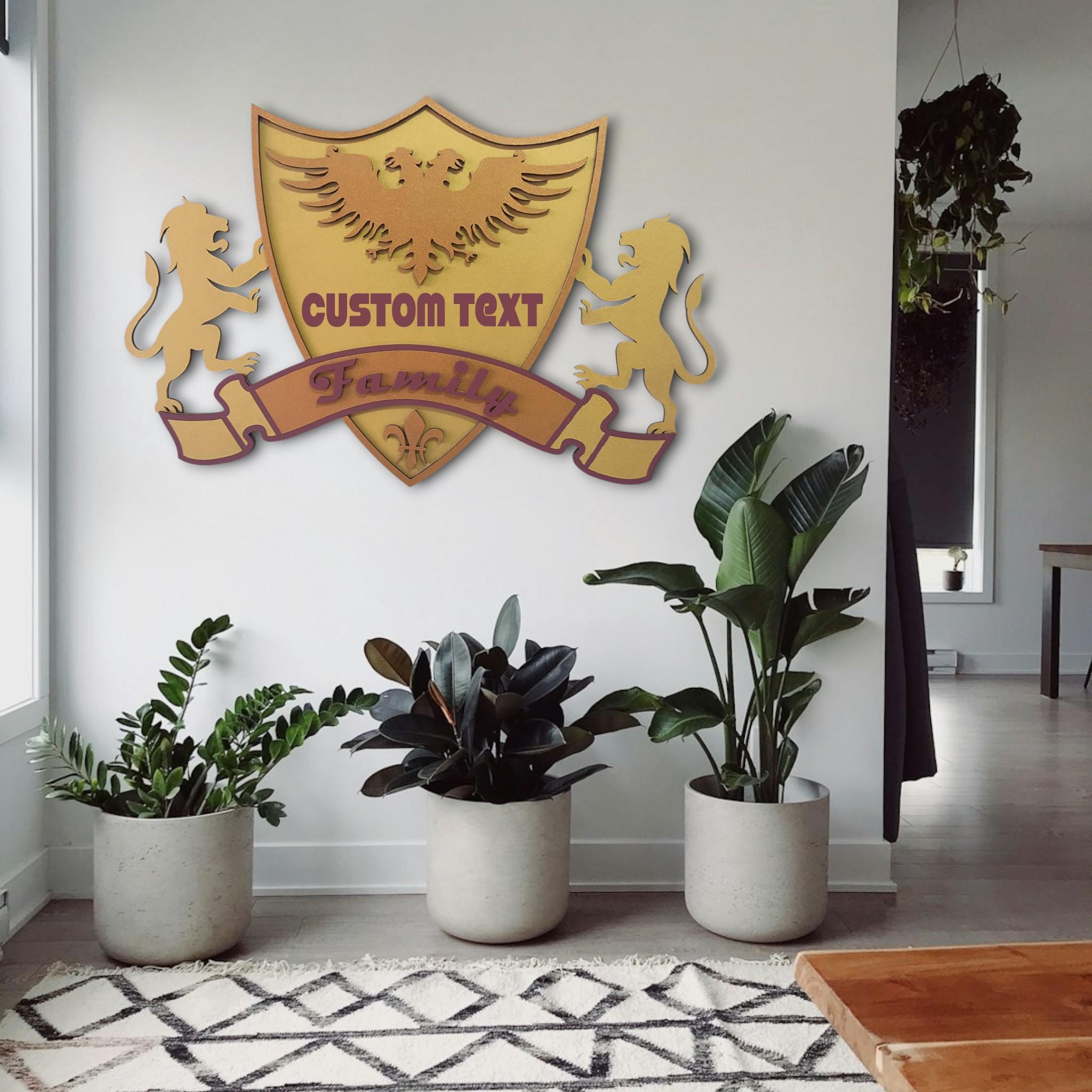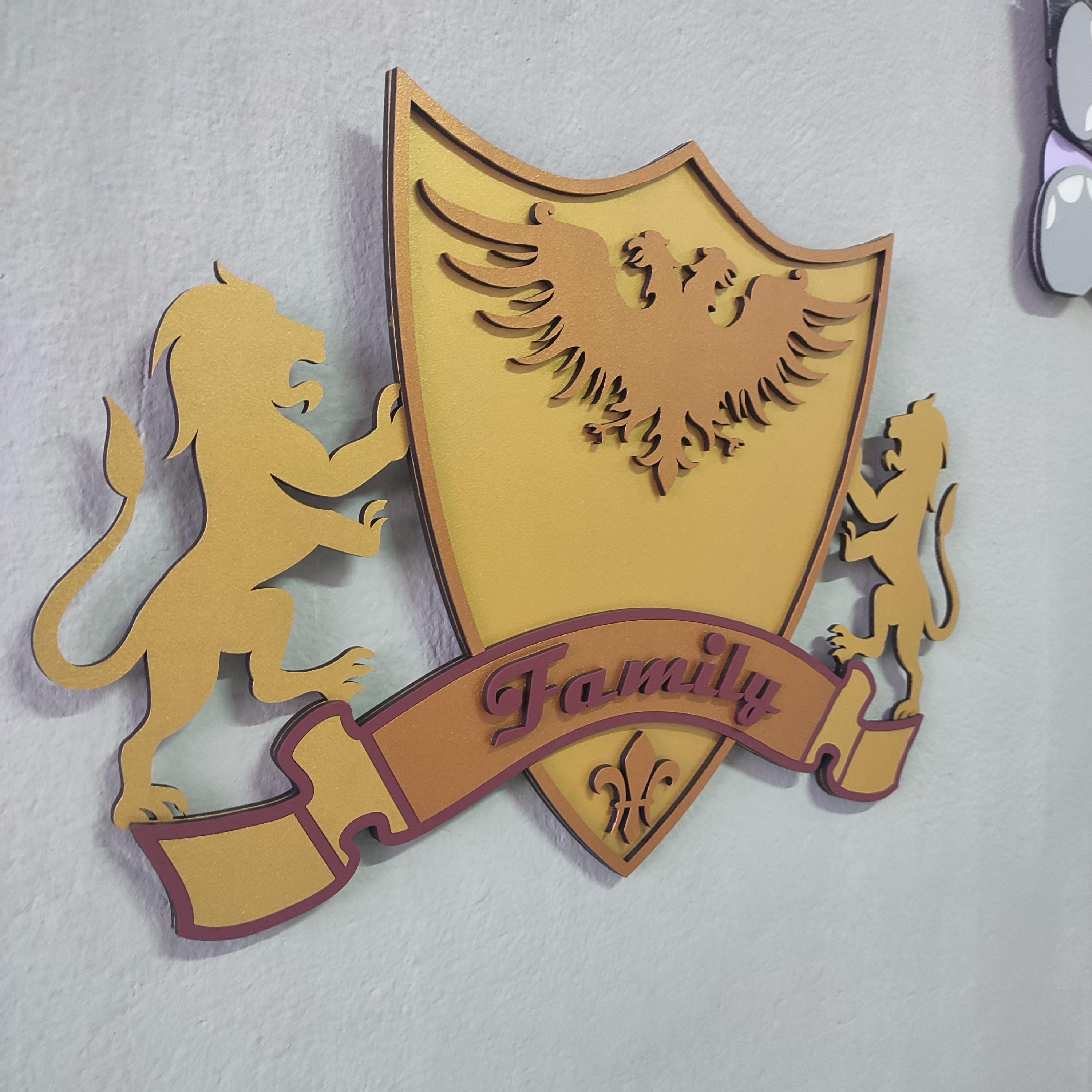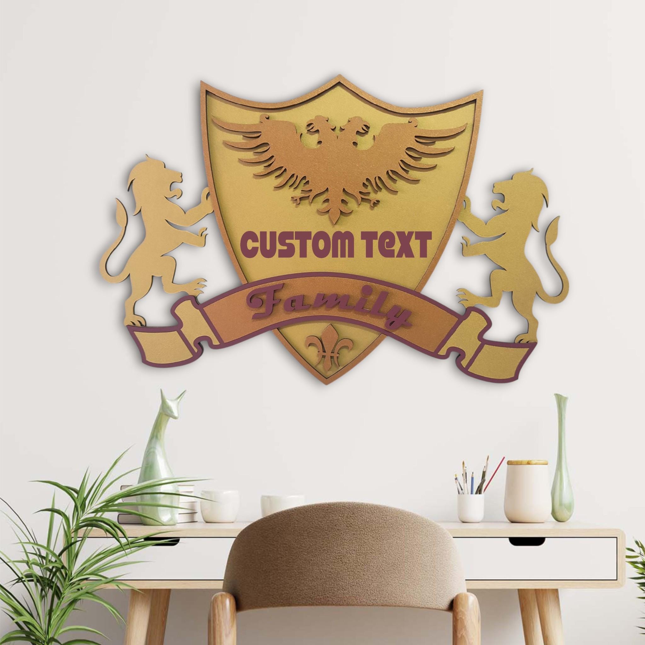 Custom Family Crest Wooden Wall Art: Personalized Coat of Arms Sign
