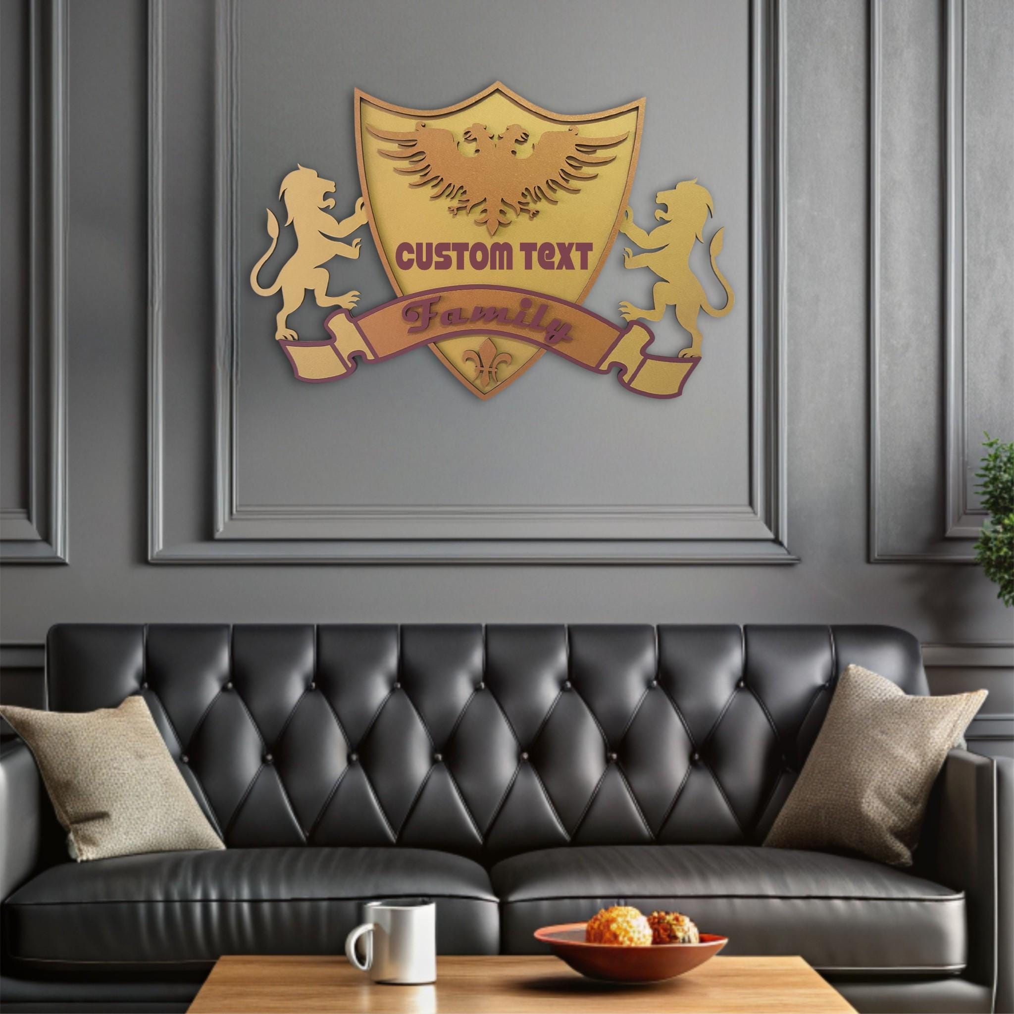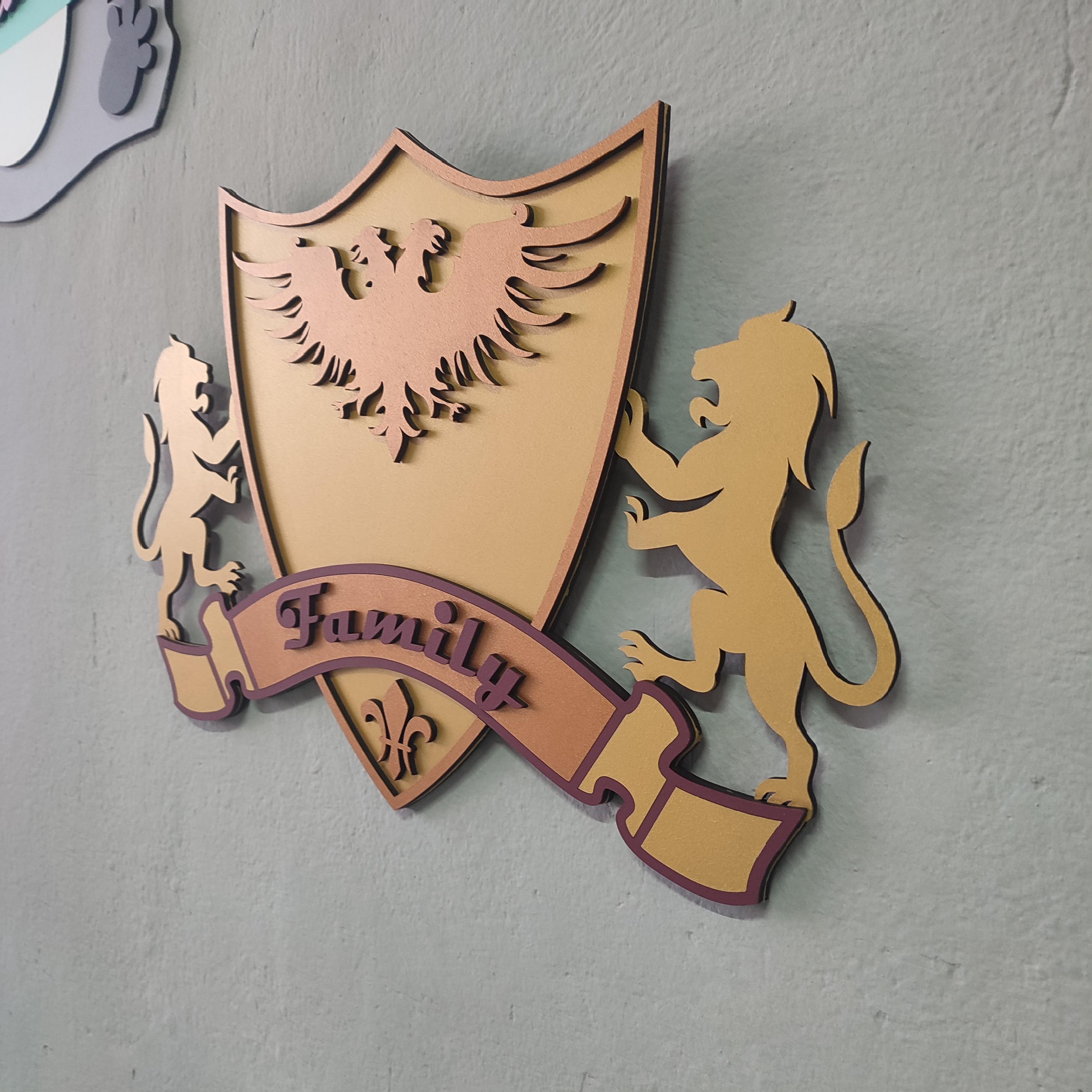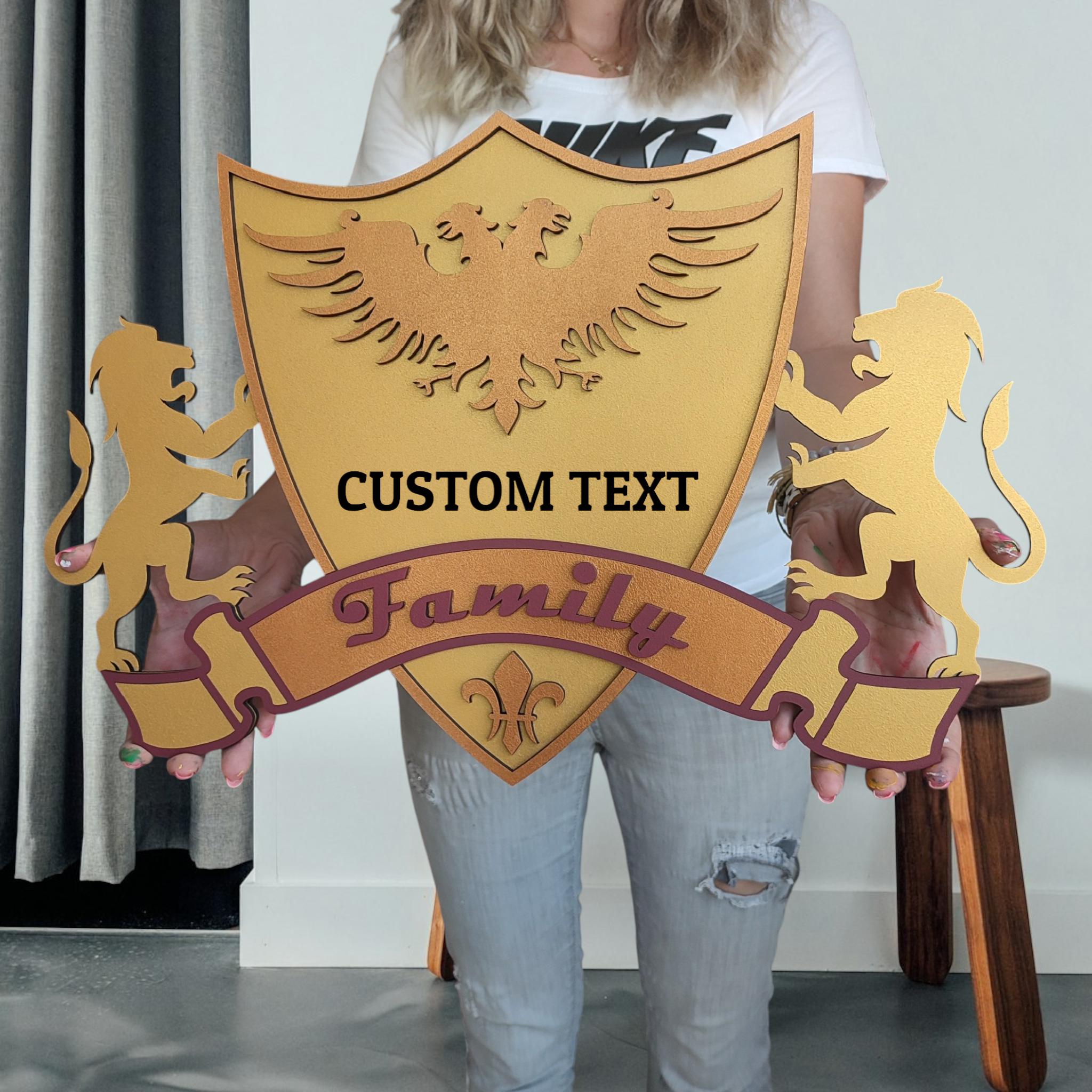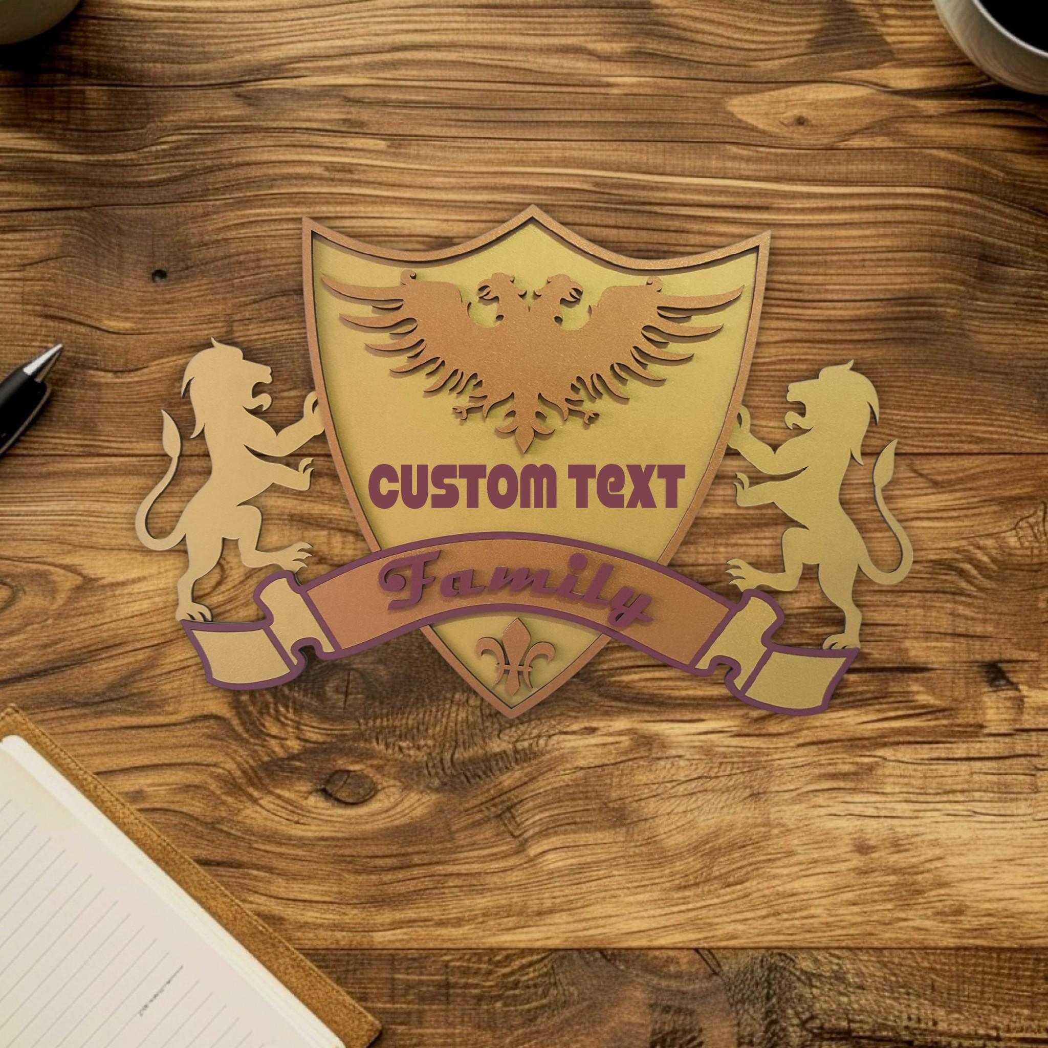 Custom Family Crest Wooden Wall Art: Personalized Coat of Arms Sign