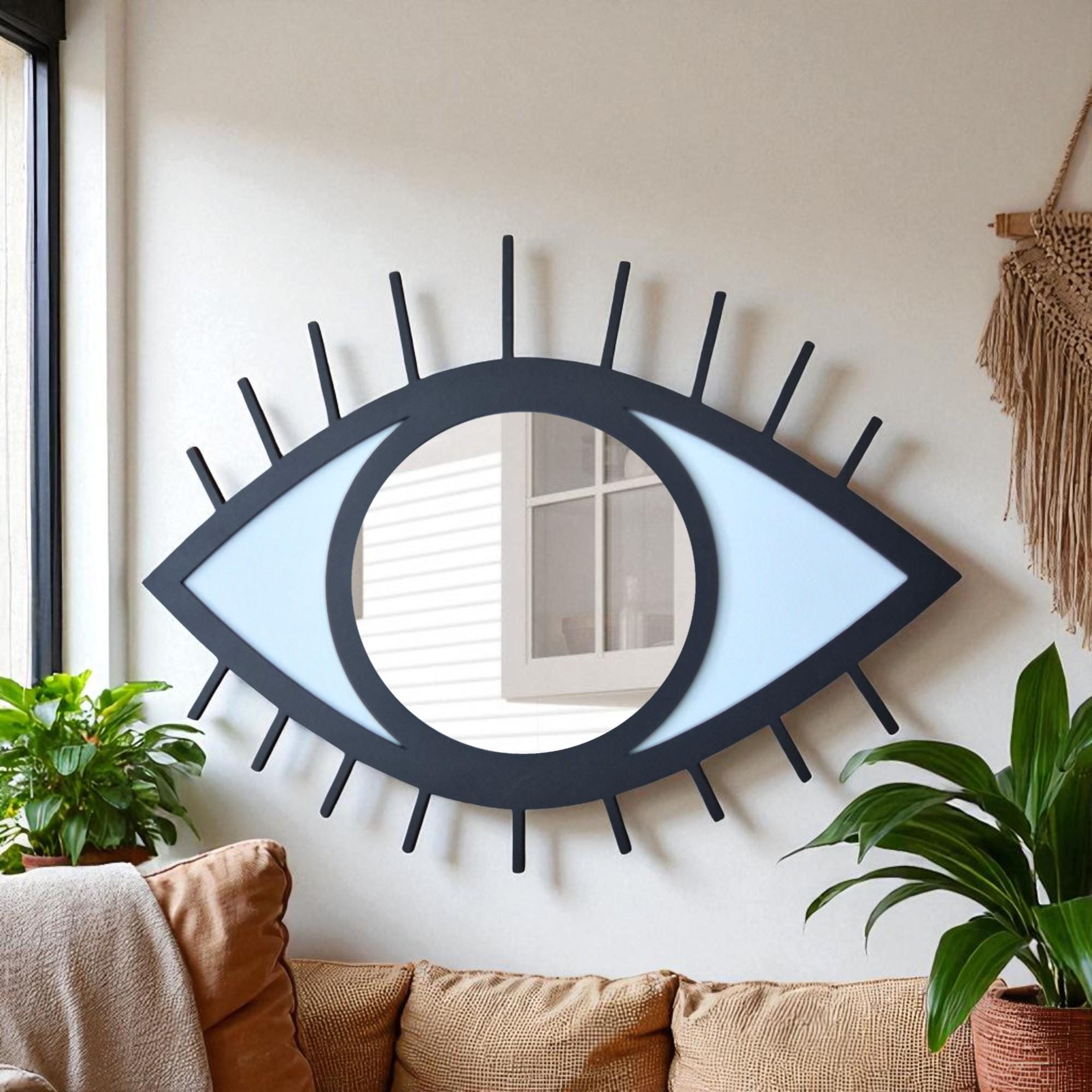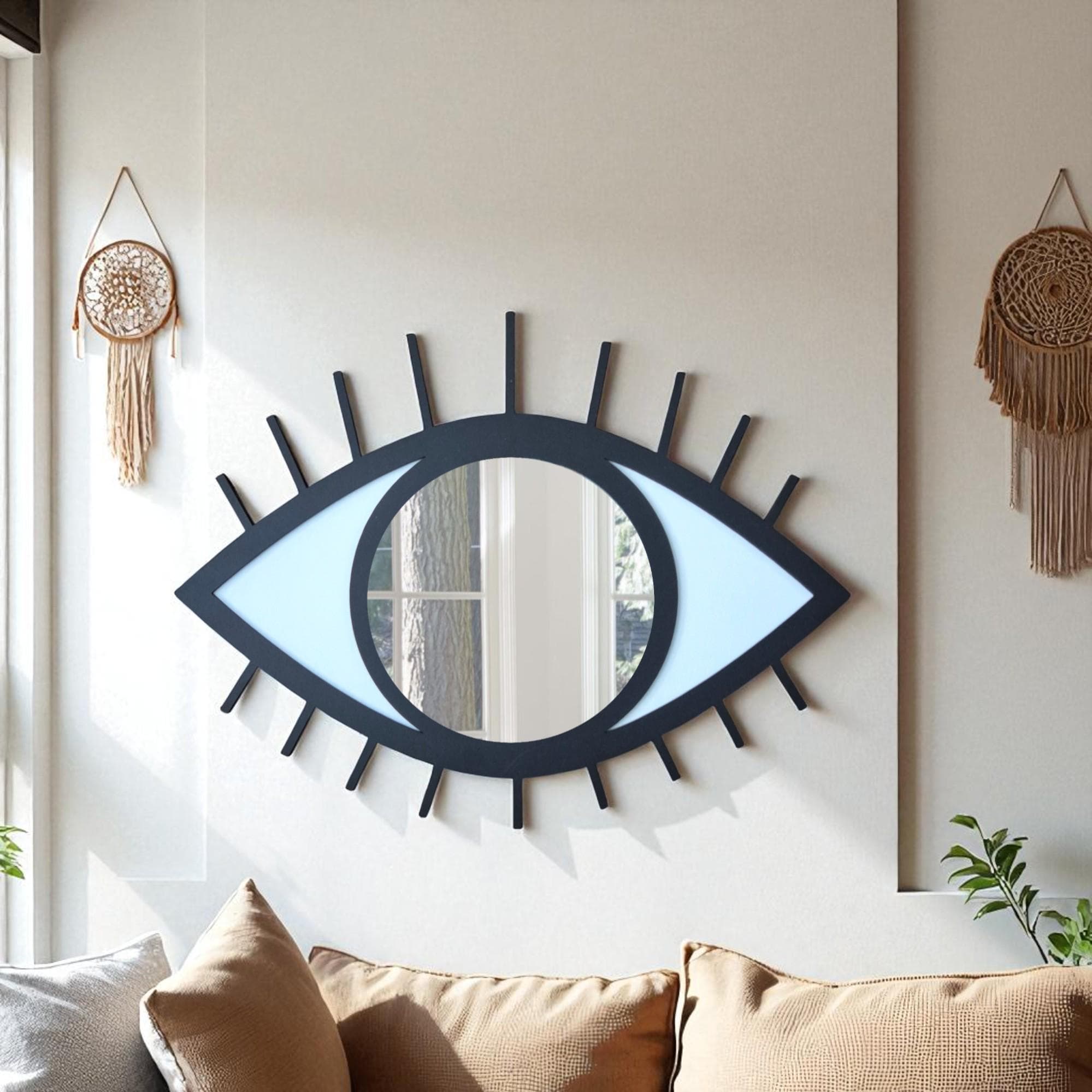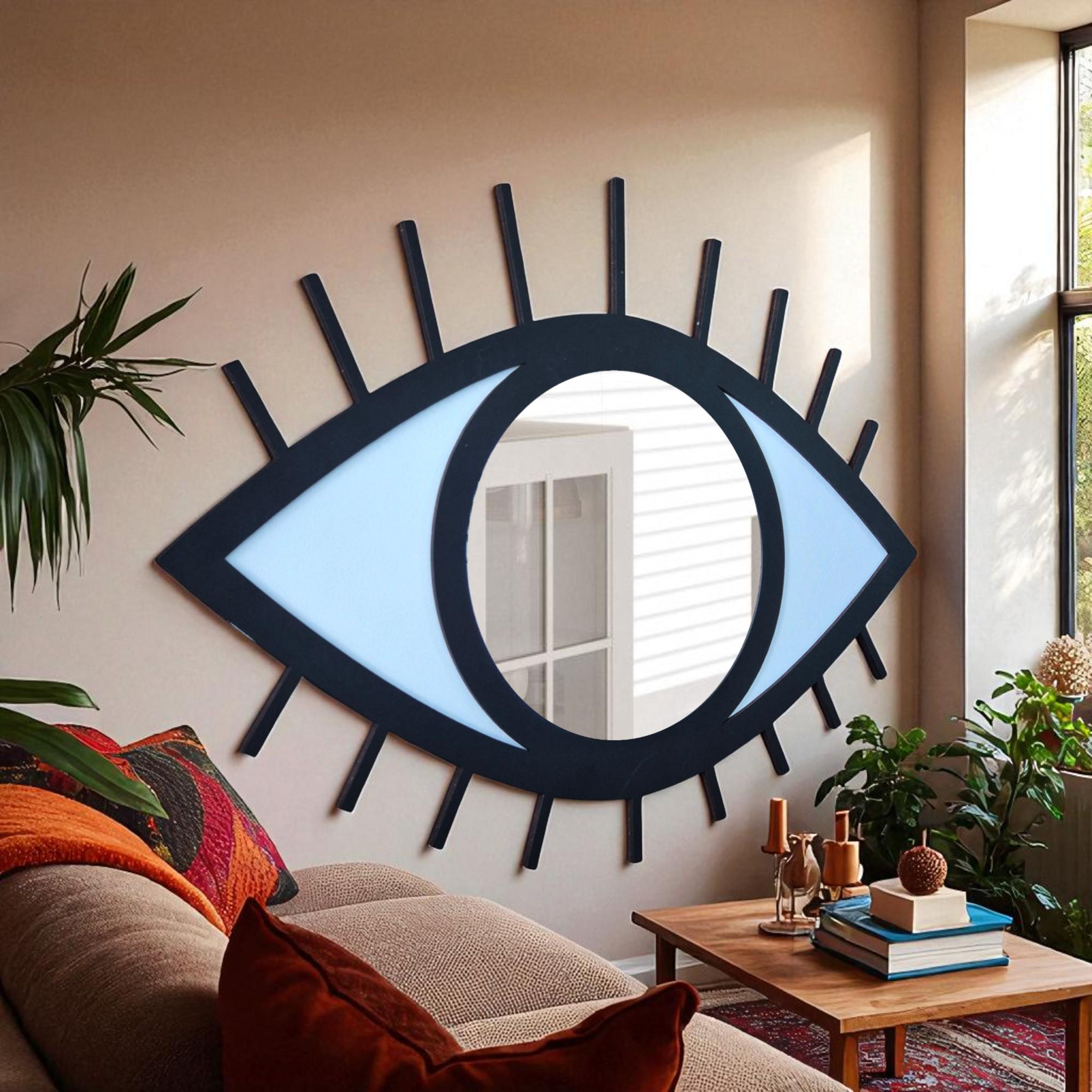 Evil Eye Mirror Wall Art: Hand-Painted Wood Nazar Protection