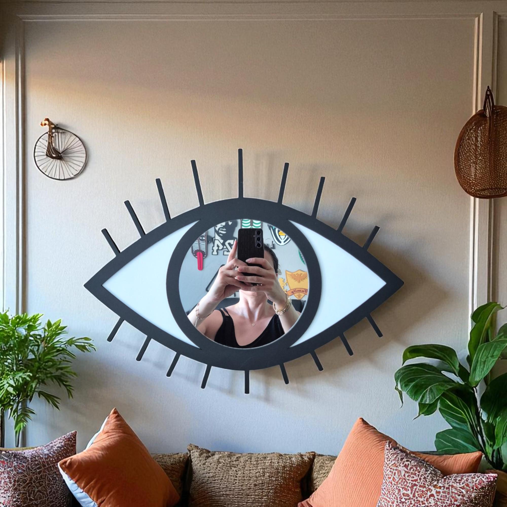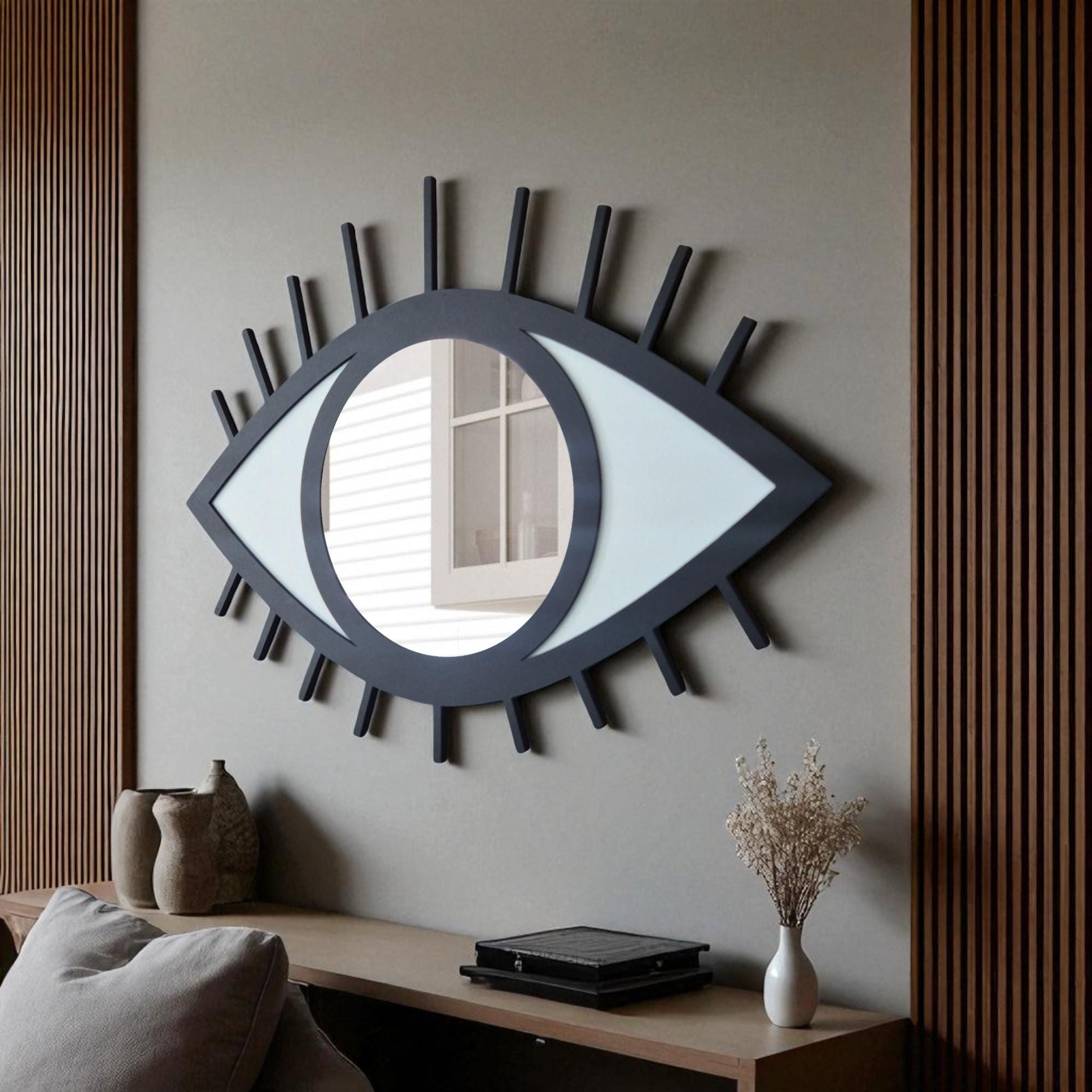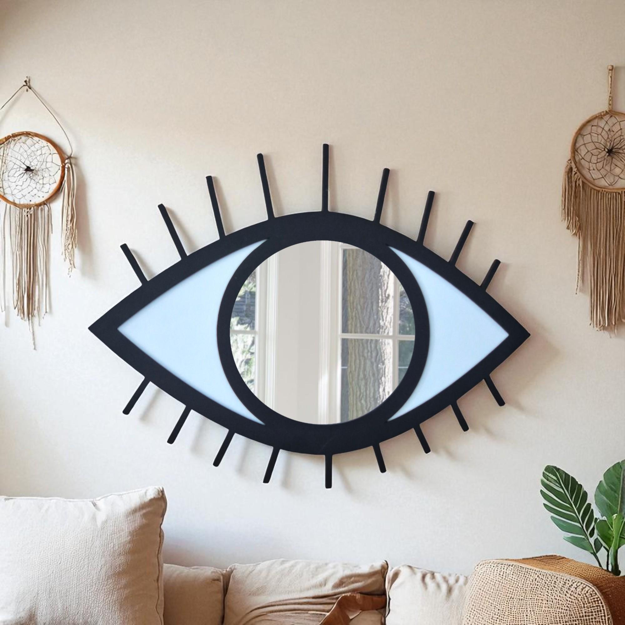 Evil Eye Mirror Wall Art: Hand-Painted Wood Nazar Protection
