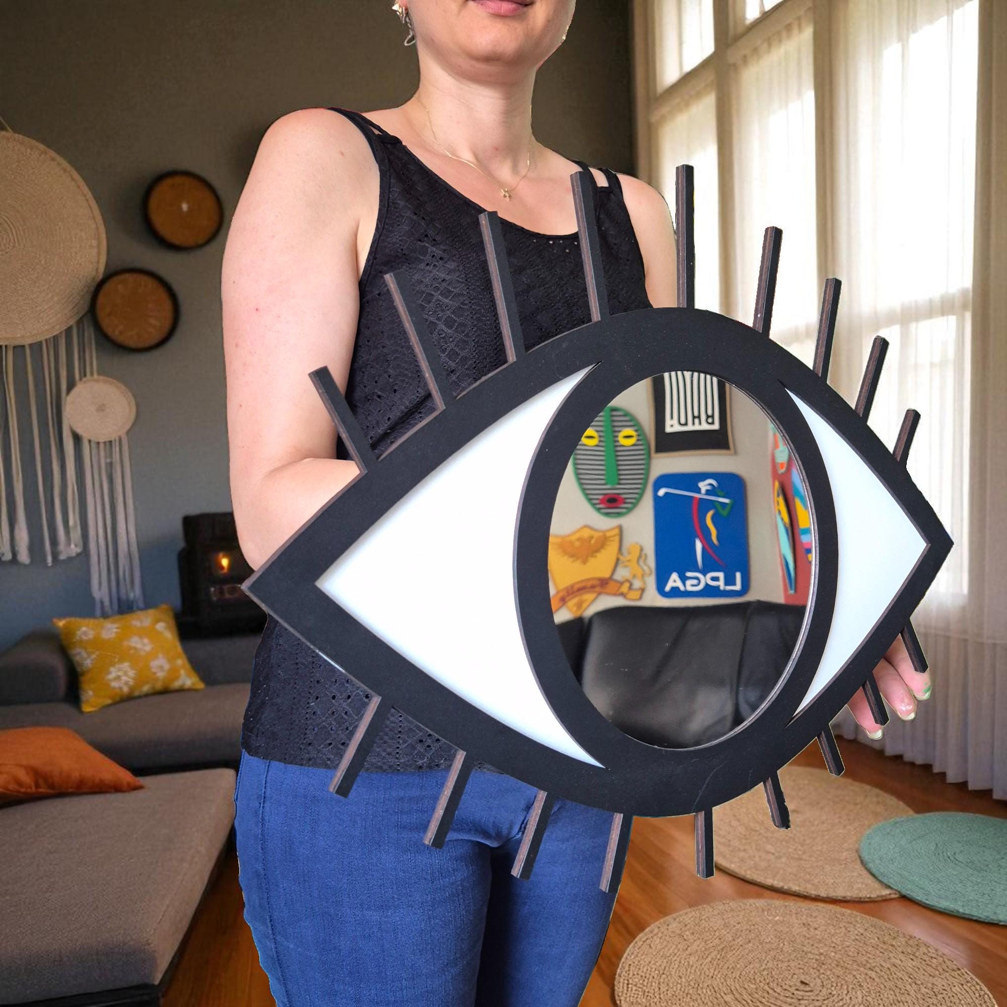 Protect your space with style using this Evil Eye Wall Art with Mirror — a handcrafted wooden wall hanging featuring the iconic Nazar symbol. Designed to reflect negative energy while elevating your decor, this unique piece blends ancient spiritual symbolism with modern boho elegance.