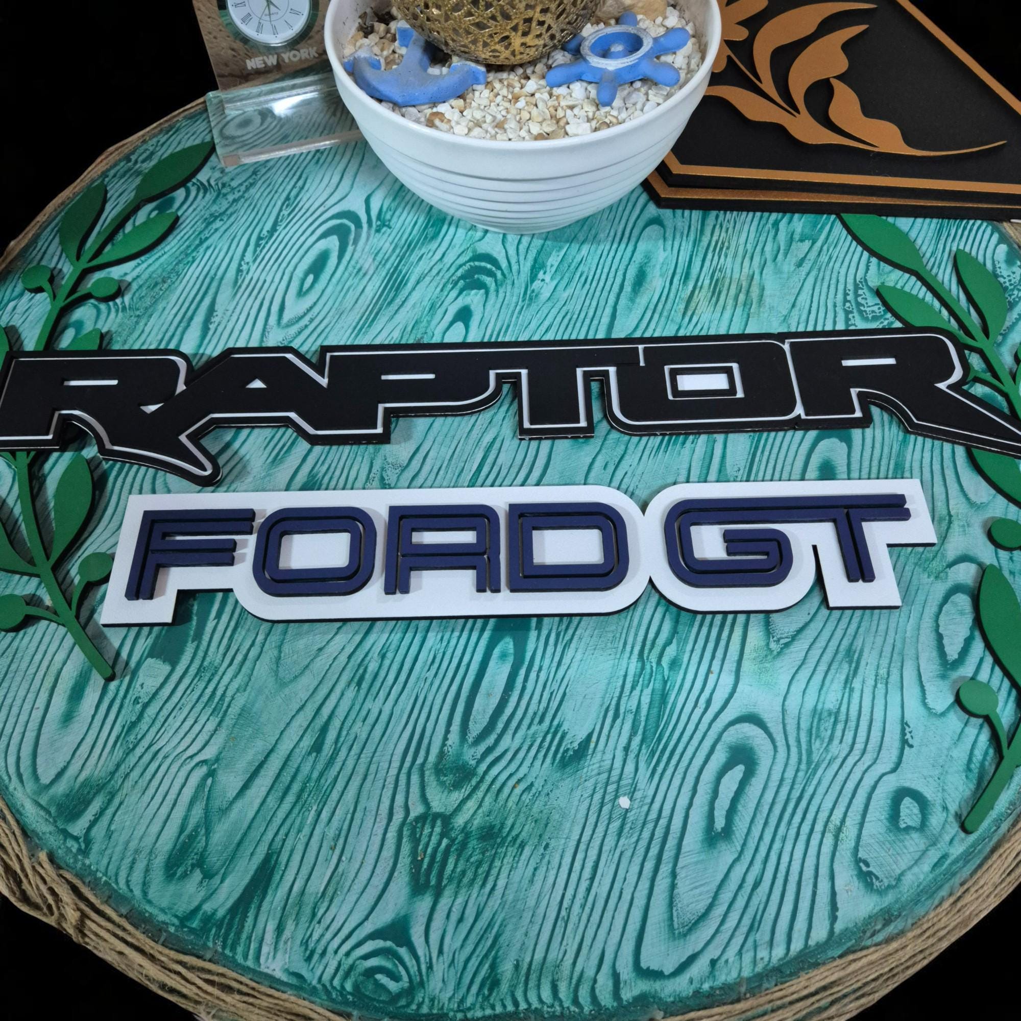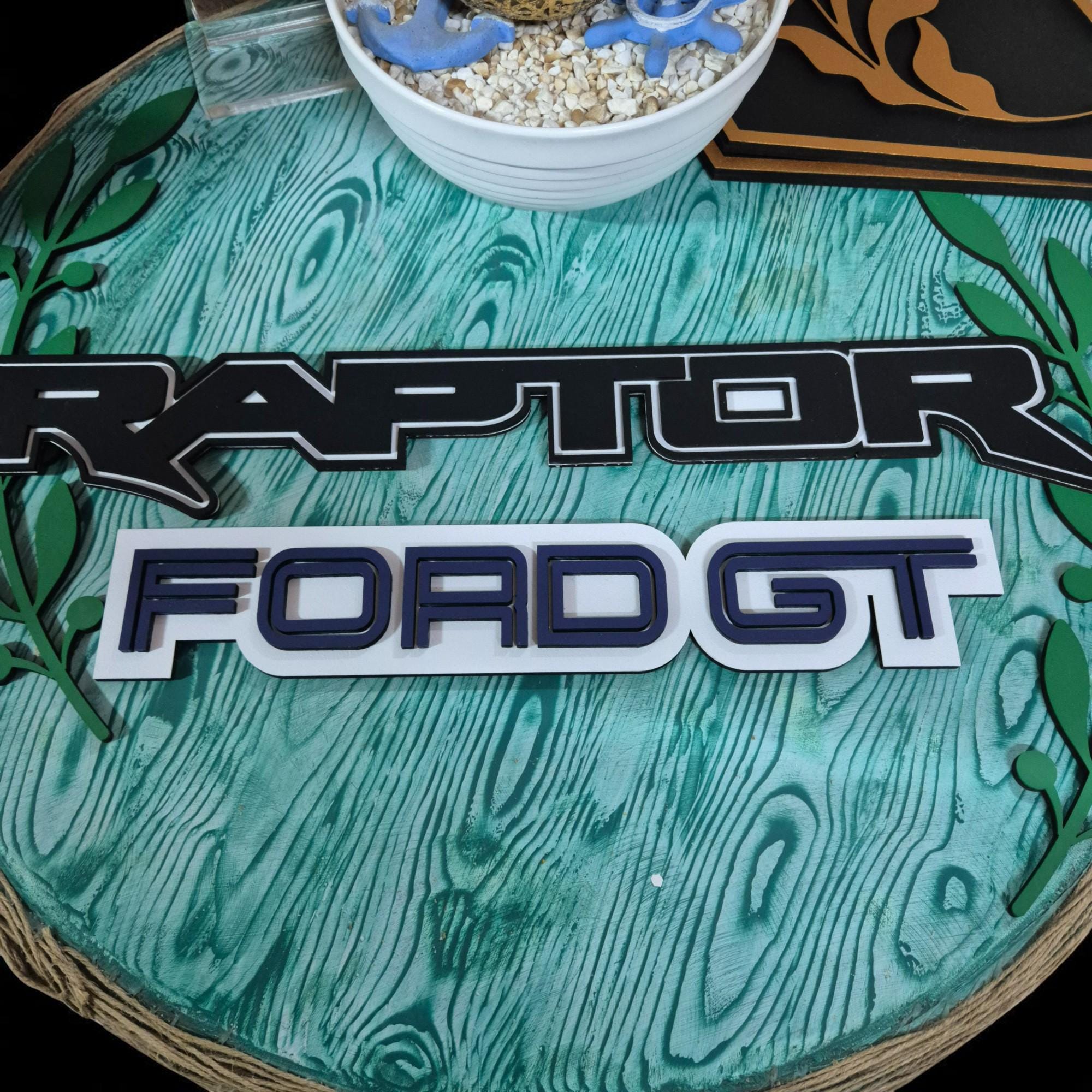 Ford Raptor Wooden Wall Art: Hand-Painted Truck Logo Decor