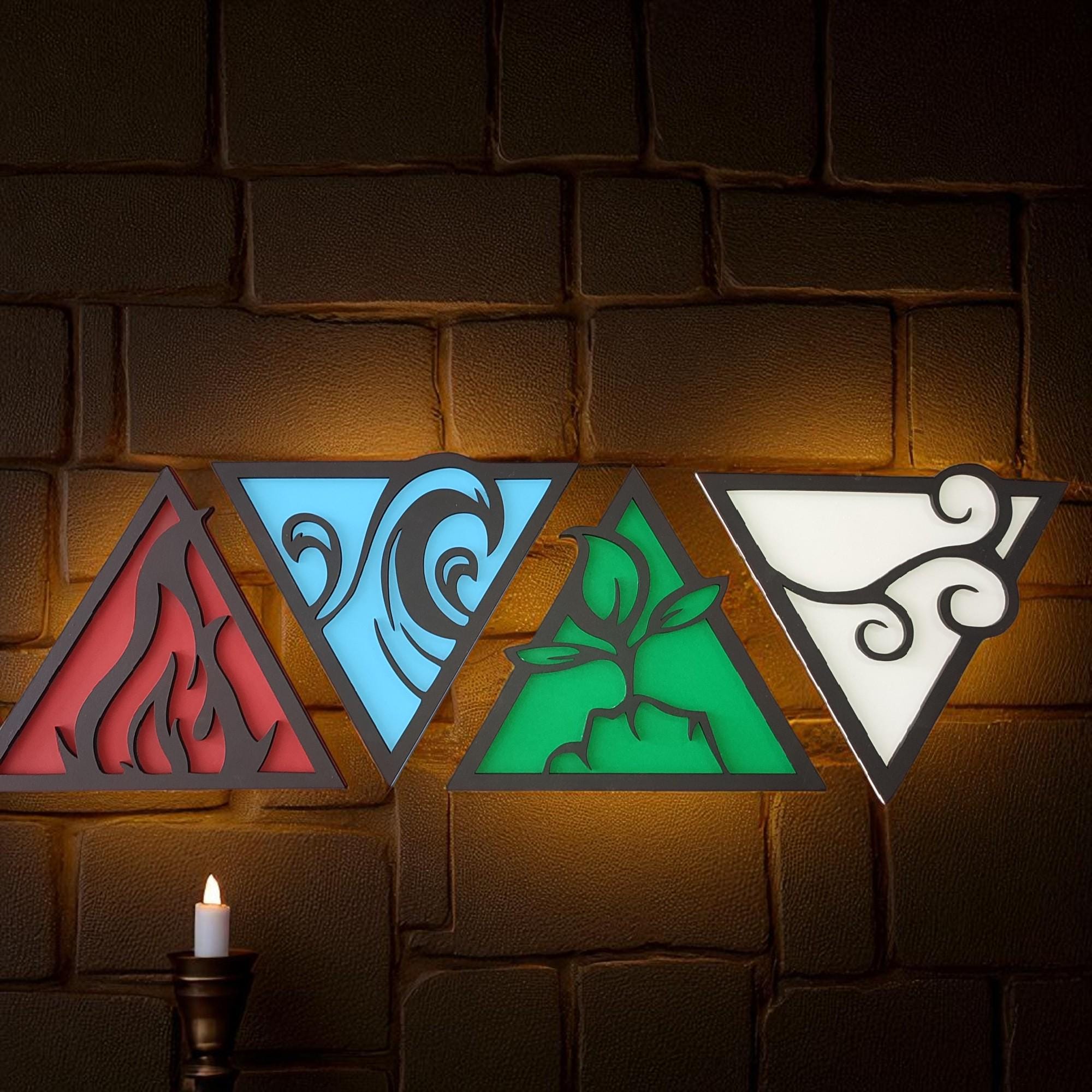 Four Elements Wood Wall Art: Hand-Painted Spiritual Decor