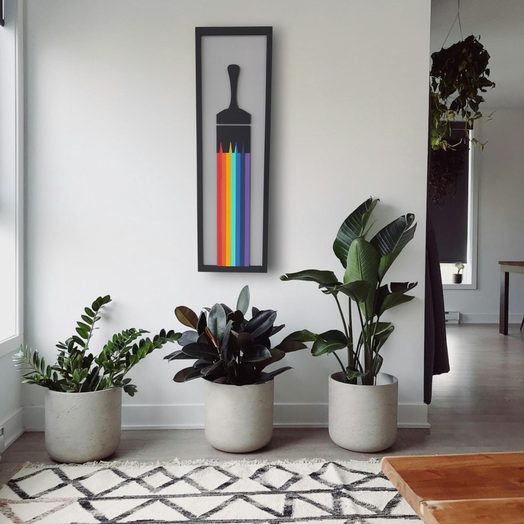 Handcrafted Charm: Crafted from high-quality wood, each paintbrush is meticulously designed and framed to create a one-of-a-kind wall painting that adds character and personality to your space.