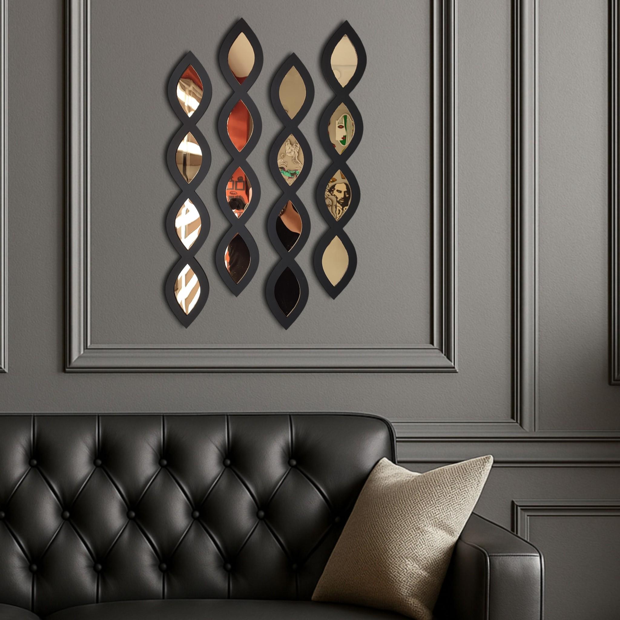 Set of 4 Gold Acrylic Mirror Wall Art | Modern Wooden & Mirror Decor | Geometric Boho Style for Living Room, Entryway, or Office