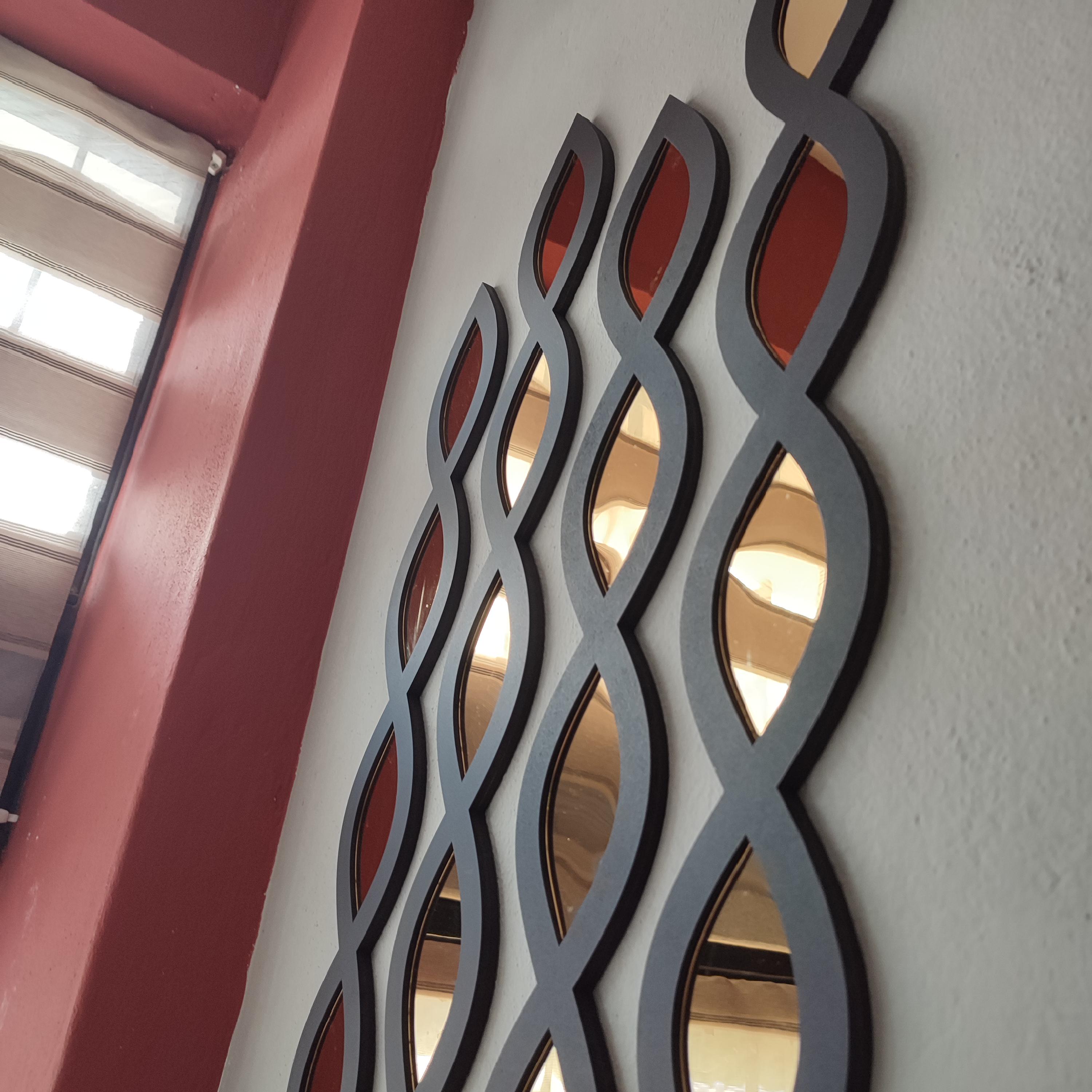 Add a touch of reflective beauty and artistic charm to your space with this handcrafted mirror wall art set.