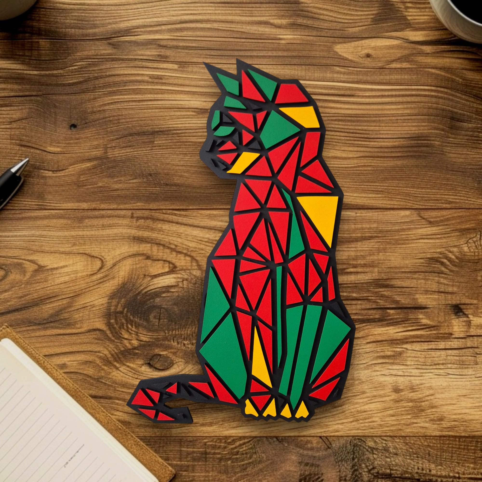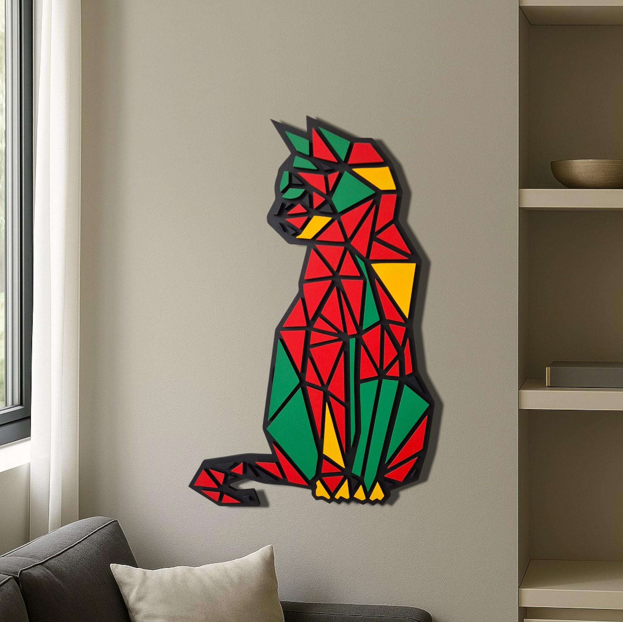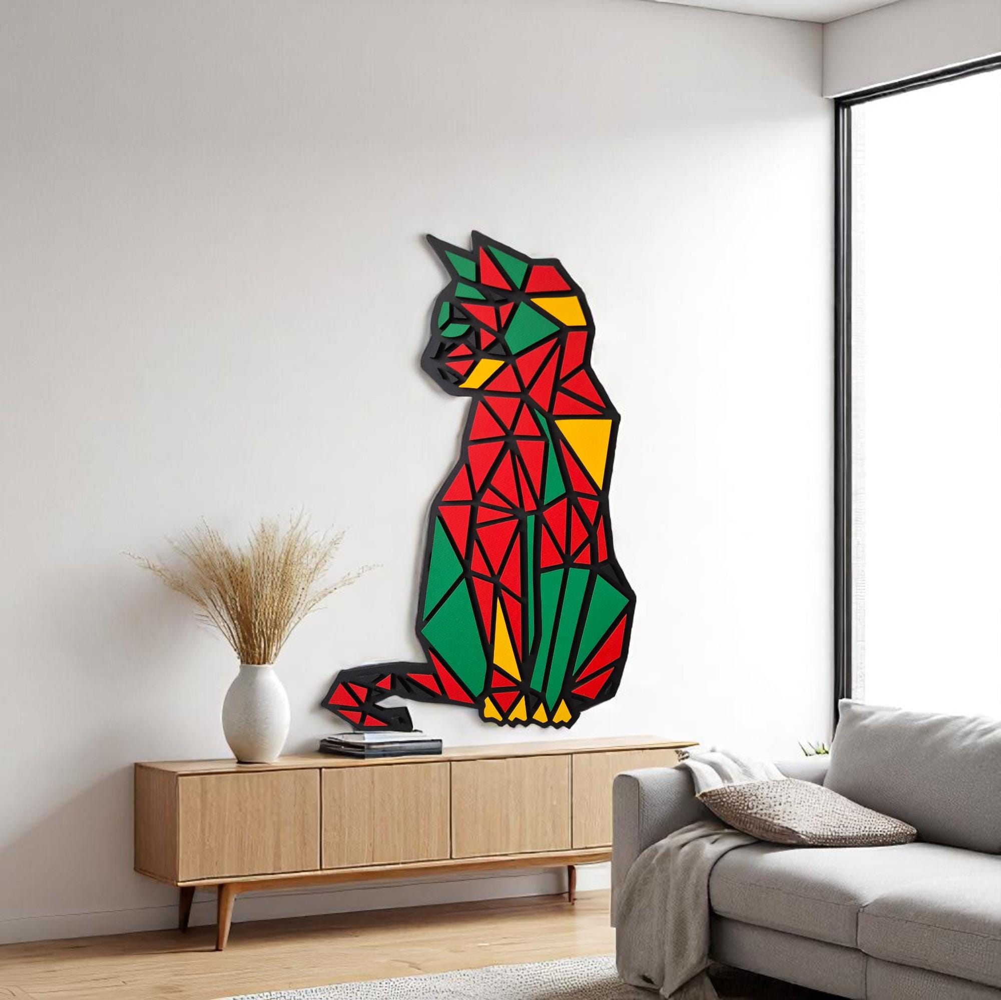 Geometric Cat Wall Art: Hand-Painted Wooden Decor