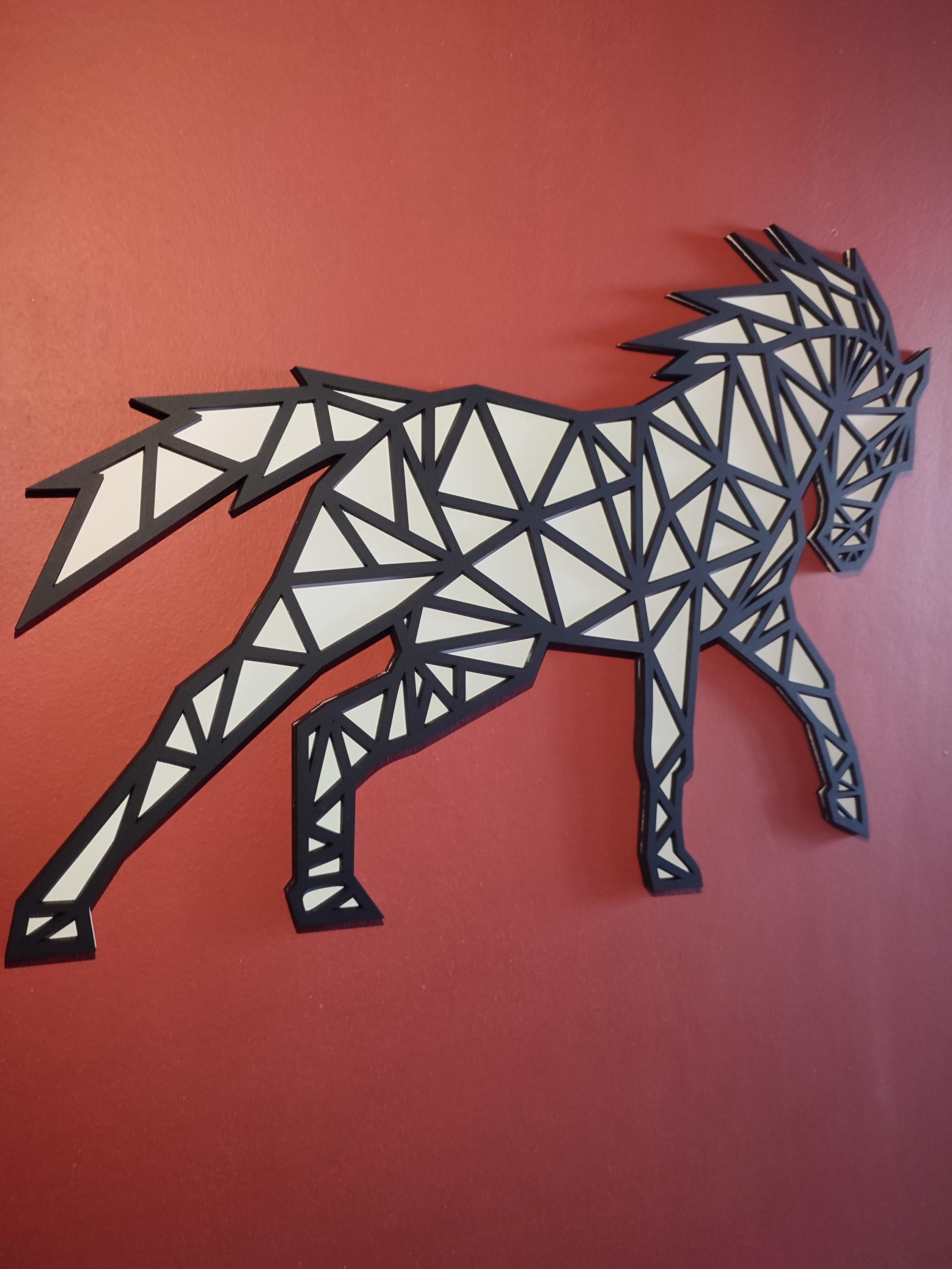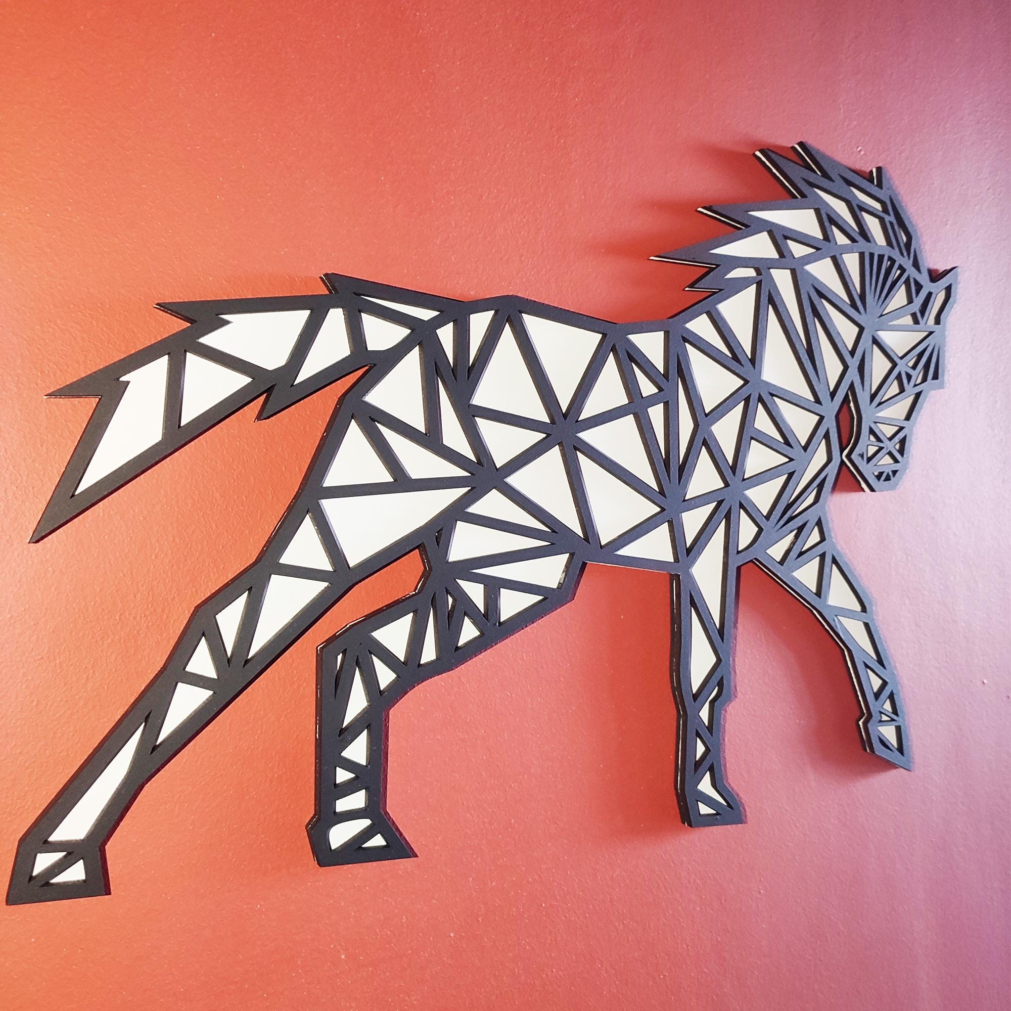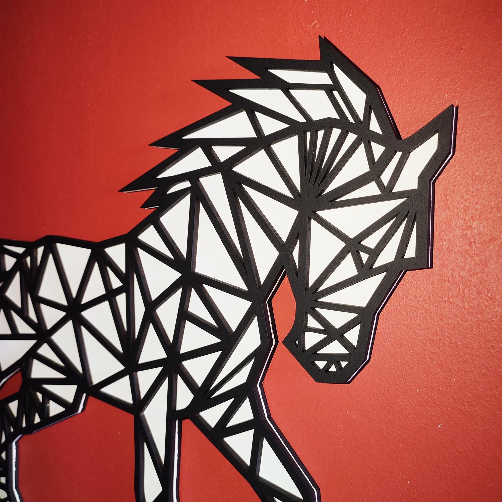 Let the strength and beauty of the horse shine through in your space with this striking geometric design!