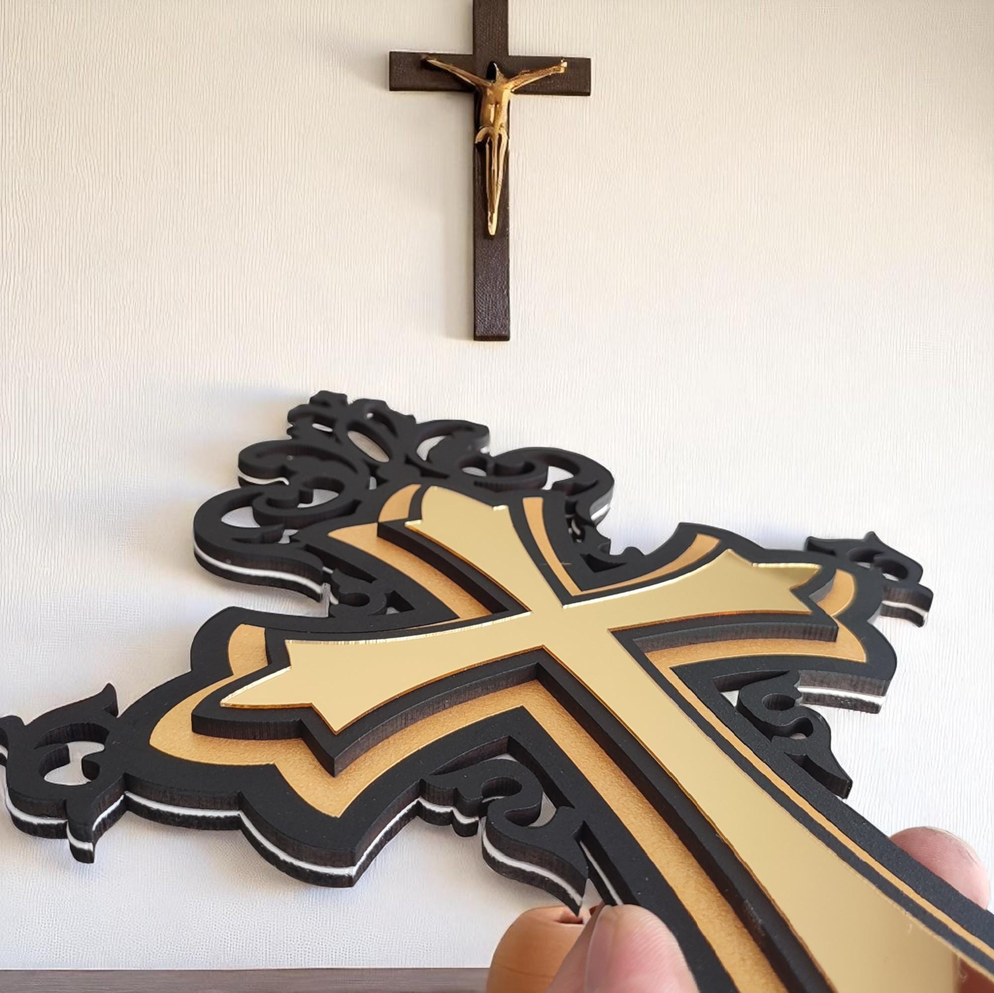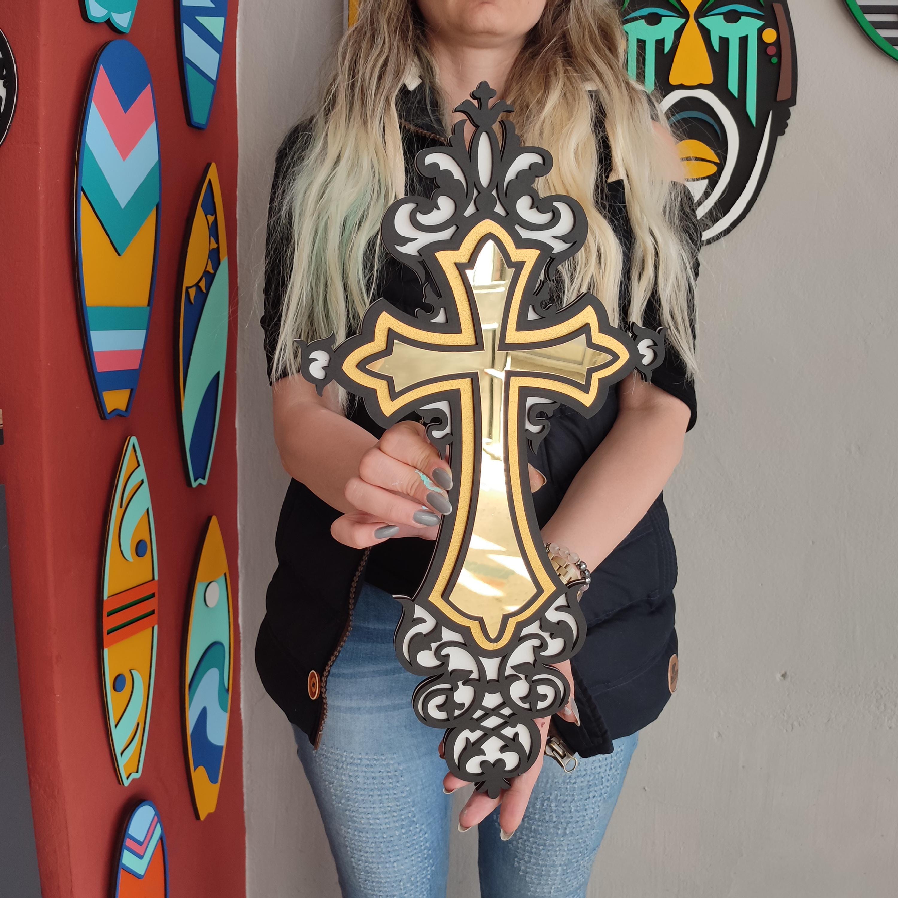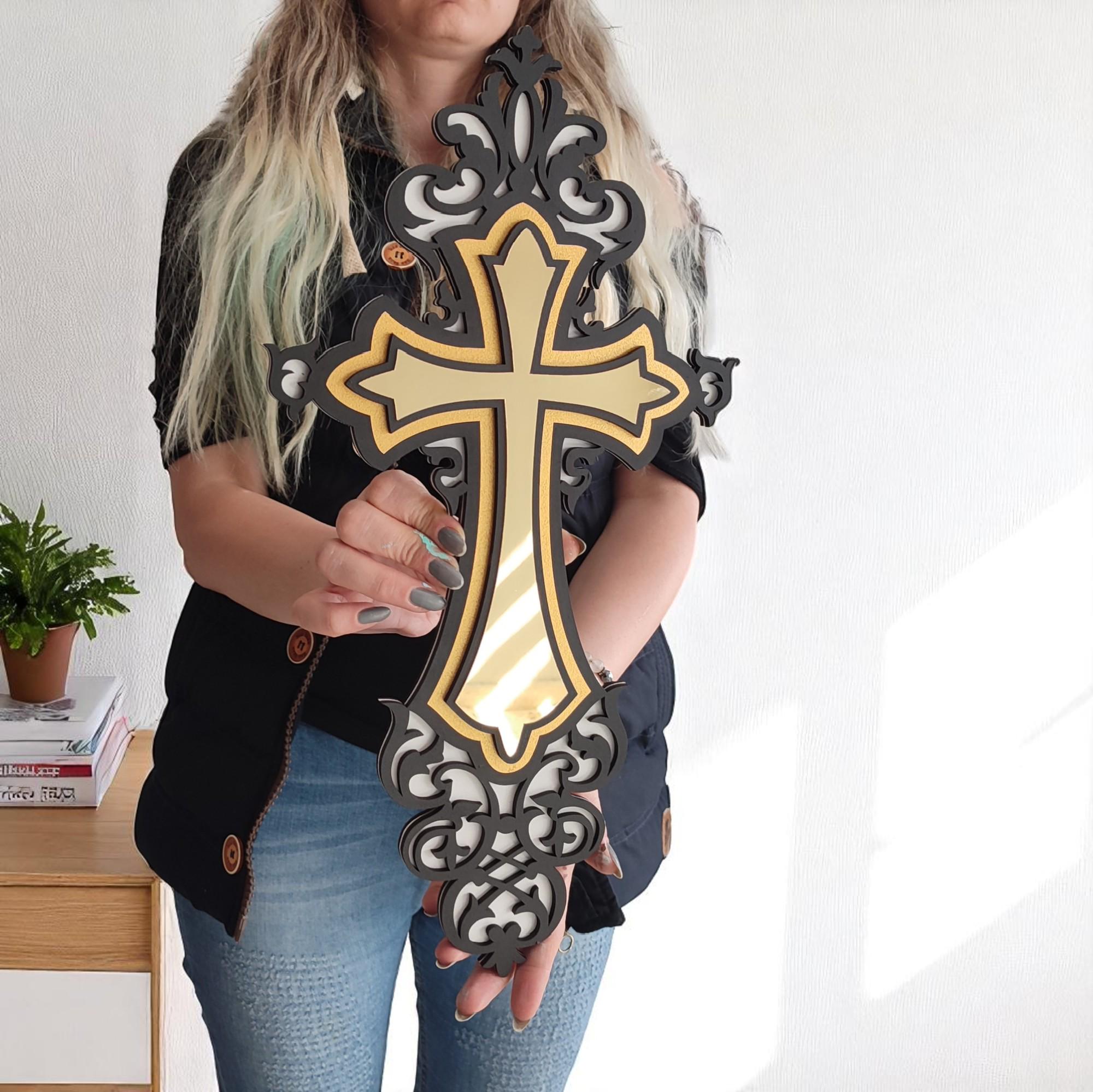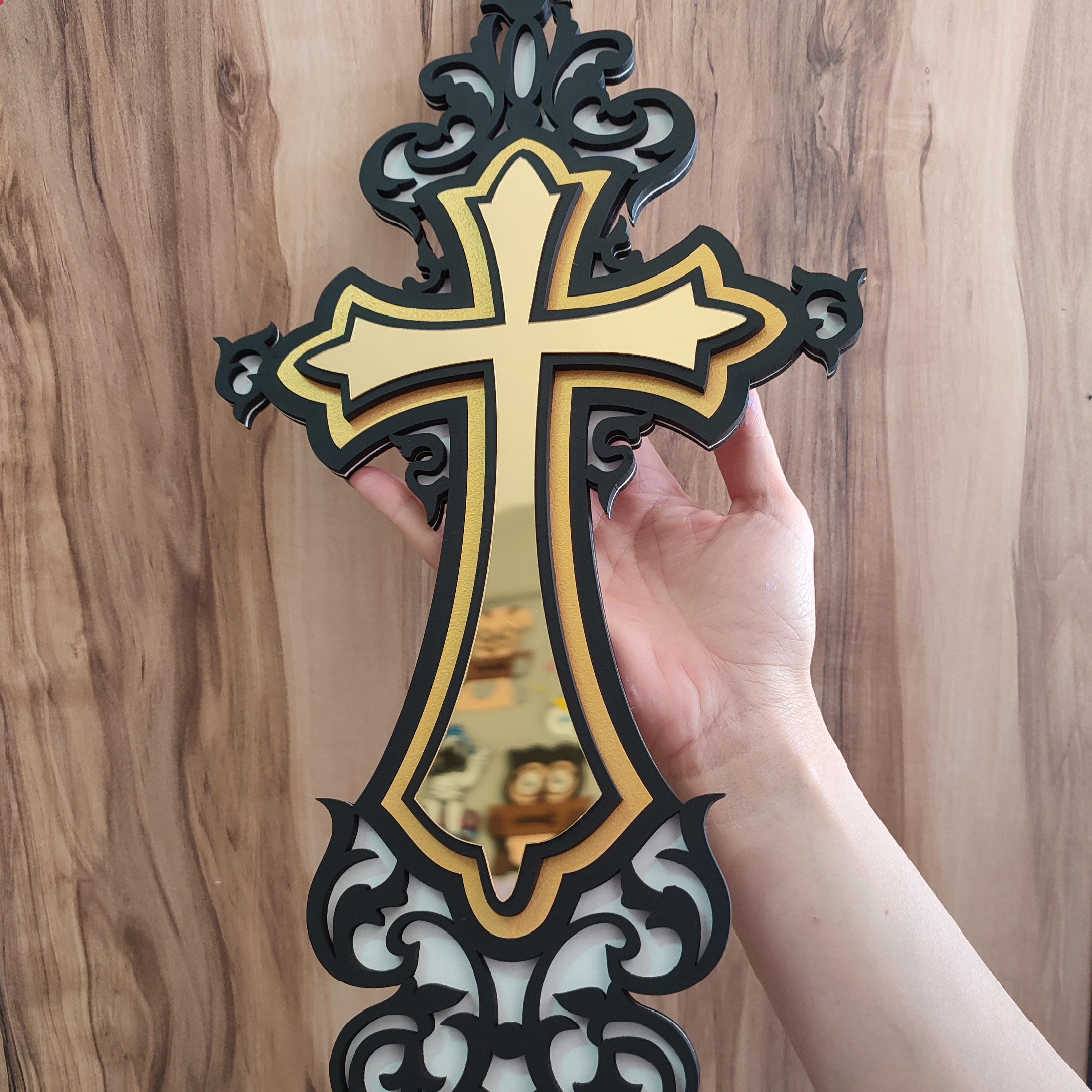 Gold Cross Wood and Acrylic Mirror Art | Modern Religious Wall Decor | Reflective Christian Sign | Glam Church Home Decor | Cross Wall Art Elevate your sacred space with this handcrafted Gold Cross W...