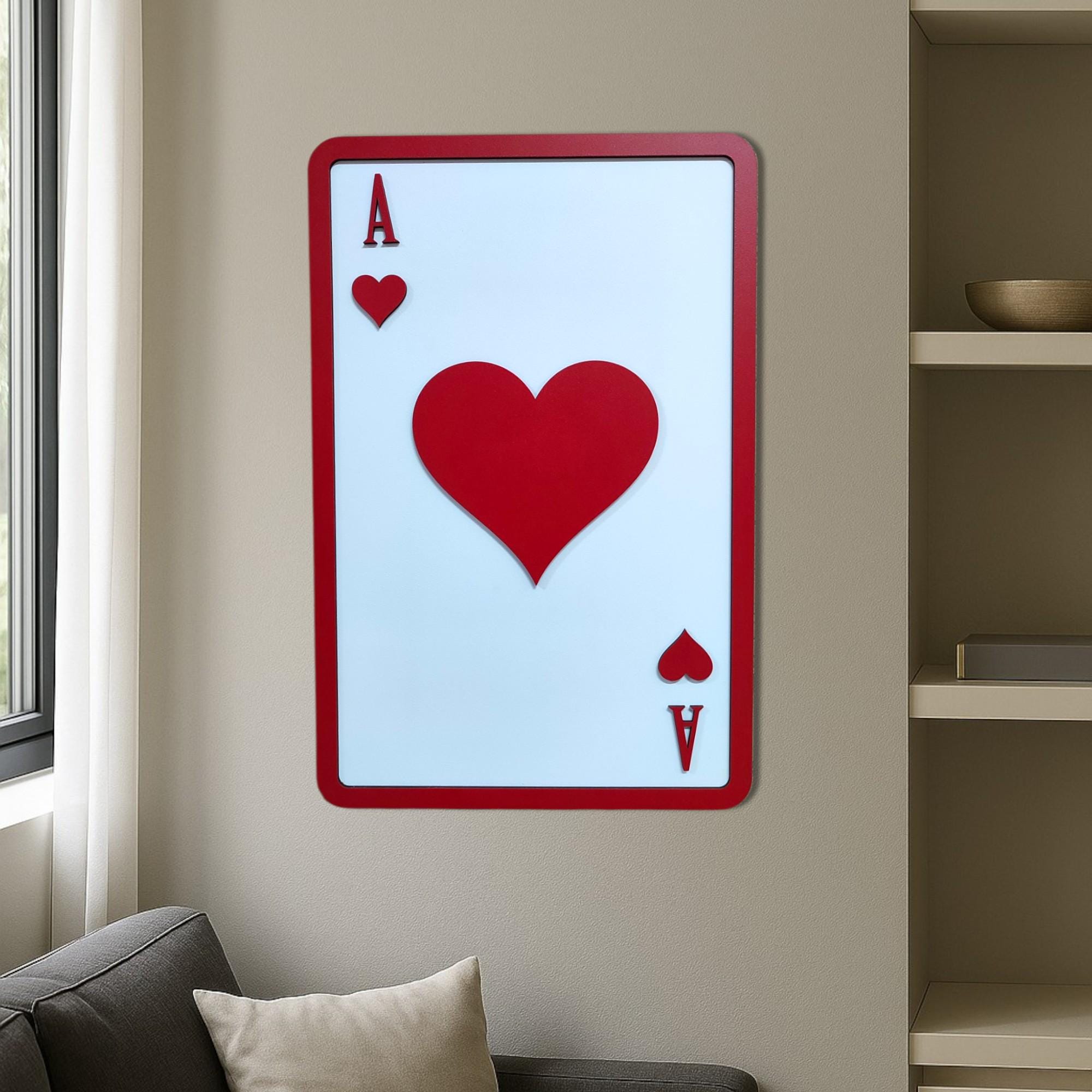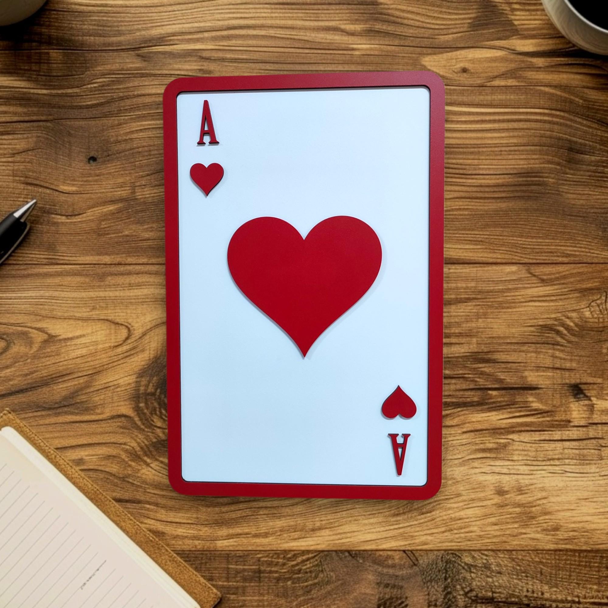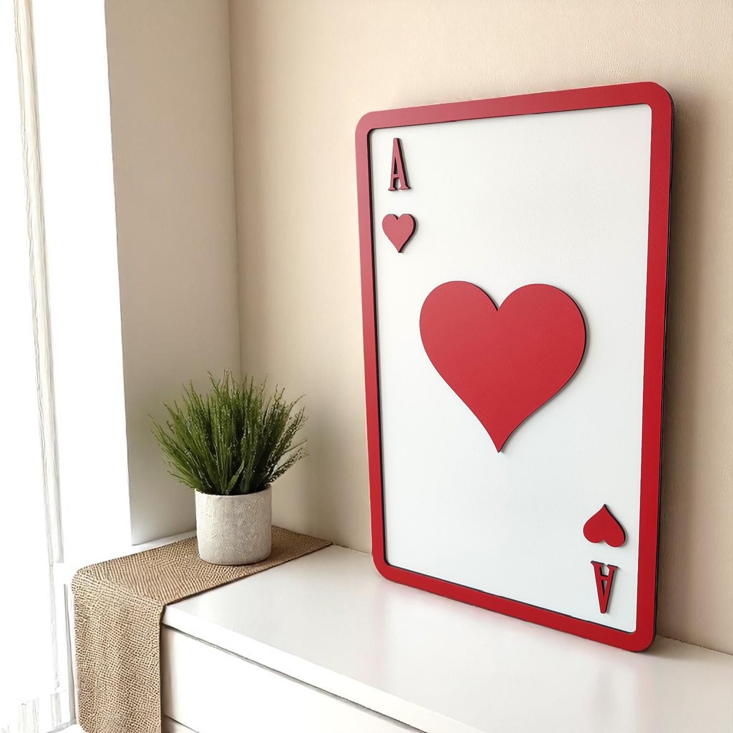 Ace of Hearts Wooden Wall Art | Playing Card Decor | Romantic and Bold Design | Perfect for Game Room, Living Room, or Gift Idea