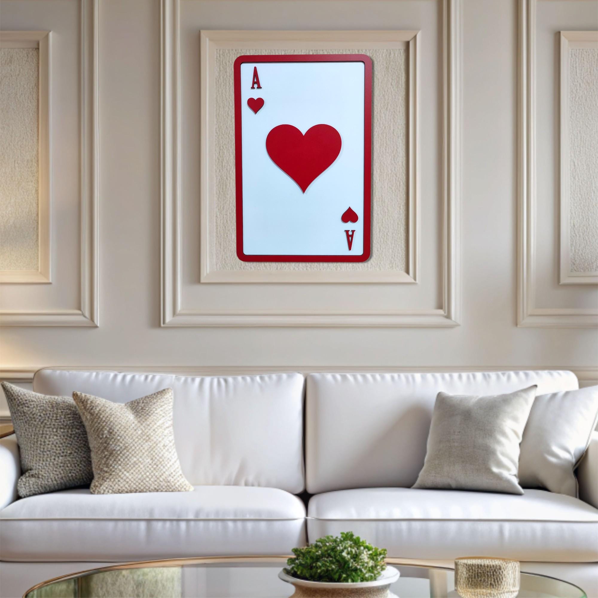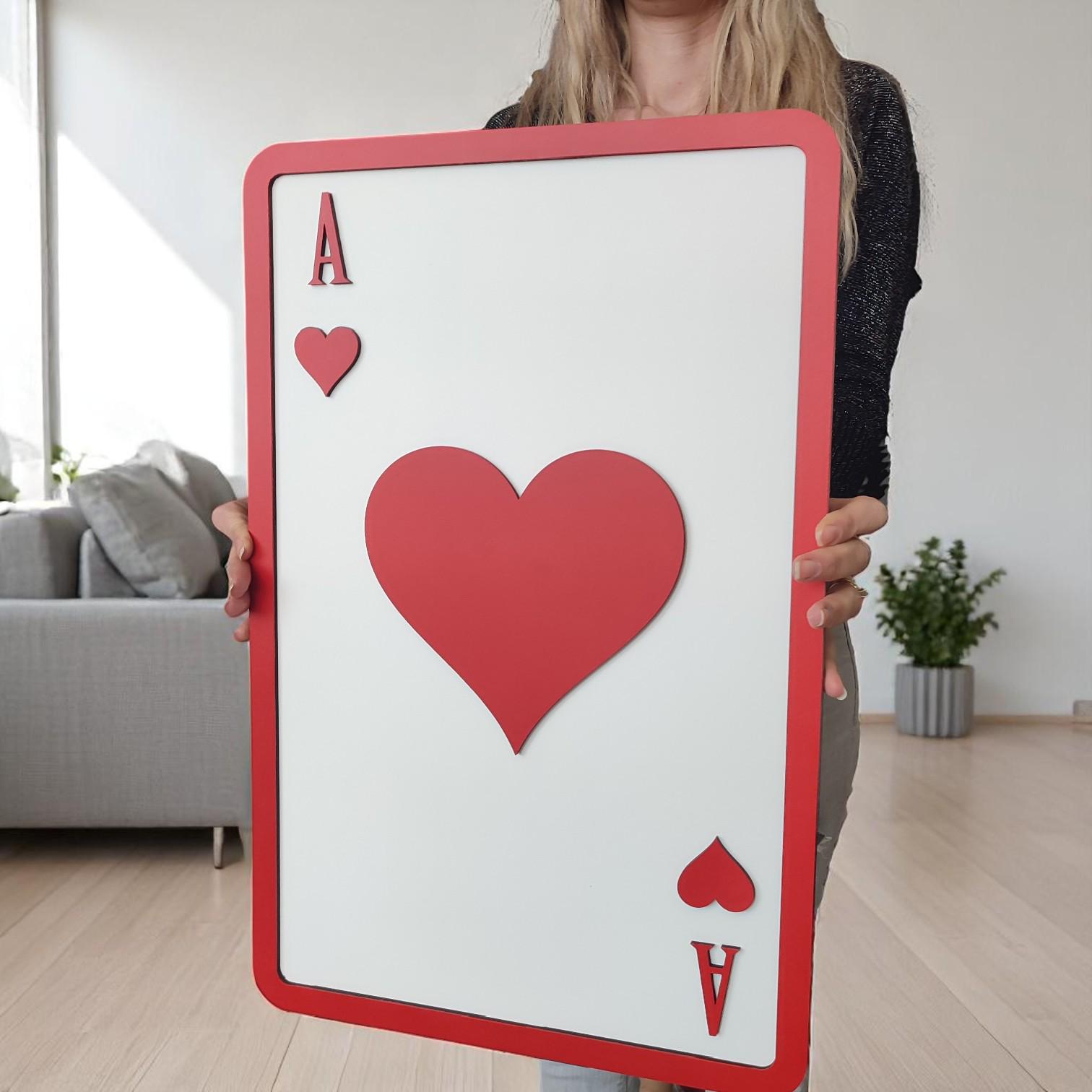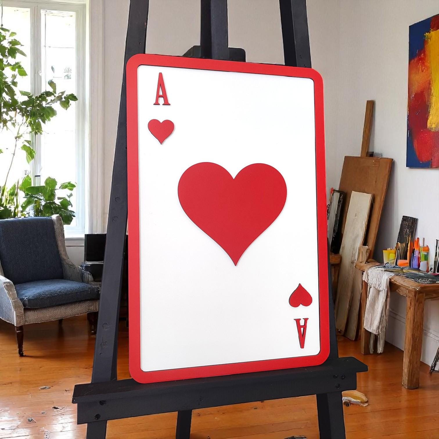 Ace of Hearts Wooden Wall Art | Playing Card Decor | Romantic and Bold Design | Perfect for Game Room, Living Room, or Gift Idea