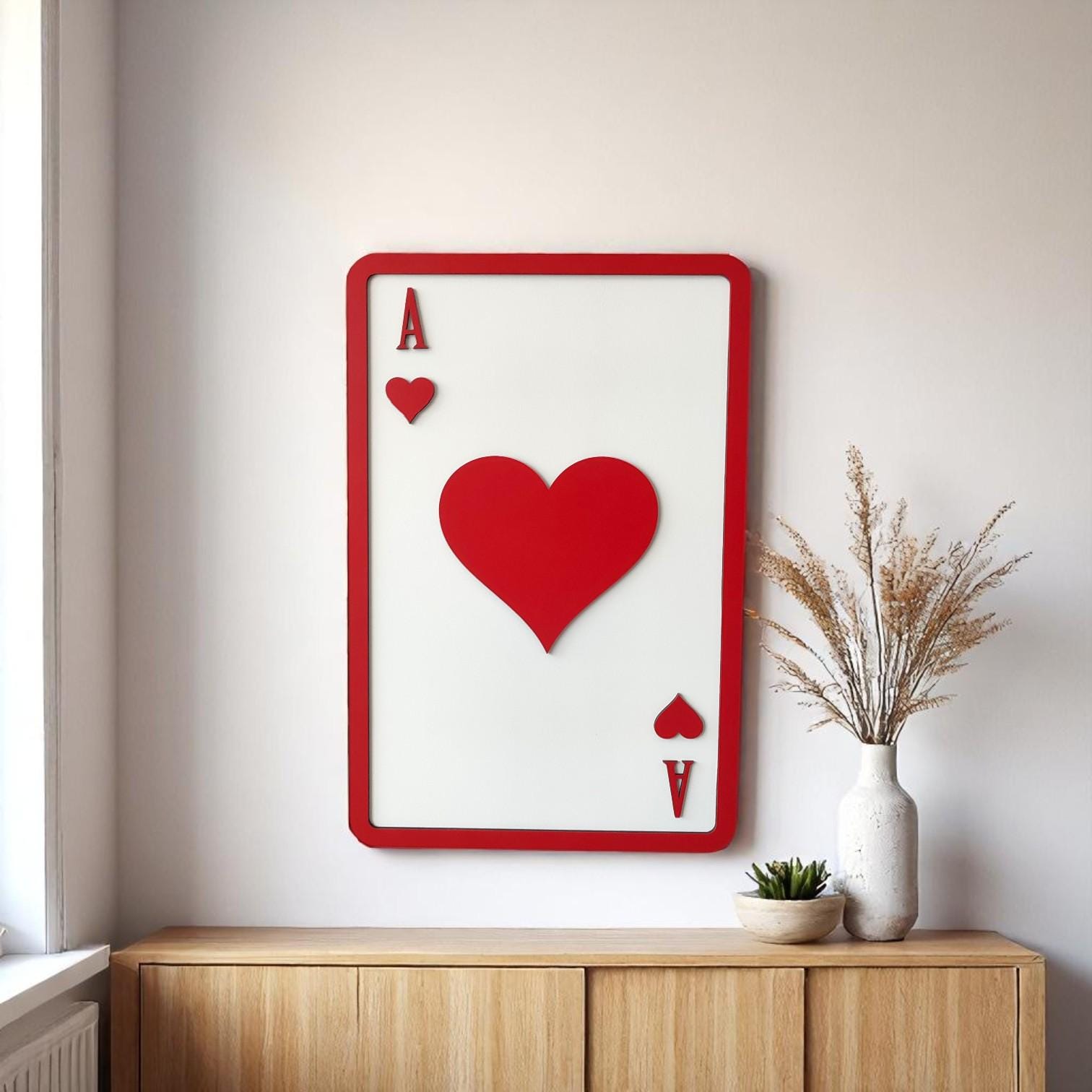 Ace of Hearts Wooden Wall Art | Playing Card Decor | Romantic and Bold Design | Perfect for Game Room, Living Room, or Gift Idea Bring love and luck into your space with the Ace of Hearts Wooden Wall...