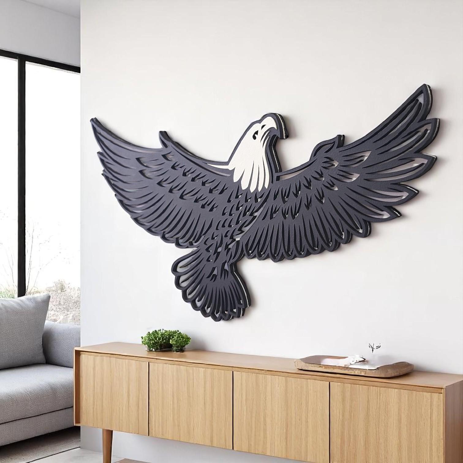 Eagle Wooden Wall Art | Majestic Bird Silhouette Decor | Rustic Wildlife Wall Hanging | Nature Inspired Wooden Home Accent