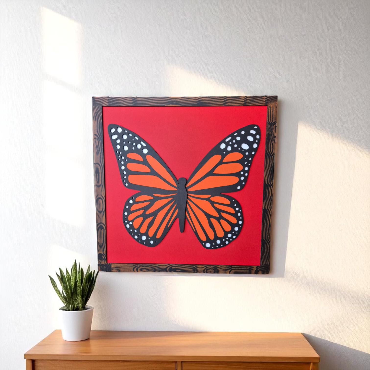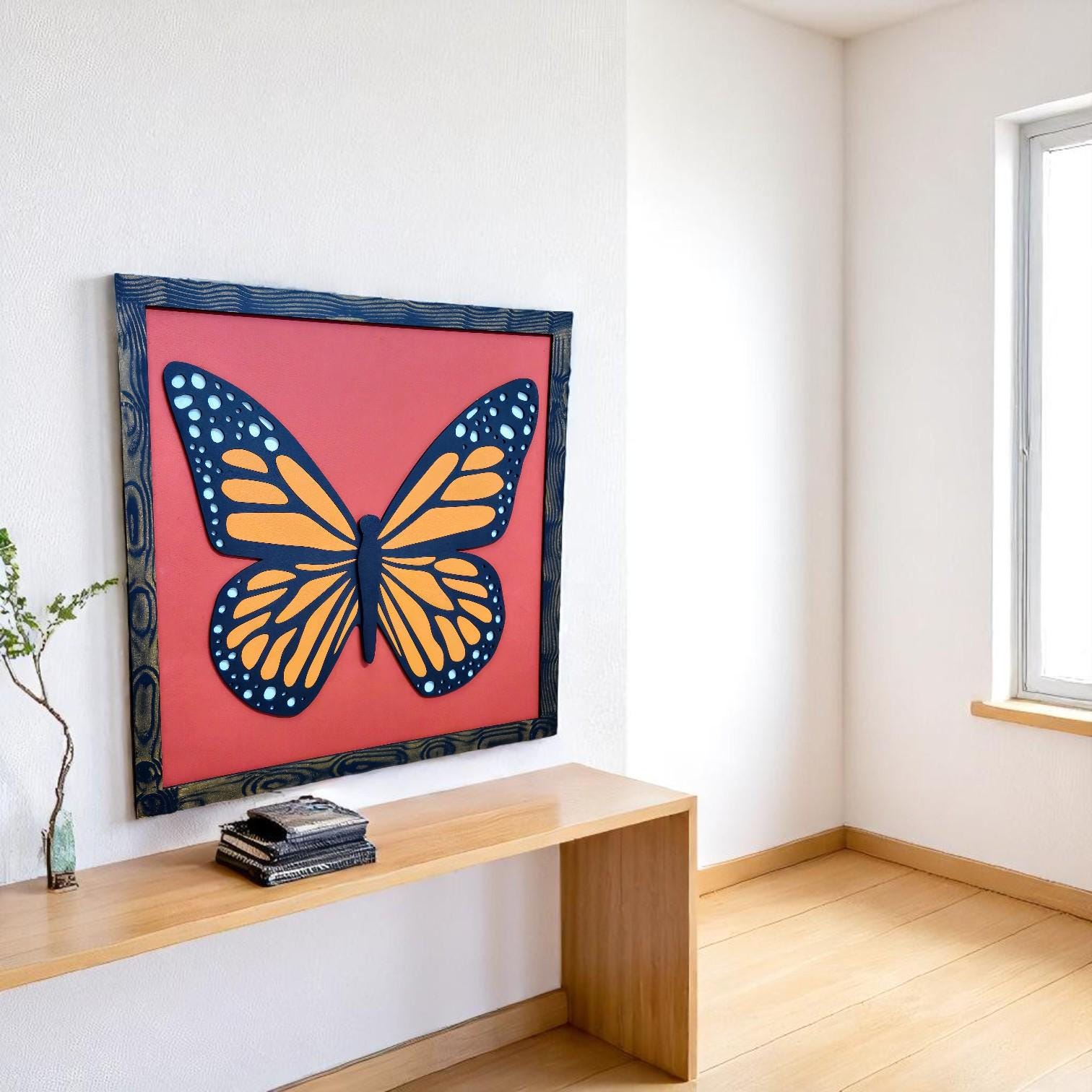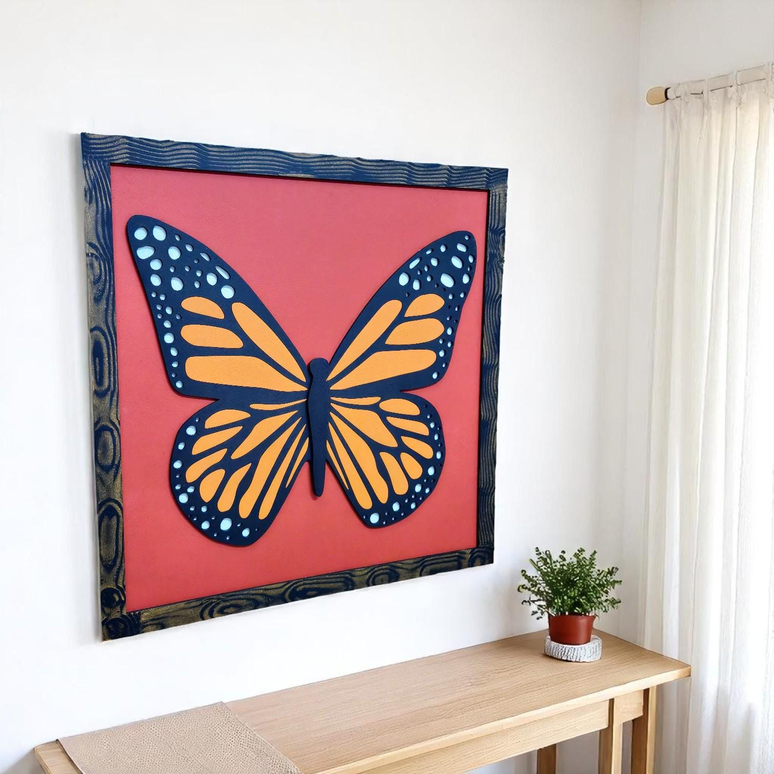 Monarch Butterfly Wooden Wall Art | Vibrant Nature-Inspired Decor | Boho Butterfly Wall Hanging | Gift for Nature and Insect Lovers