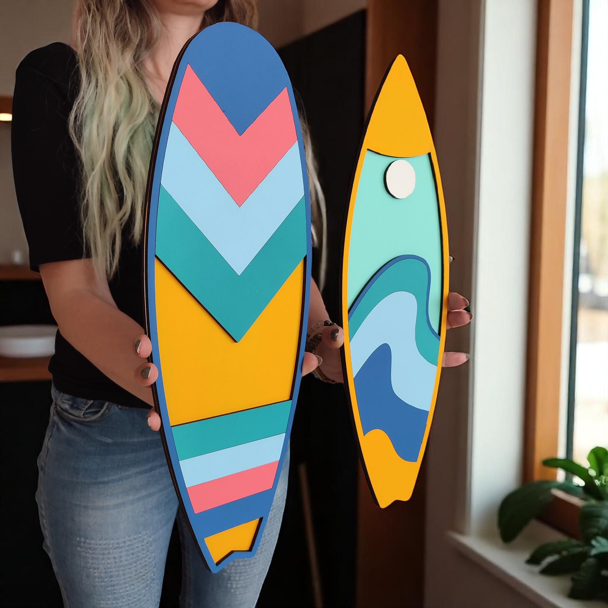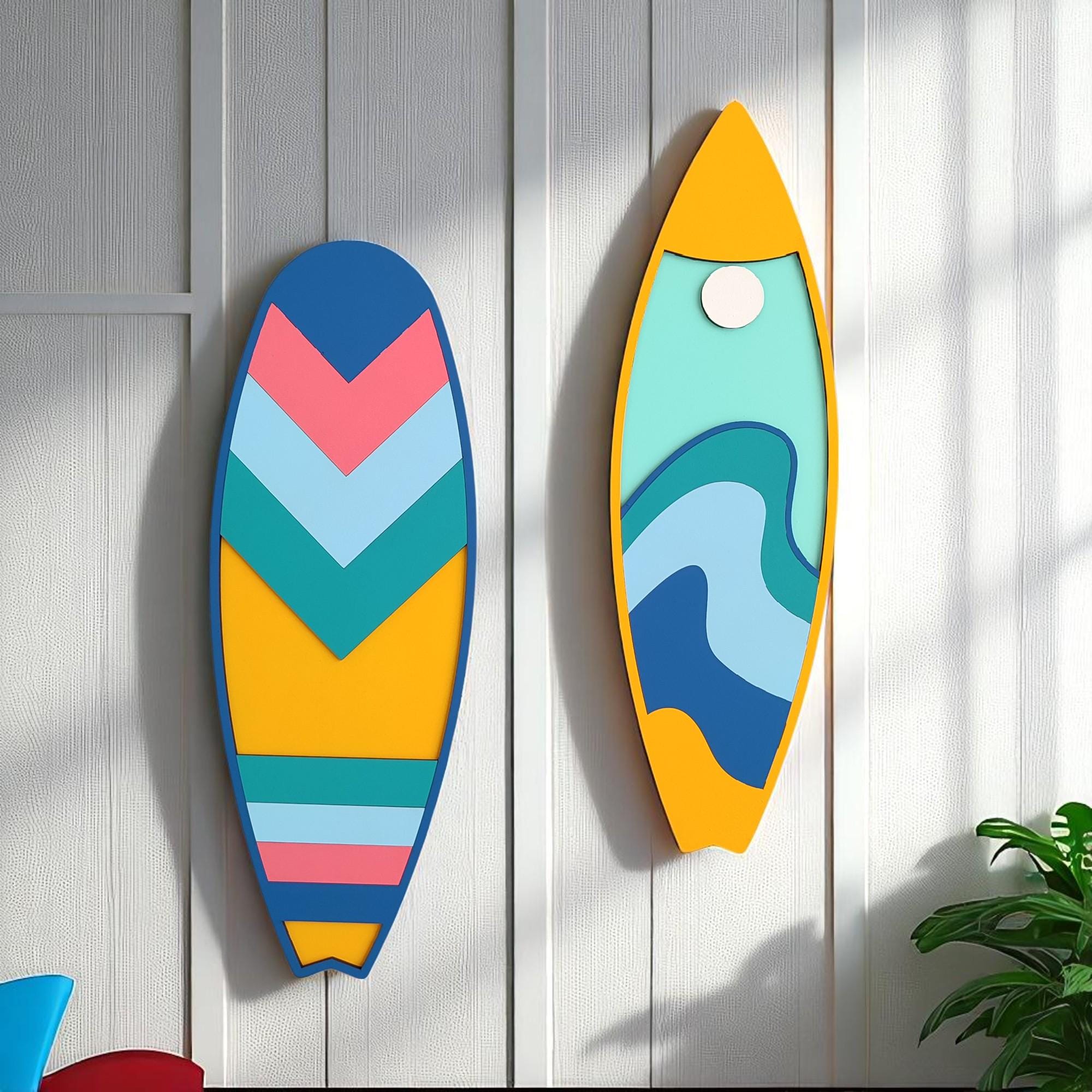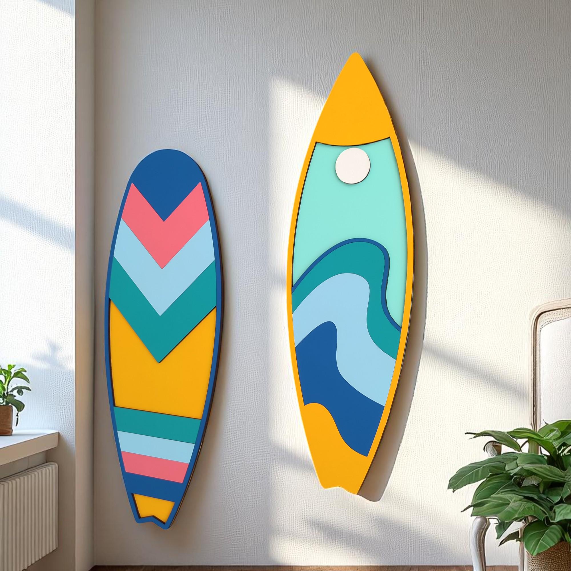 Handcrafted Surfboard Wall Art Set: Coastal Wooden Decor
