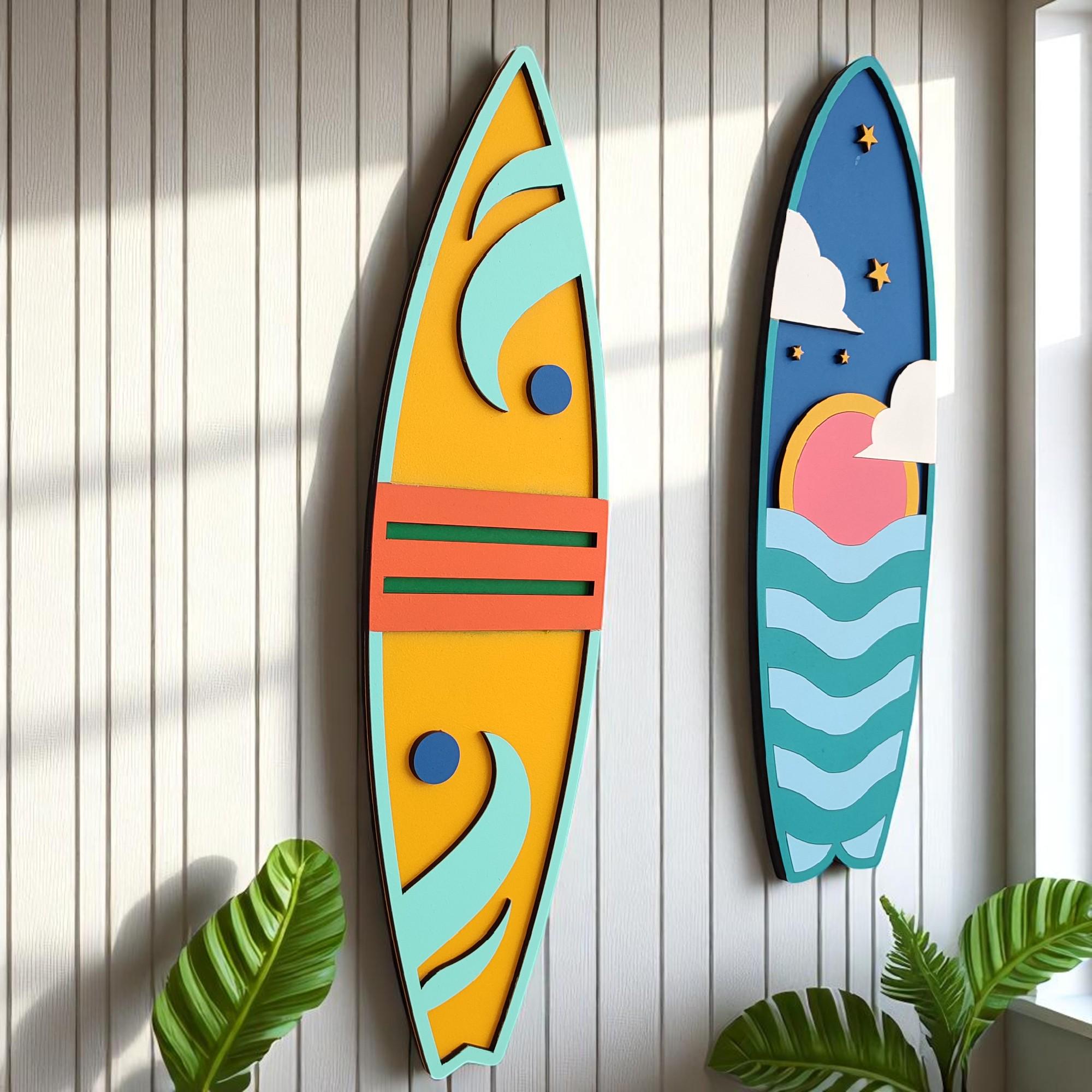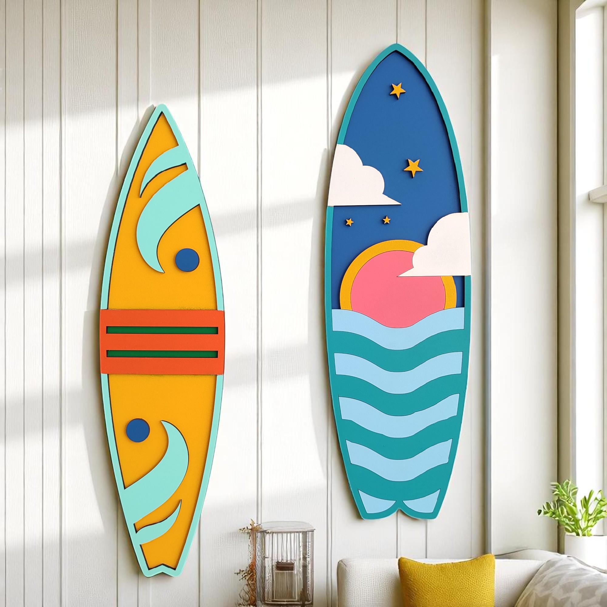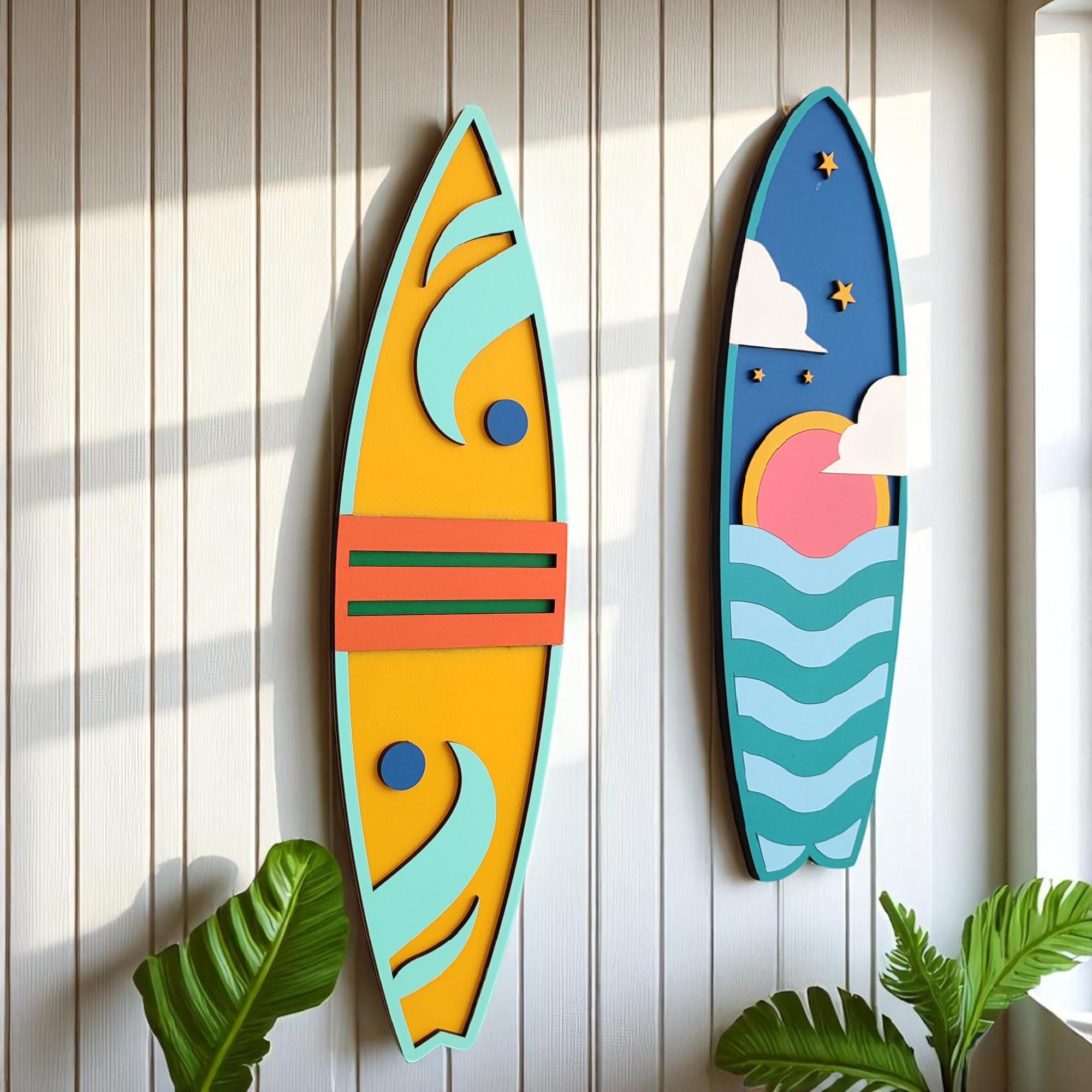 Handcrafted Surfboard Wall Art Set: Coastal Wooden Decor