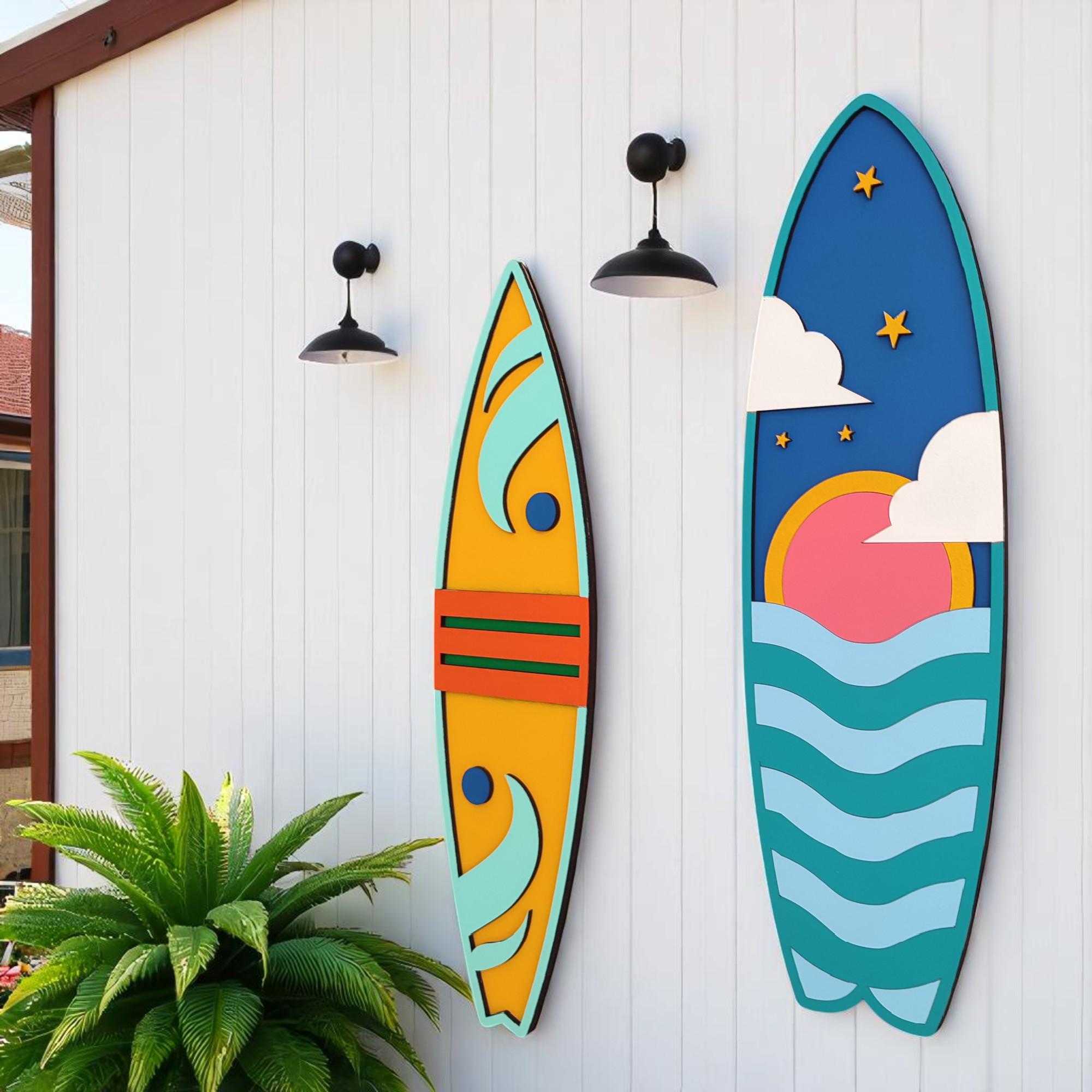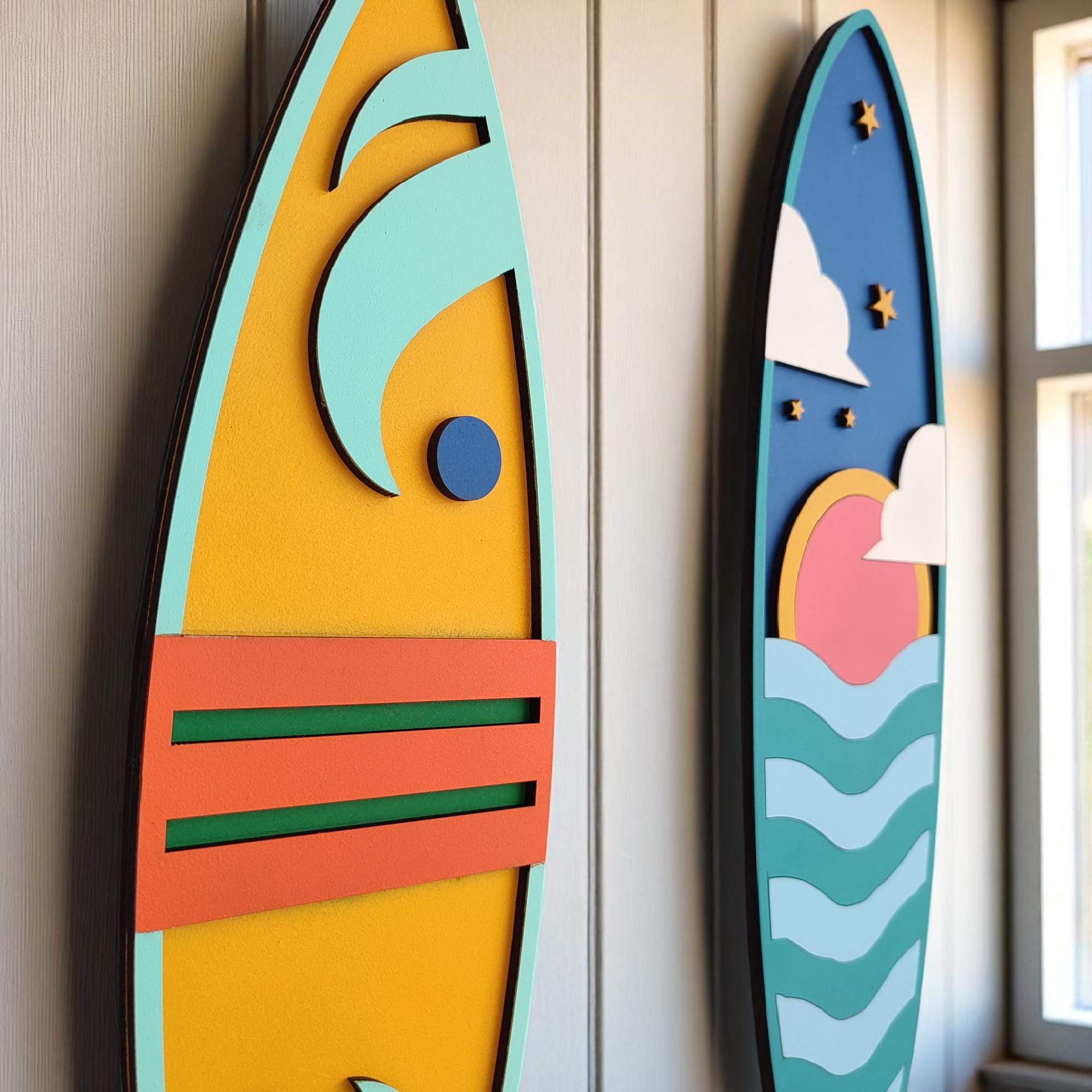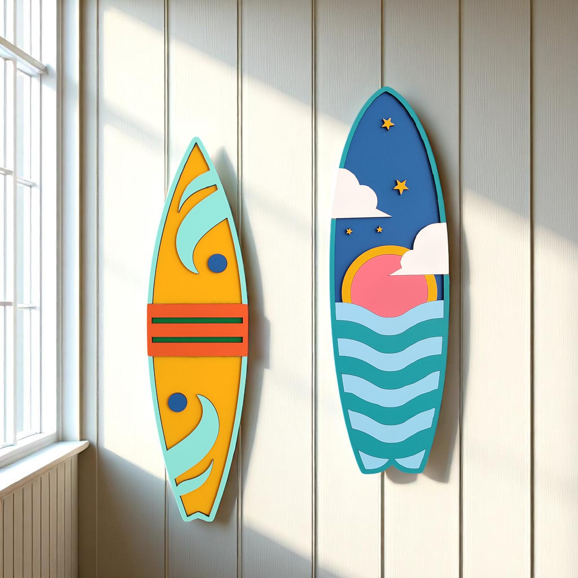 Handcrafted Surfboard Wall Art Set: Coastal Wooden Decor