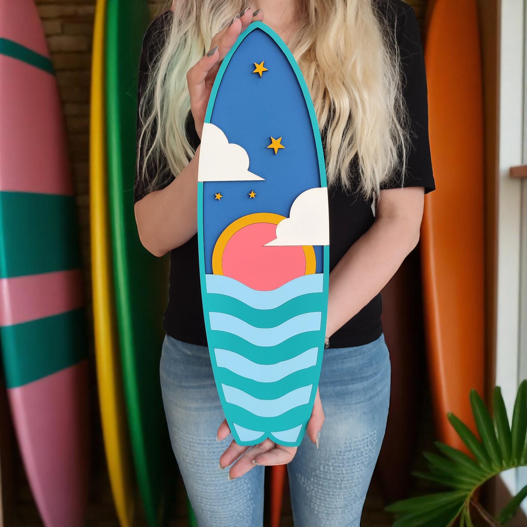 Each surfboard is made from quality MDF wood, carefully hand-painted with soft, natural colors that complement any beach-inspired decor. Lightweight and ready to hang, they fit beautifully in living rooms, entryways, bedrooms, or beach houses — wherever you want to feel that ocean breeze.