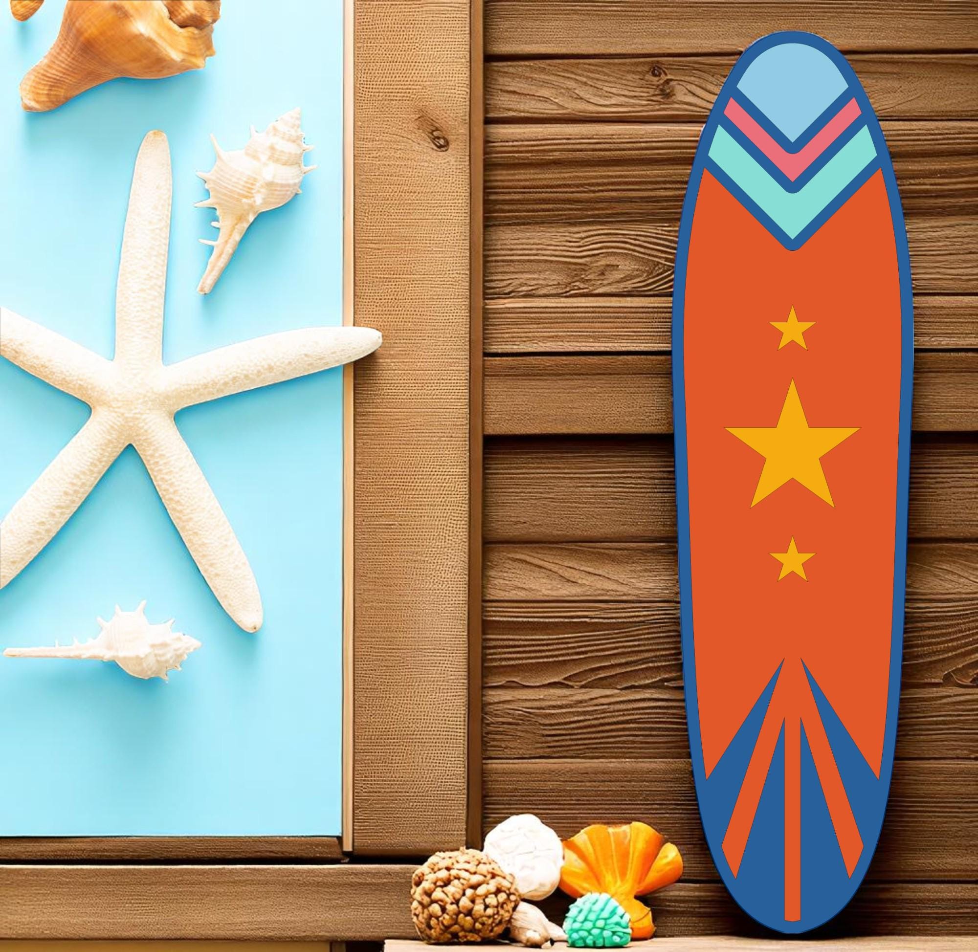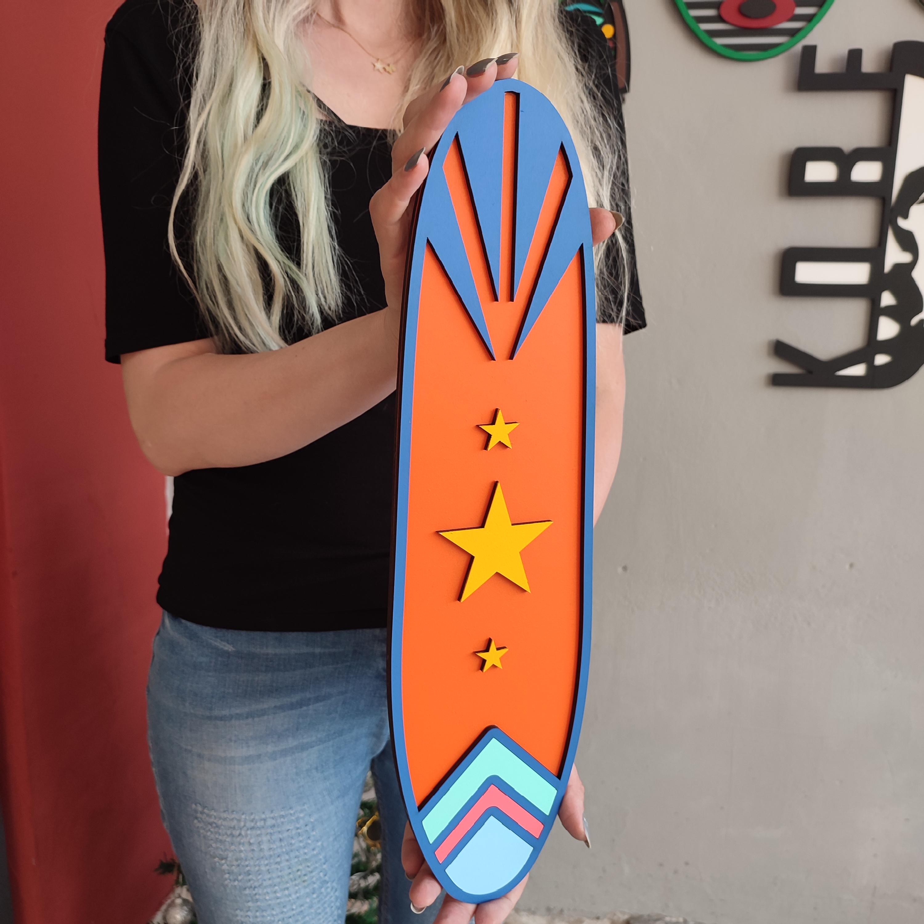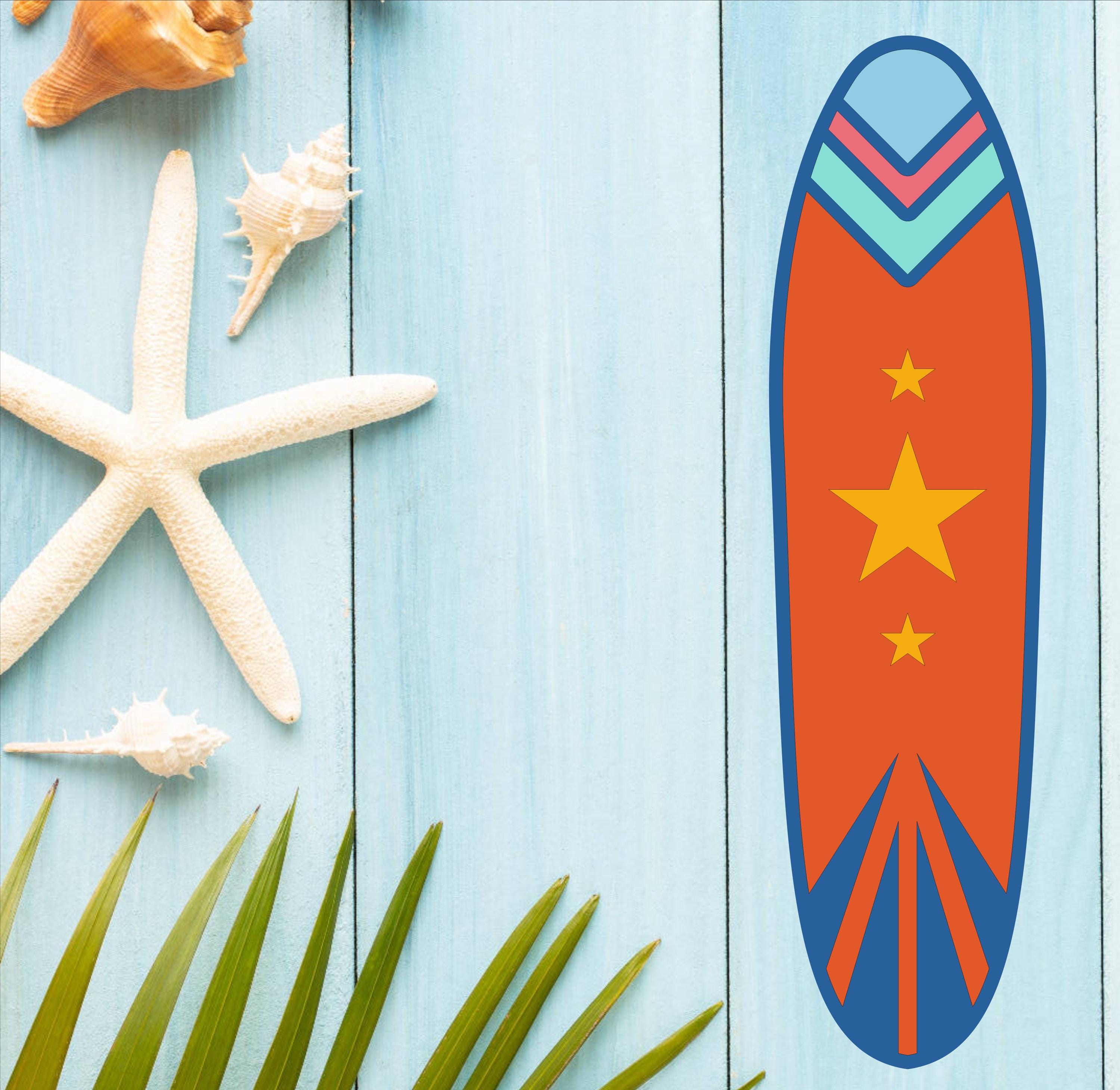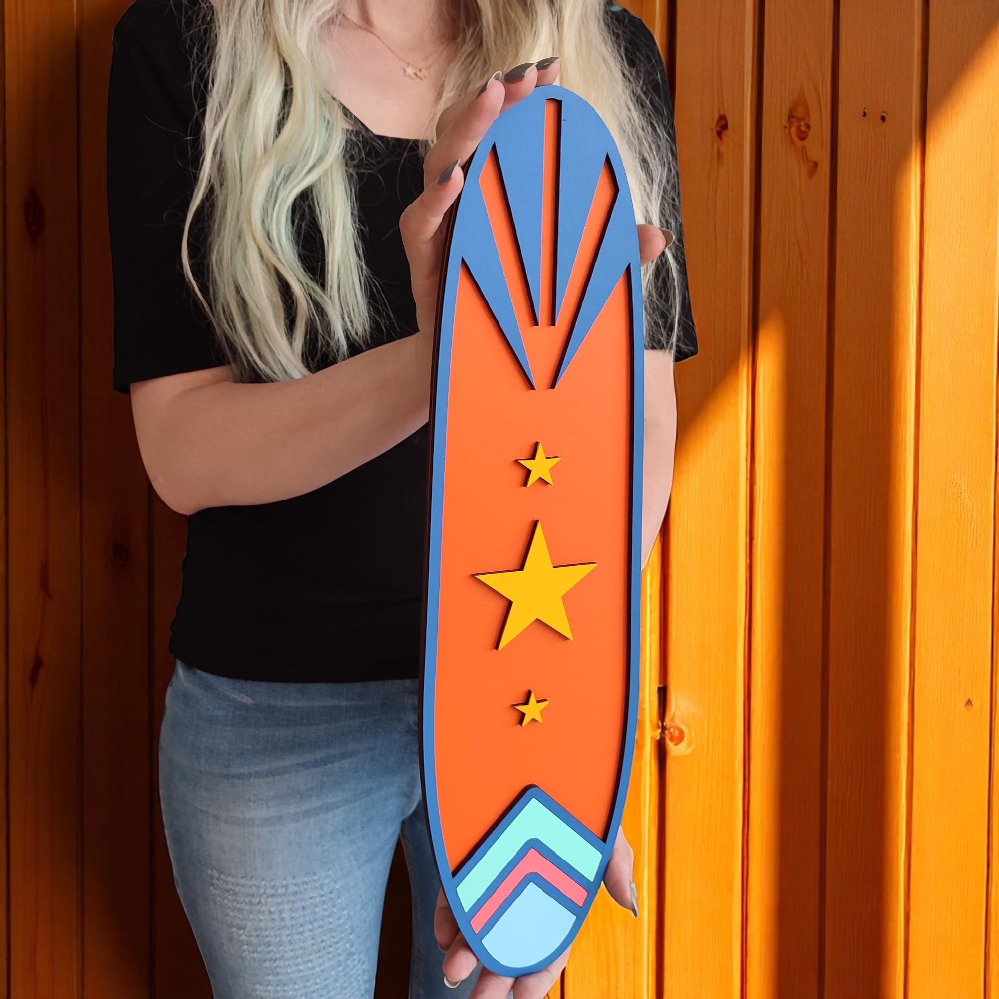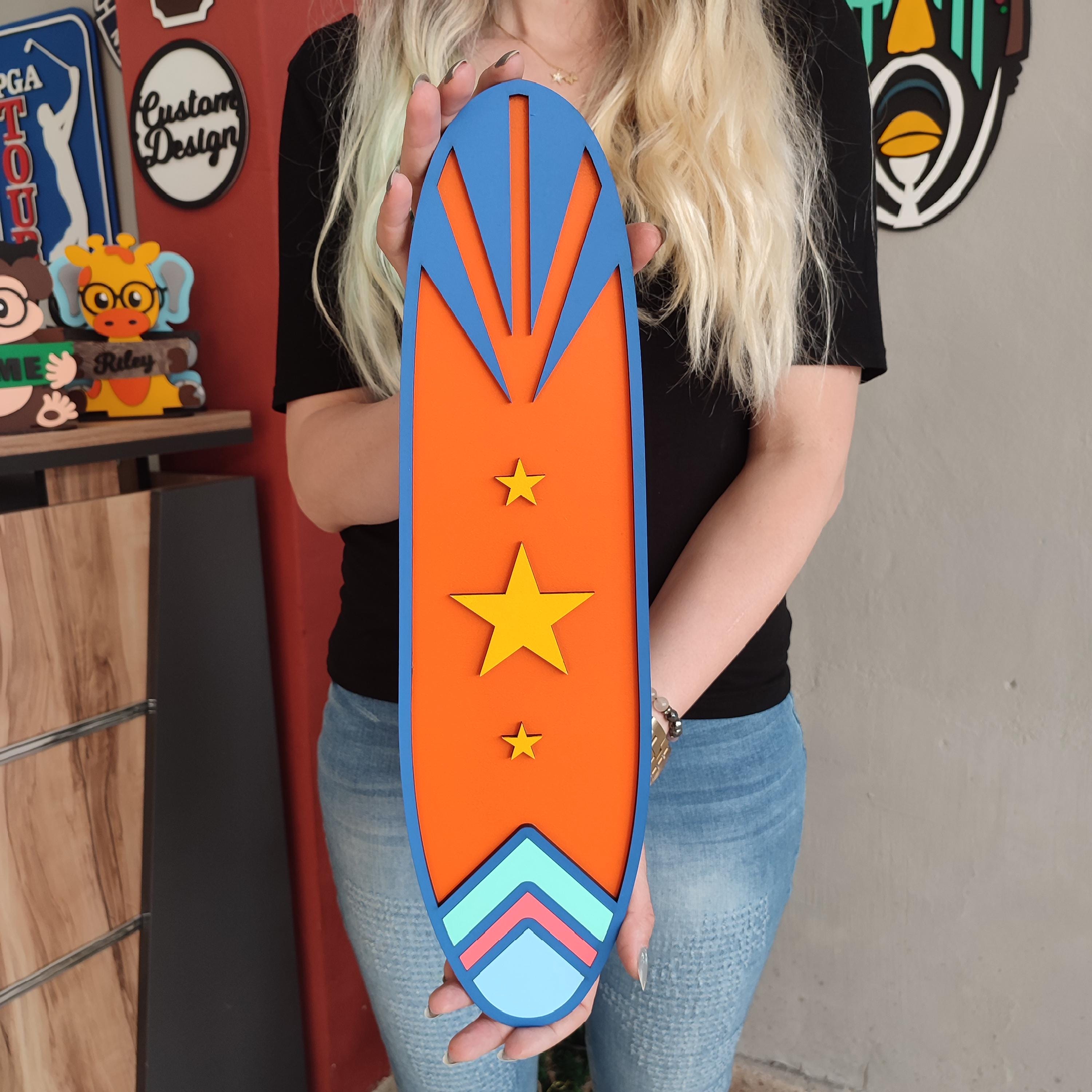 Handcrafted Surfboard Design – Carefully cut and shaped from high-quality MDF wood, then hand-painted for a bright, beach-ready finish.