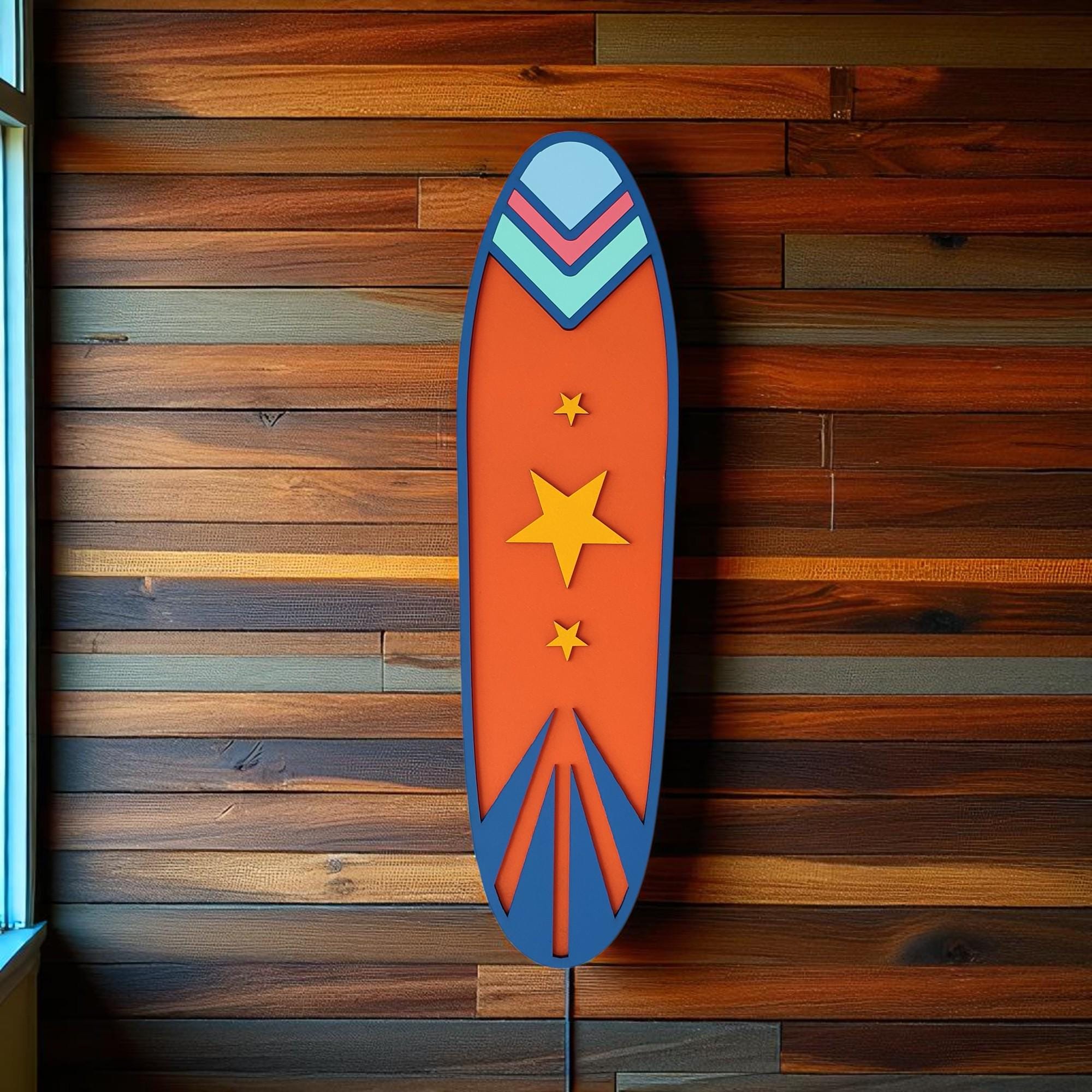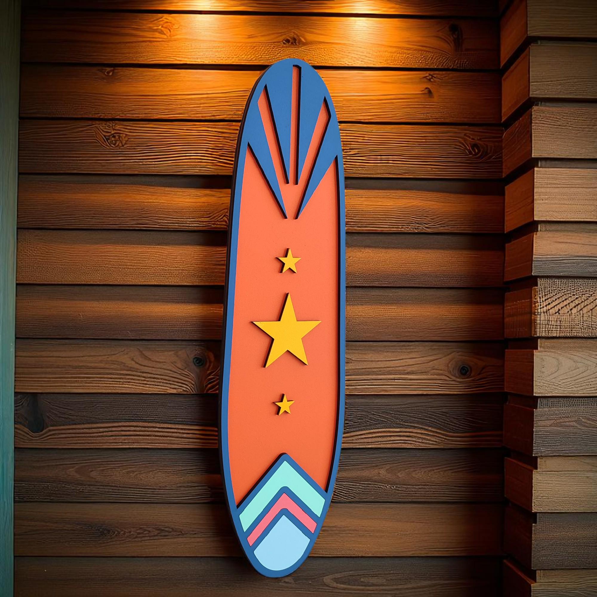 Handcrafted Wooden Surfboard Wall Art: Coastal Beach Decor