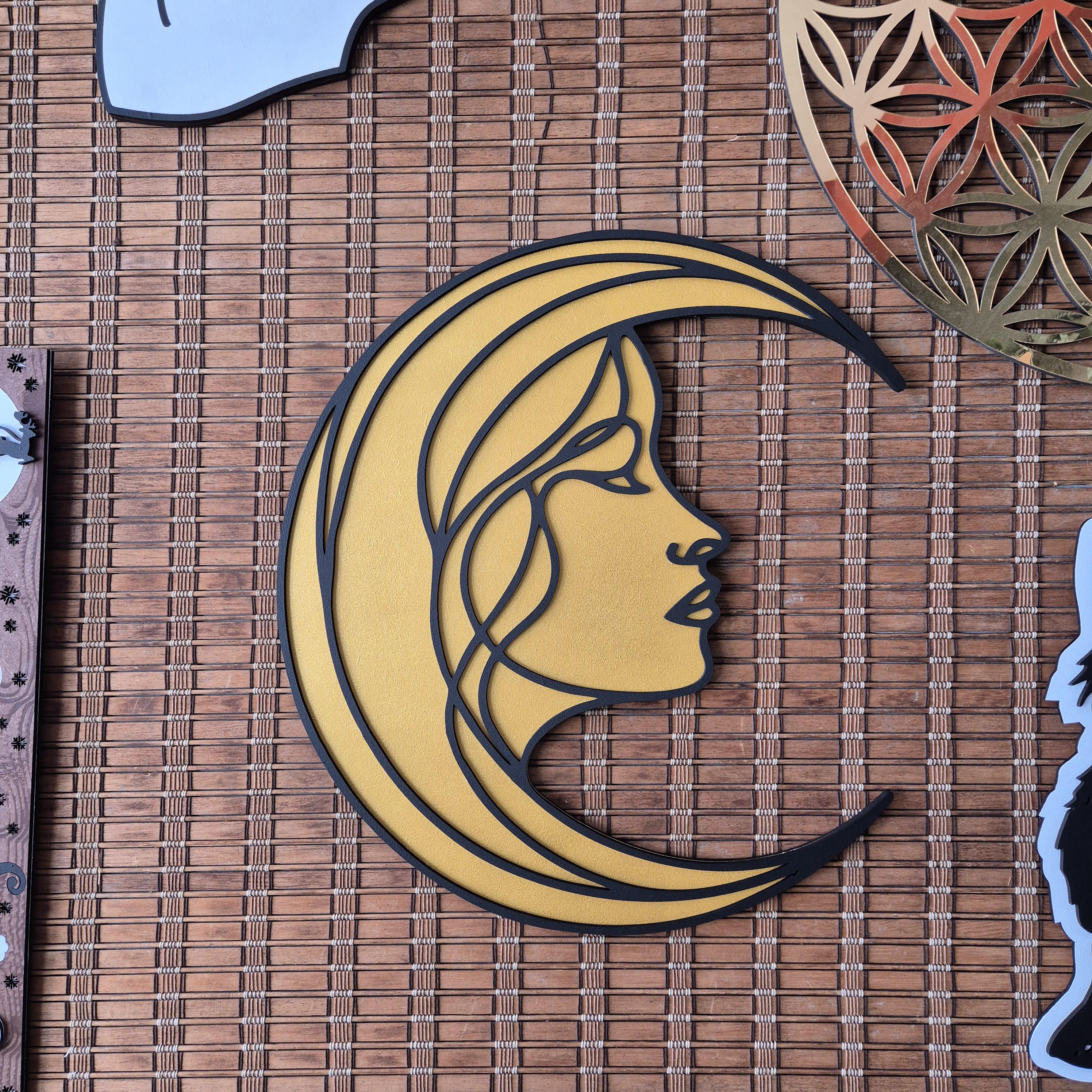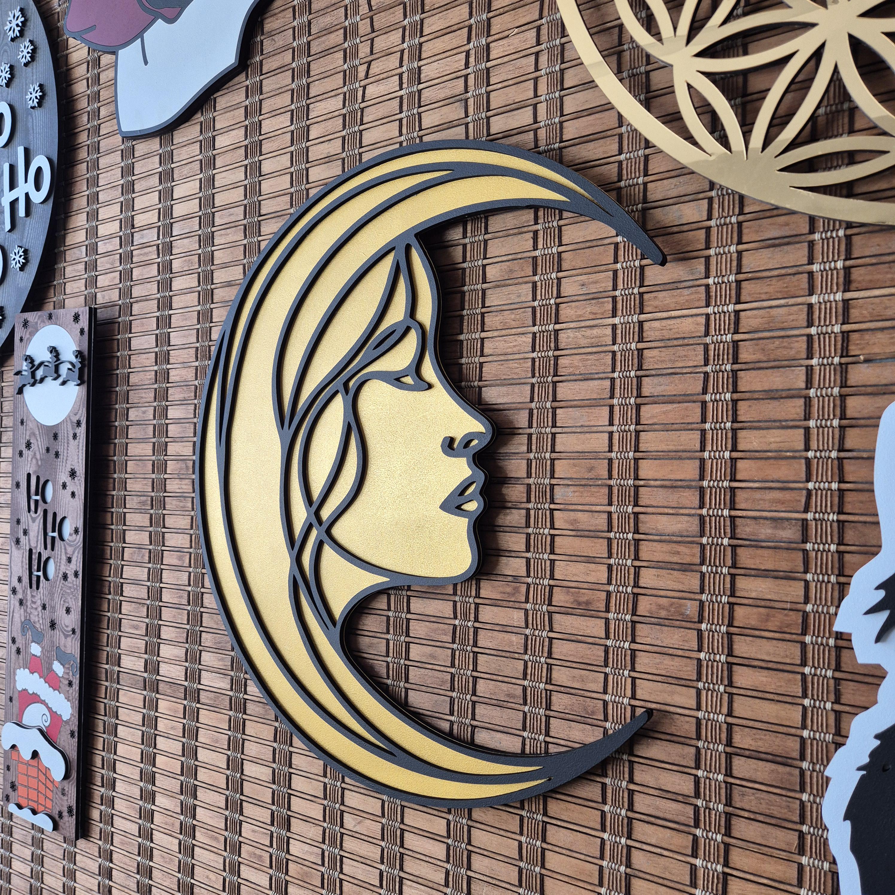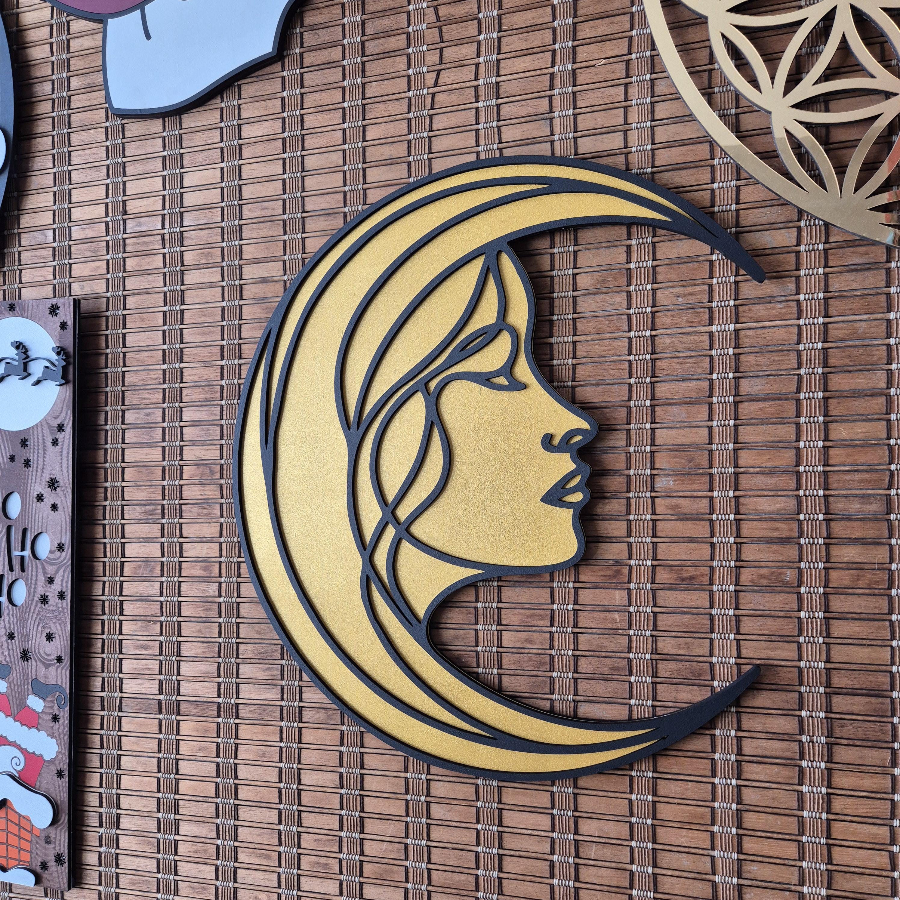 Illuminate your space with this Handmade Crescent Moon Face Art, a beautifully crafted wooden wall panel featuring an elegant lunar motif. Designed with a unique combination of celestial and human elements, this stunning piece captures the mystical beauty of the moon, making it ideal for boho, gothic, and nature-inspired interiors.