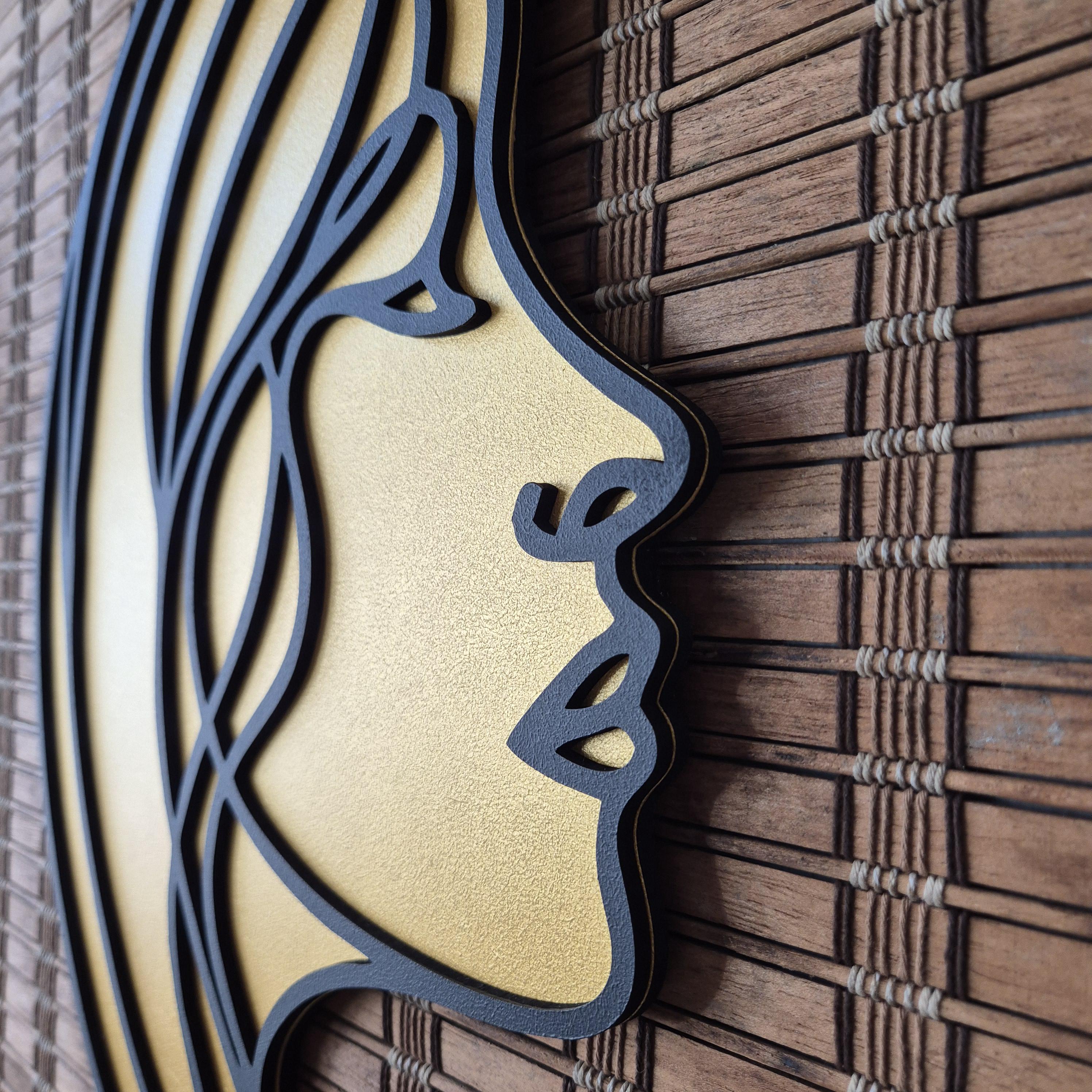 Illuminate your space with this Handmade Crescent Moon Face Art, a beautifully crafted wooden wall panel featuring an elegant lunar motif. Designed with a unique combination of celestial and human ele...