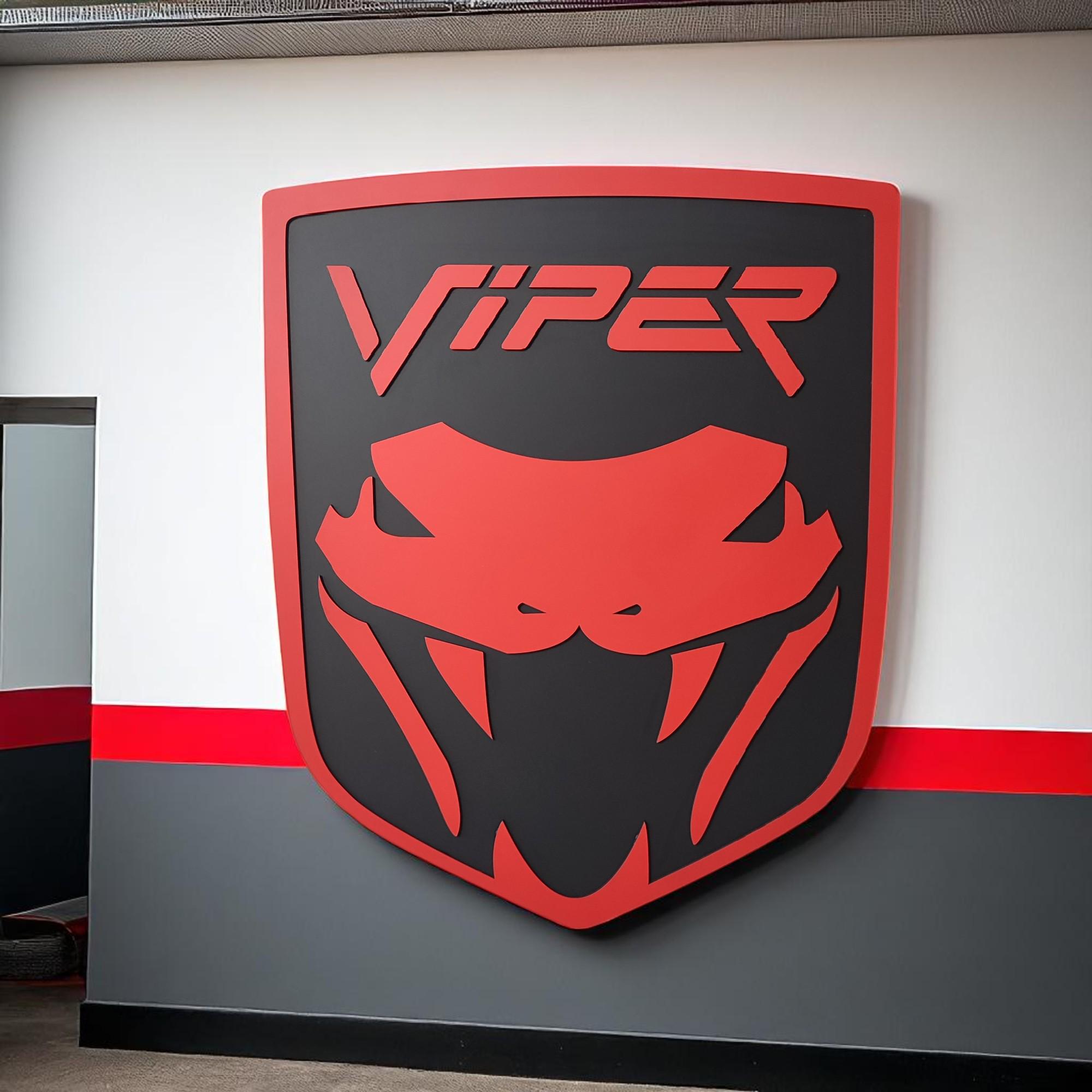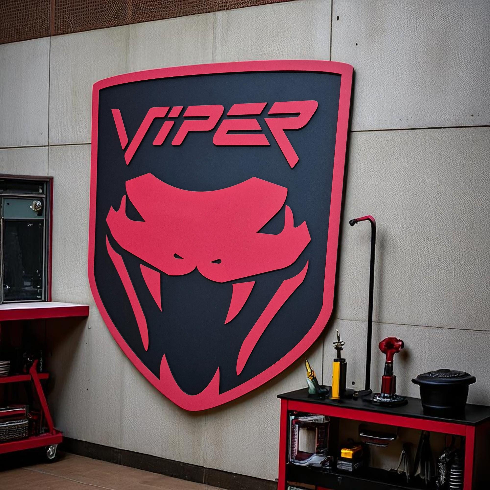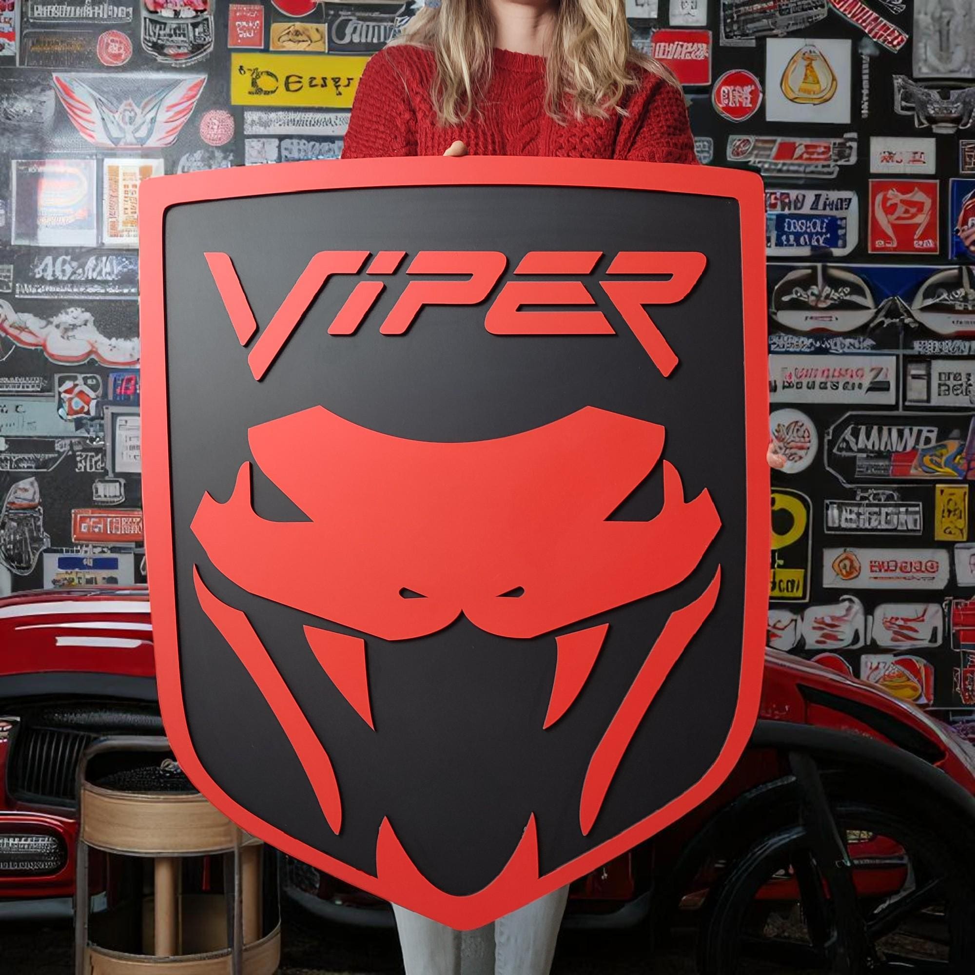 Dodge Viper Wooden Wall Art | American Muscle Car Logo Sign | Garage or Man Cave Decor | Automotive Gift for Racing Enthusiasts